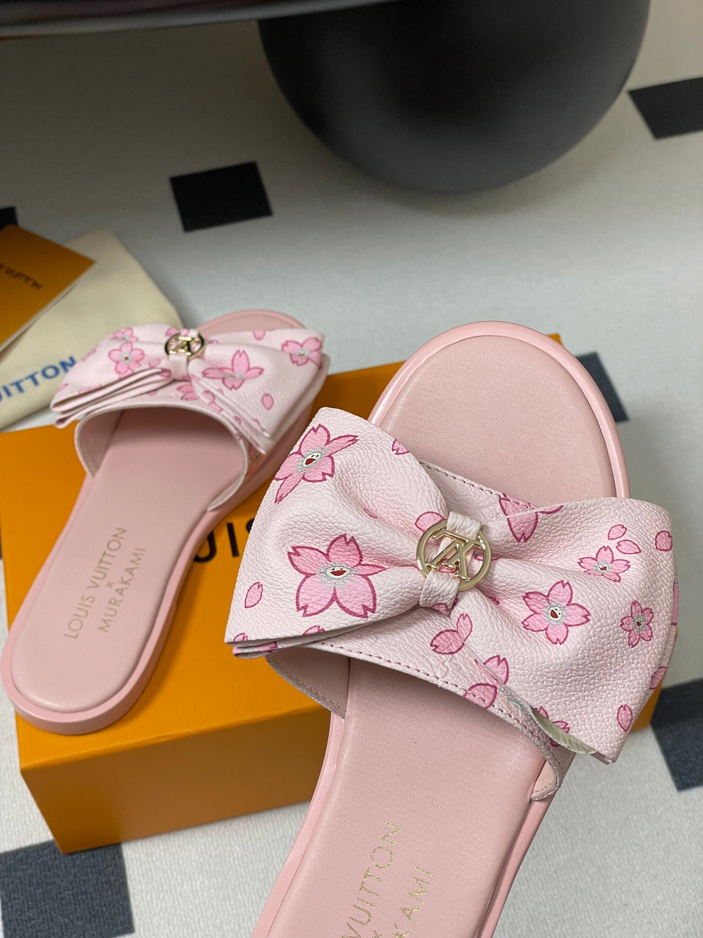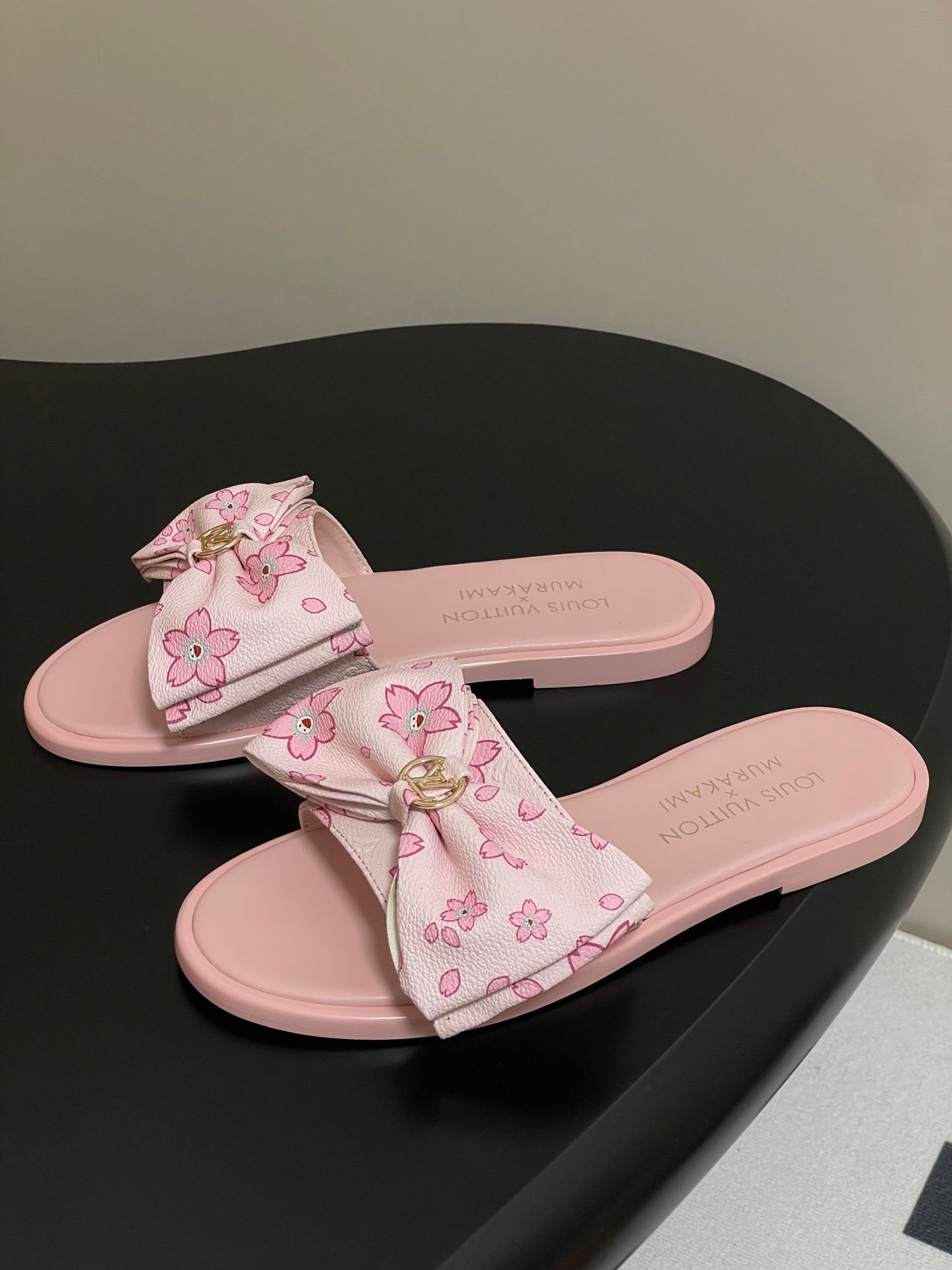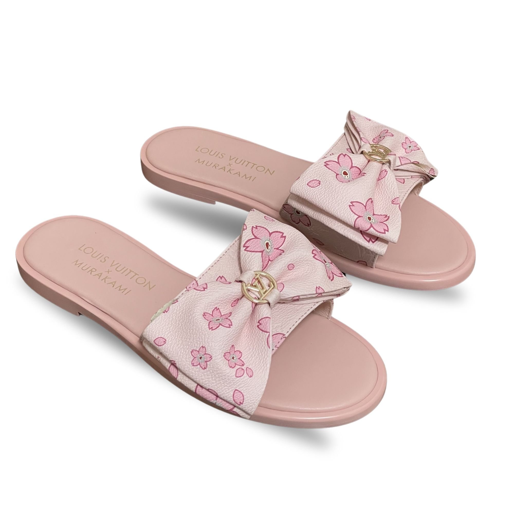 Louis Vuitton x Takashi Murakami Lily Flat Mule Bow Slide Sandals Pink- White 1AGVYA
