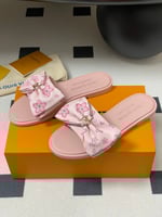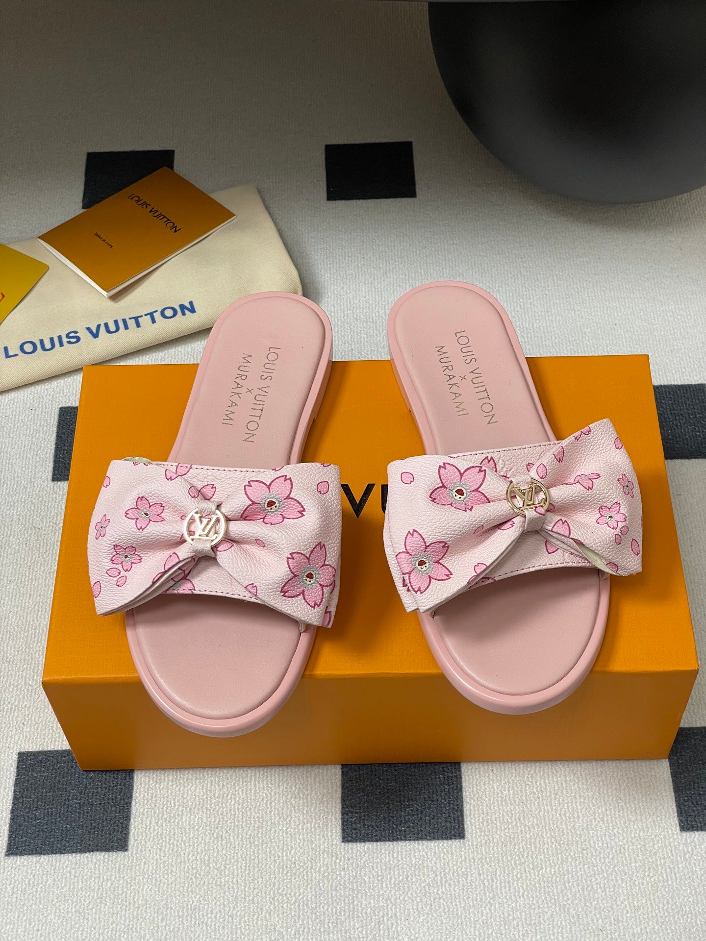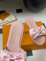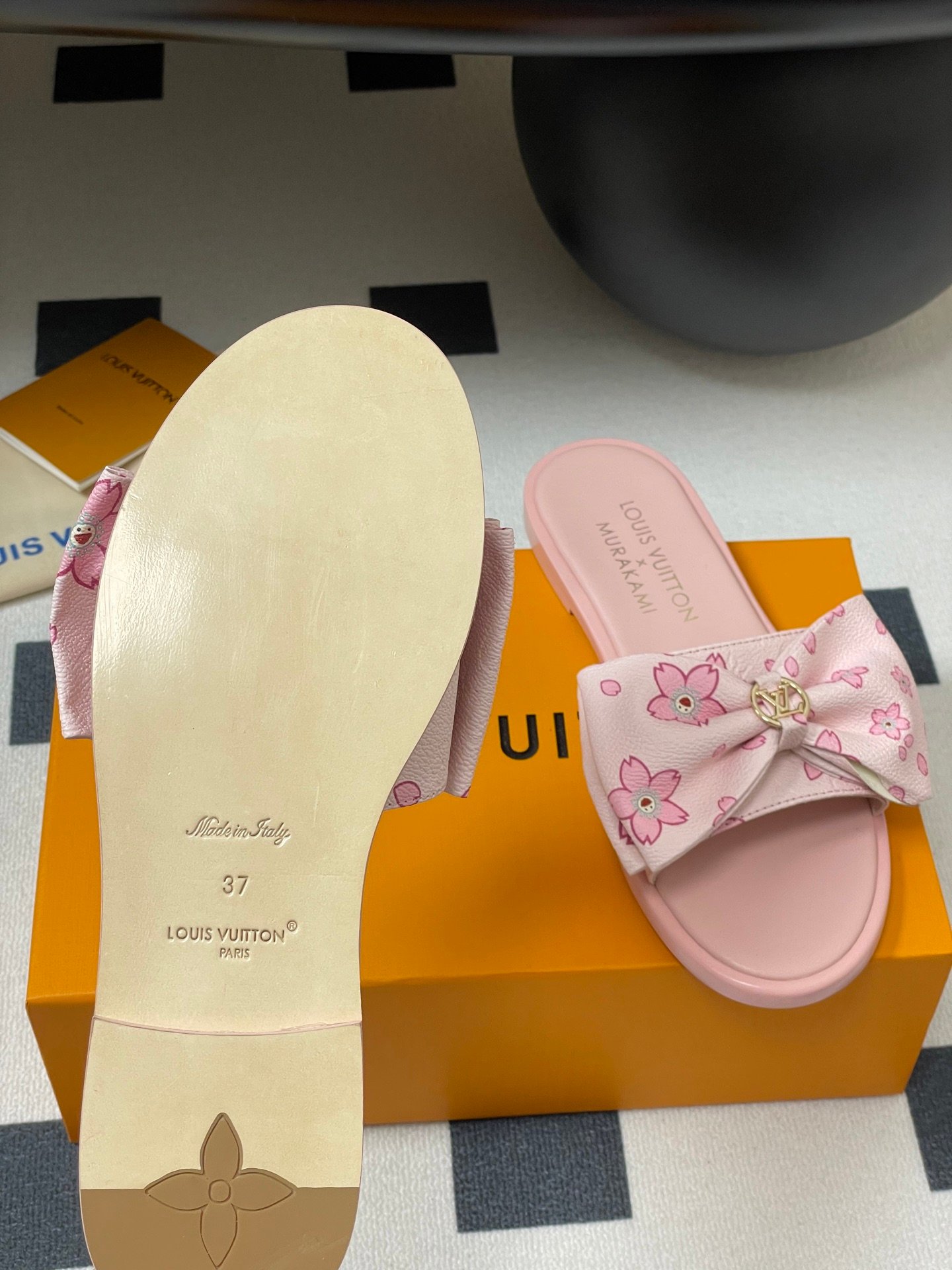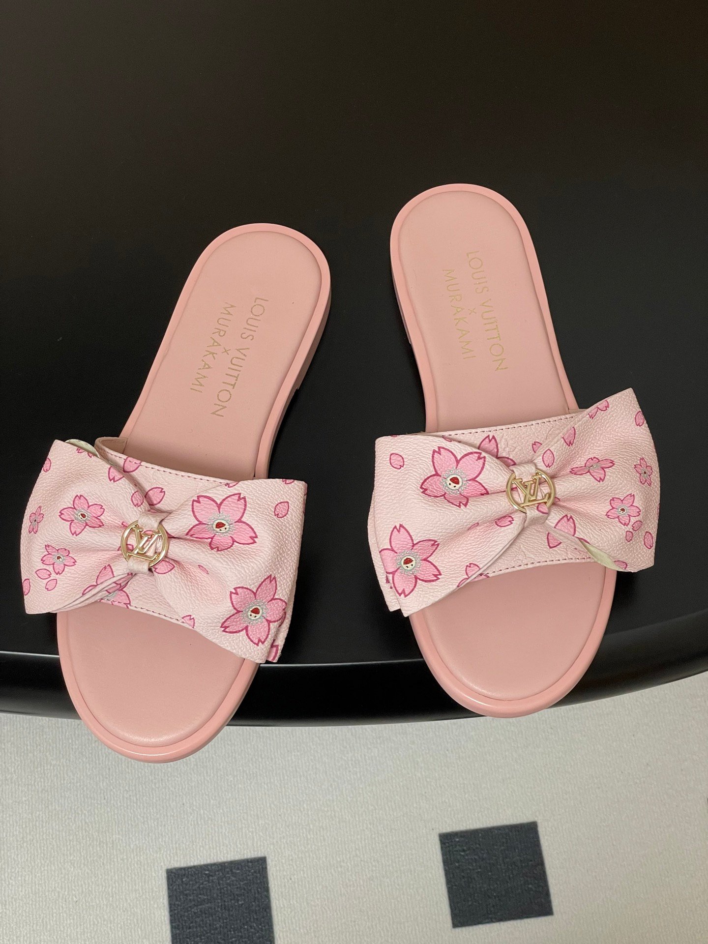 Louis Vuitton x Takashi Murakami Lily Flat Mule Bow Slide Sandals Pink- White 1AGVYA