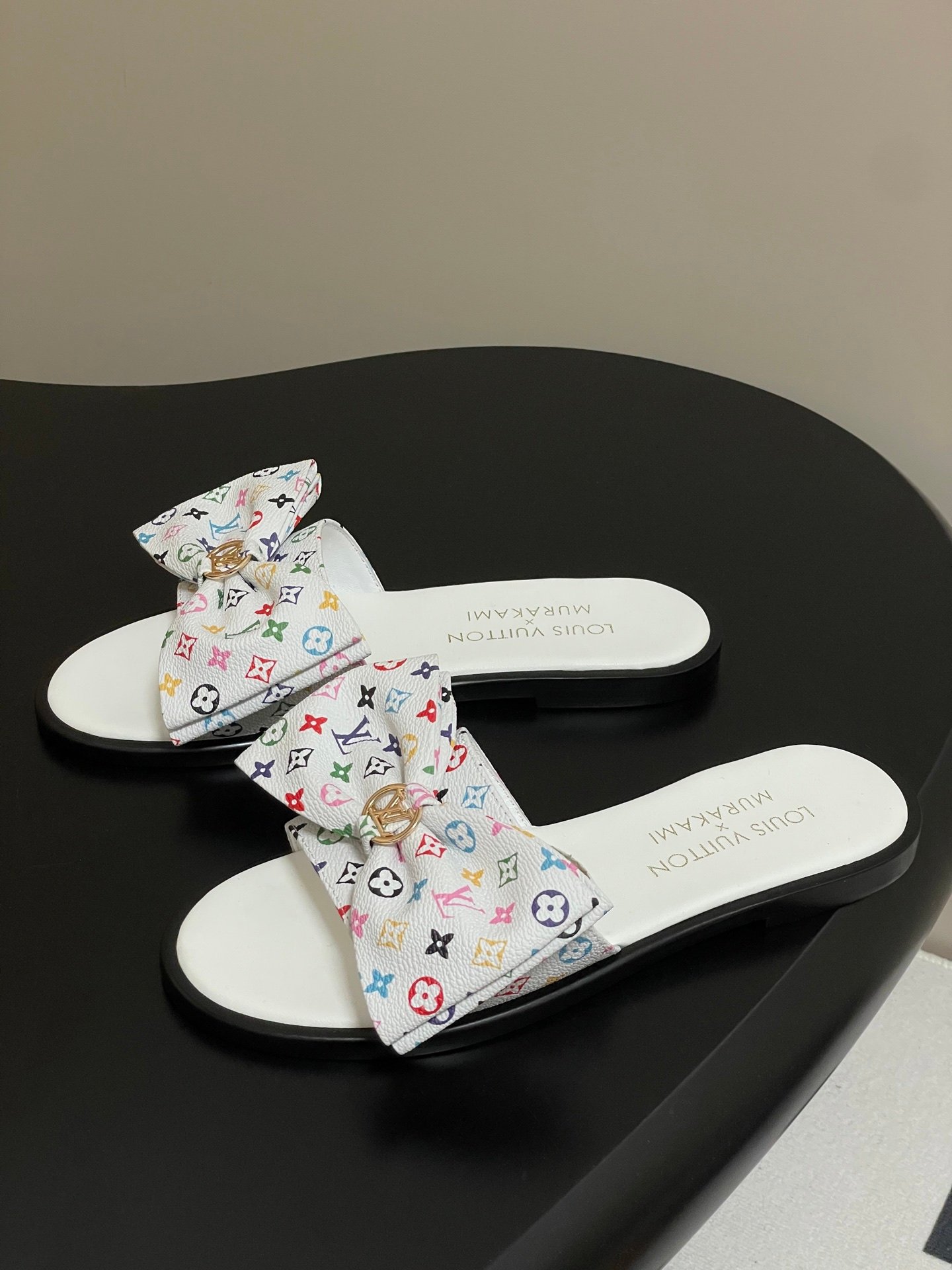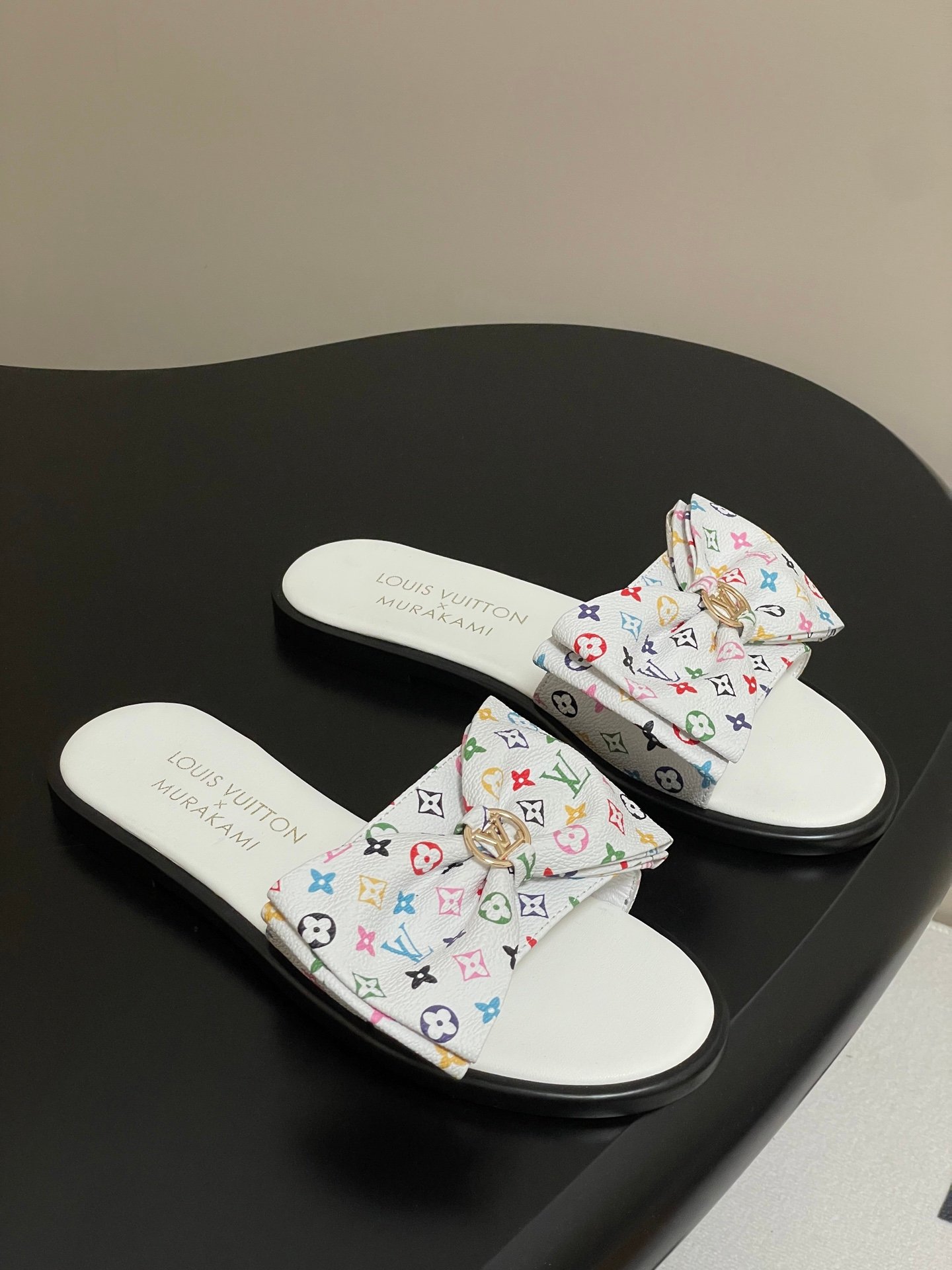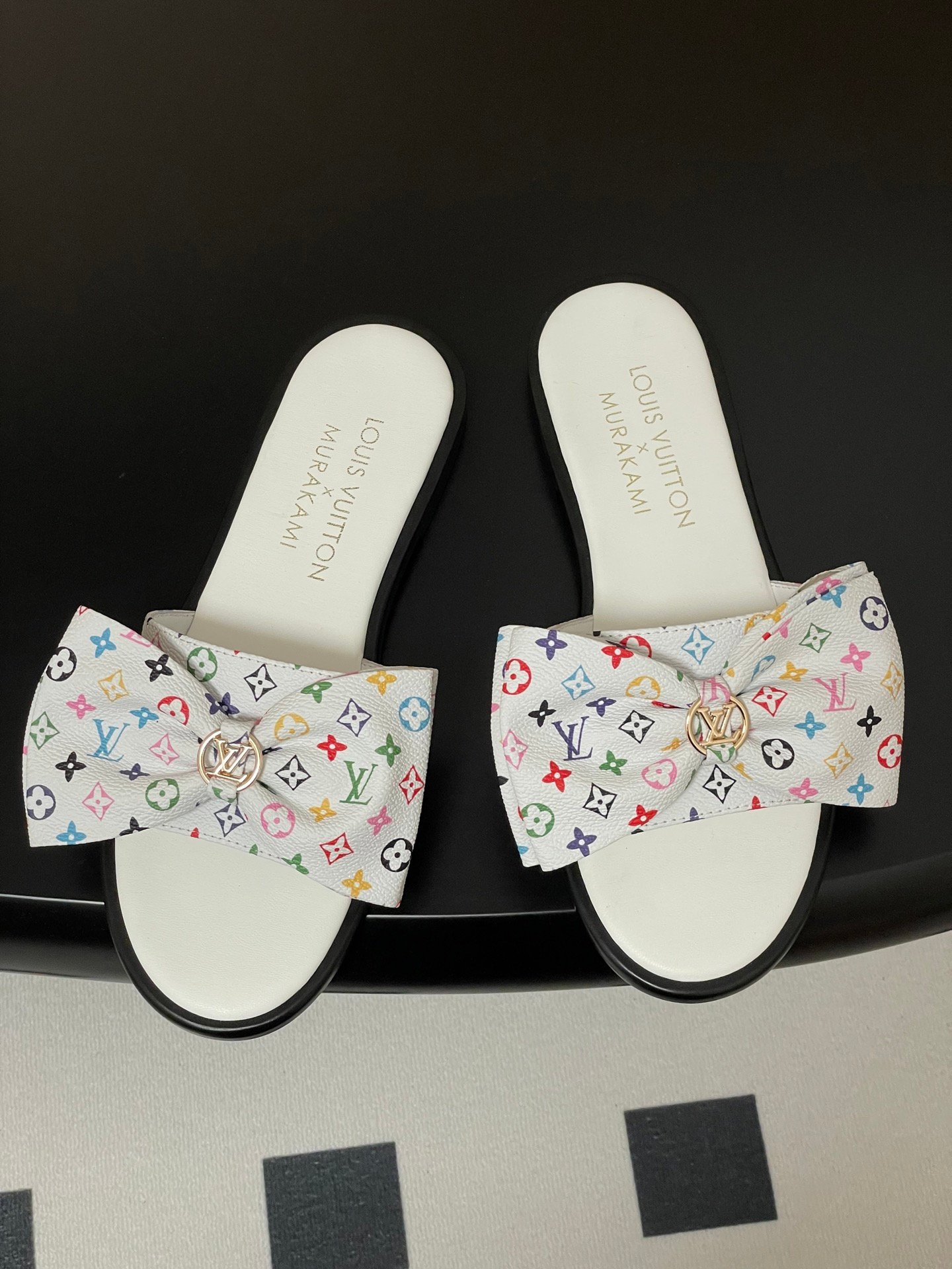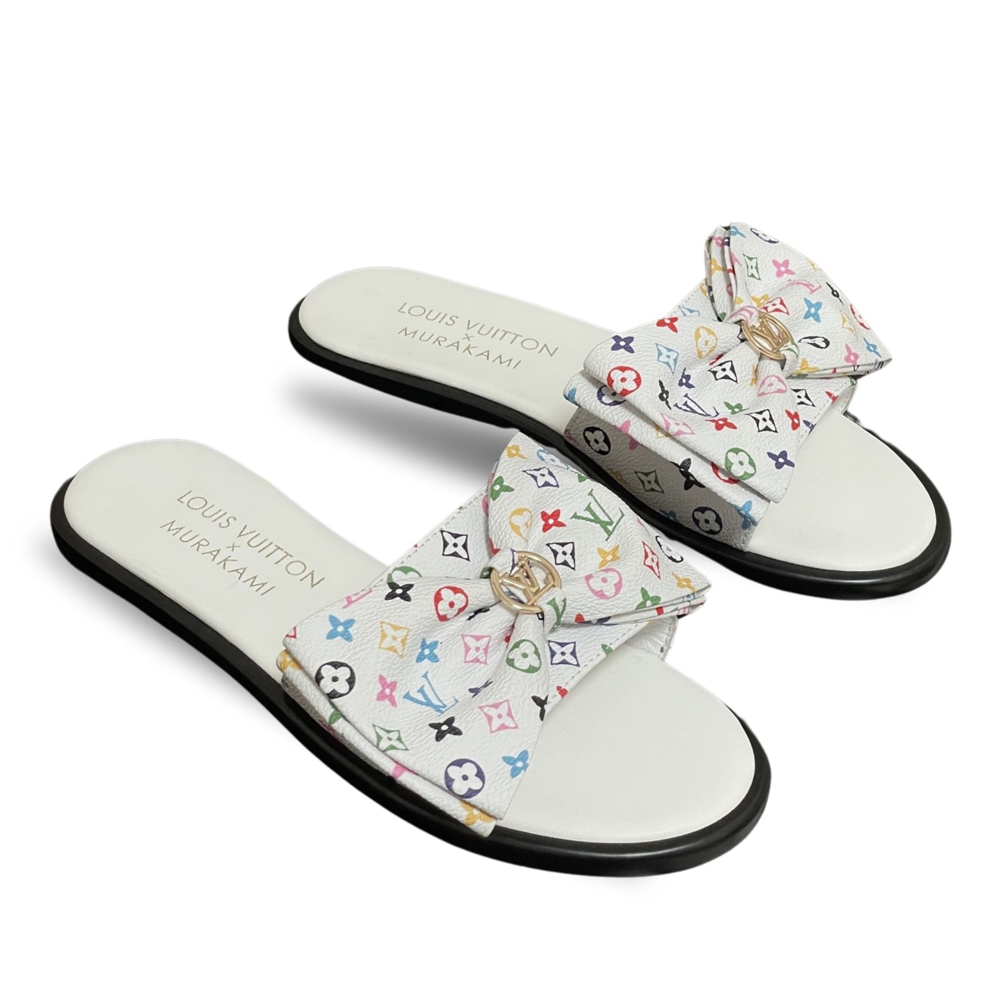 Louis Vuitton x Takashi Murakami Lily Flat Mule Bow Slide Sandals White 1AGVYA