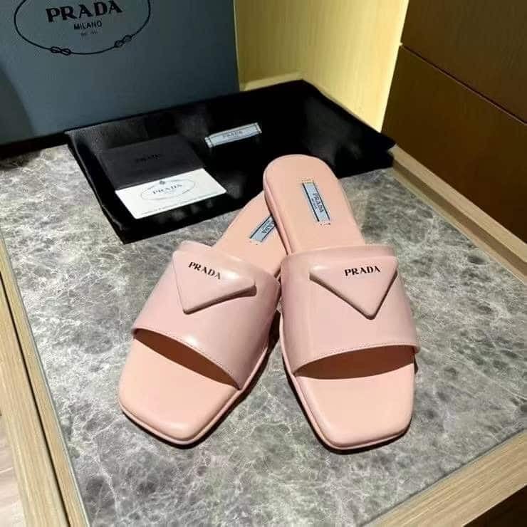 Prada Brushed Leather Slide In Pink