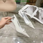 Prada Brushed Leather Slingback Pumps White
