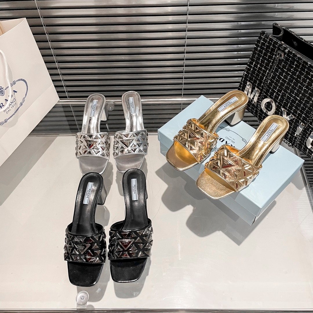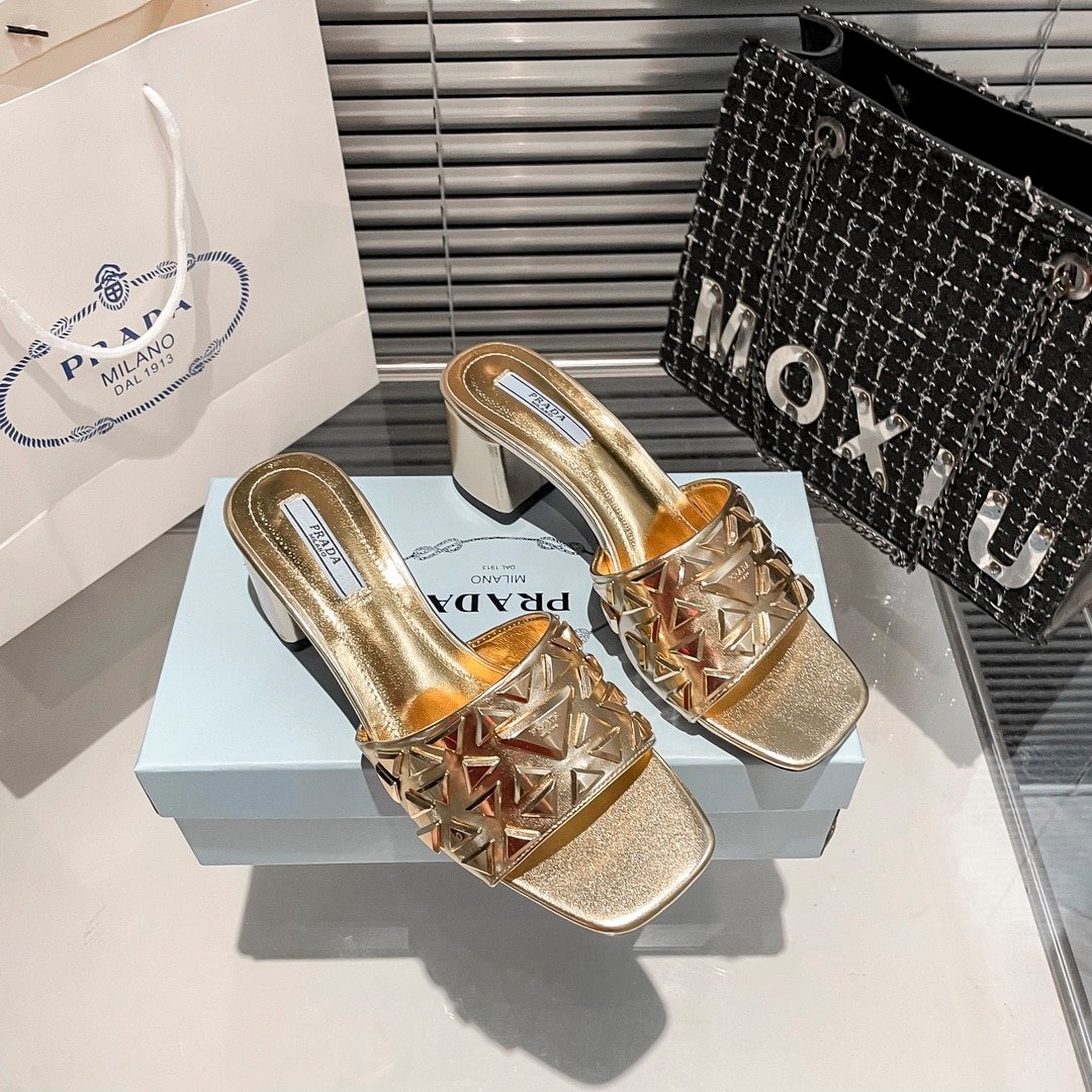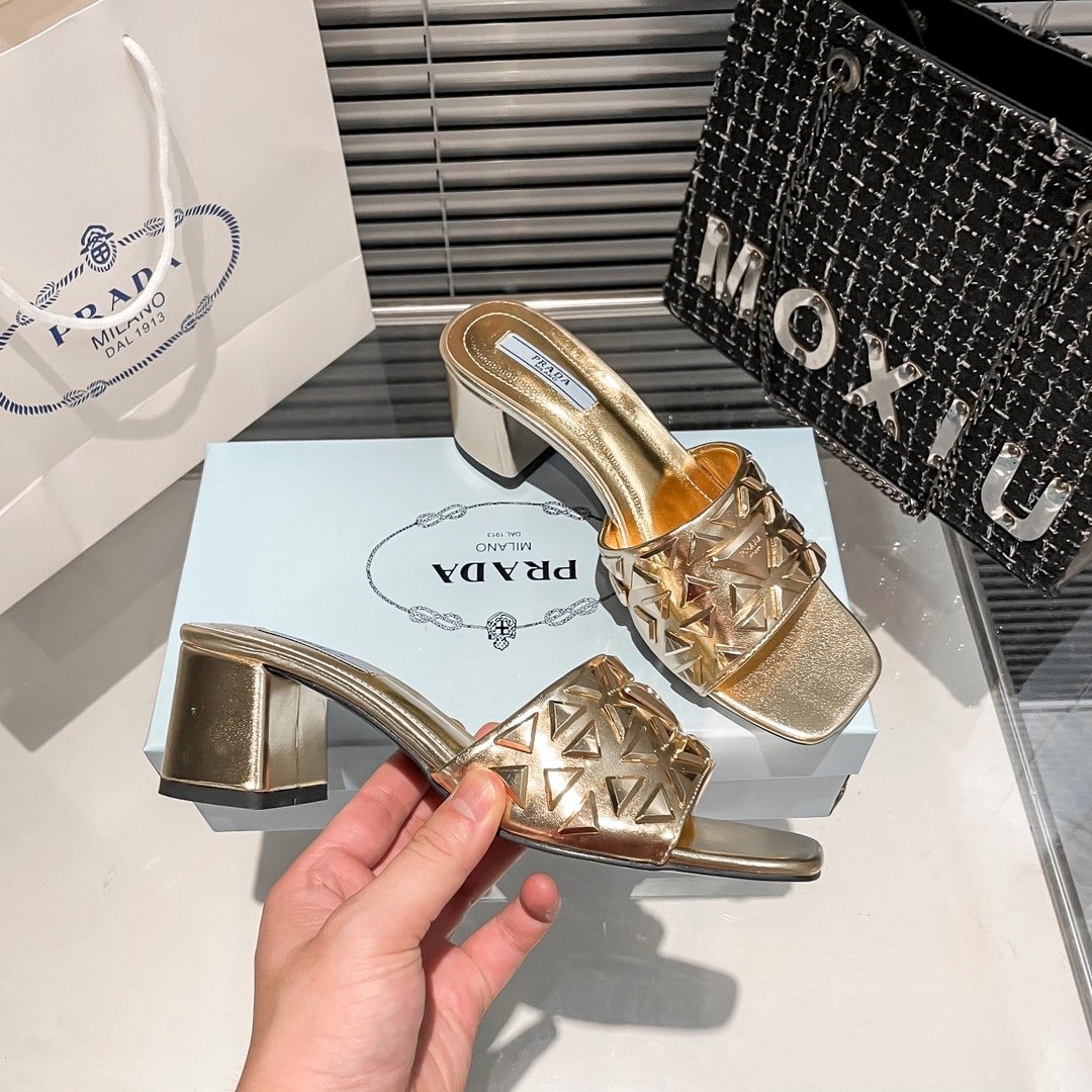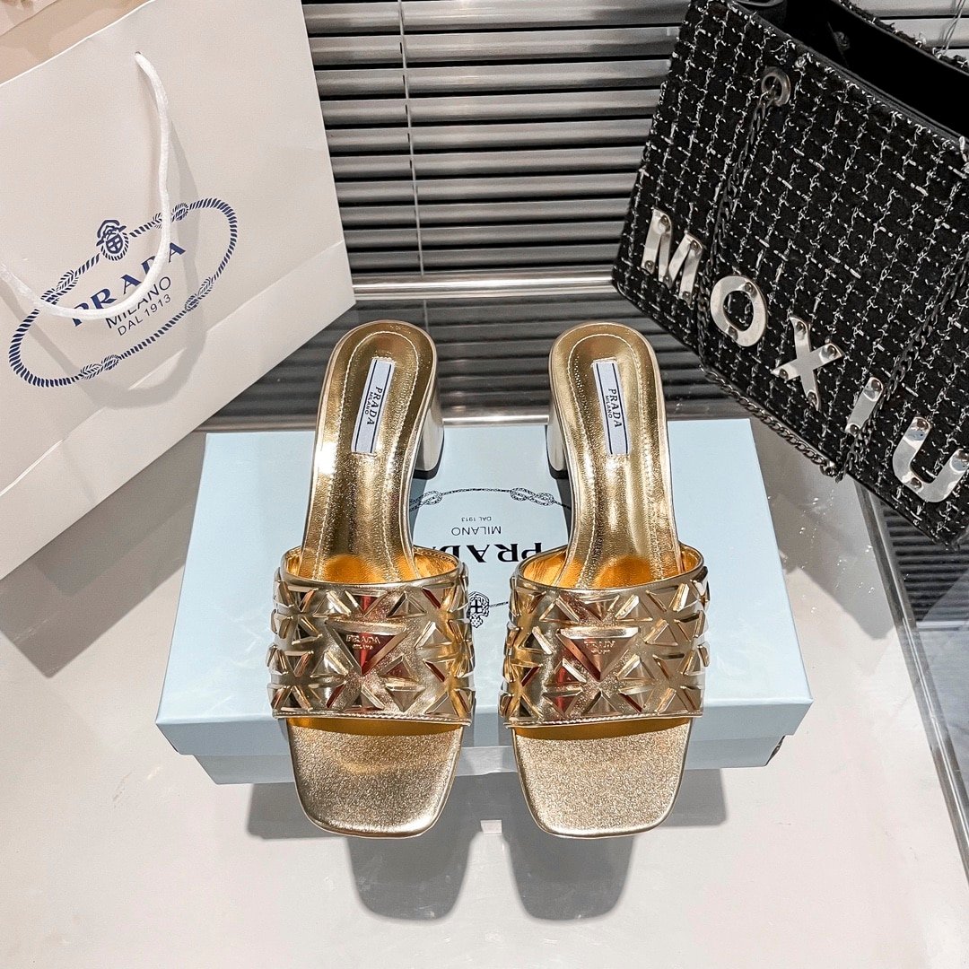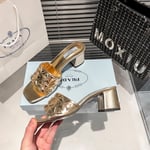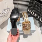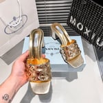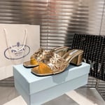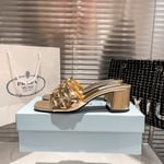 Prada Ciabatte Spazzolato Borchie Sandals Gold
