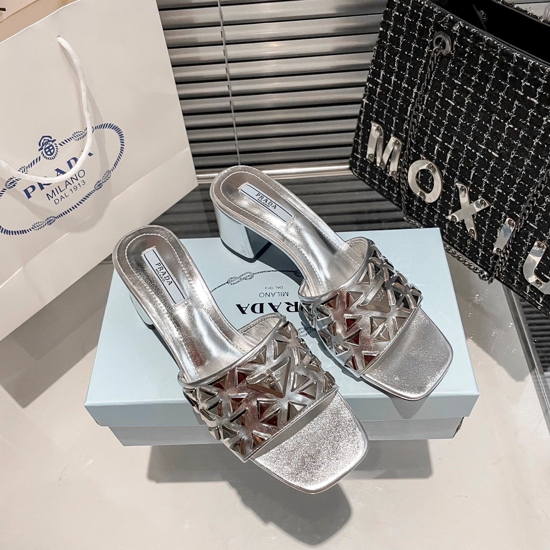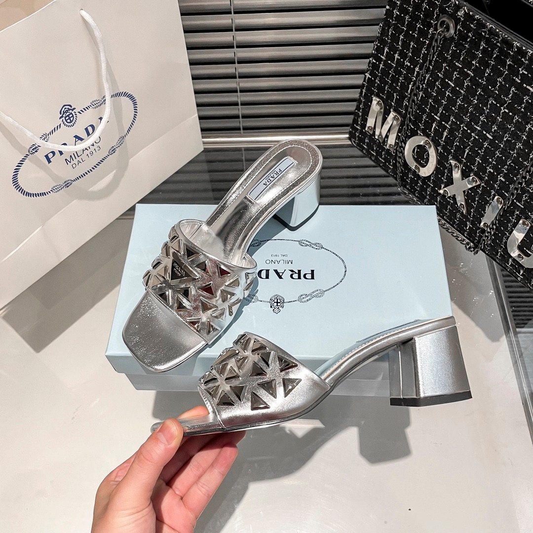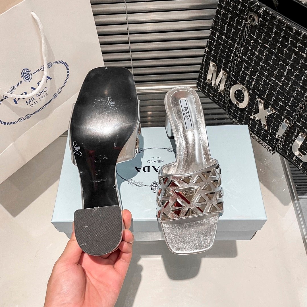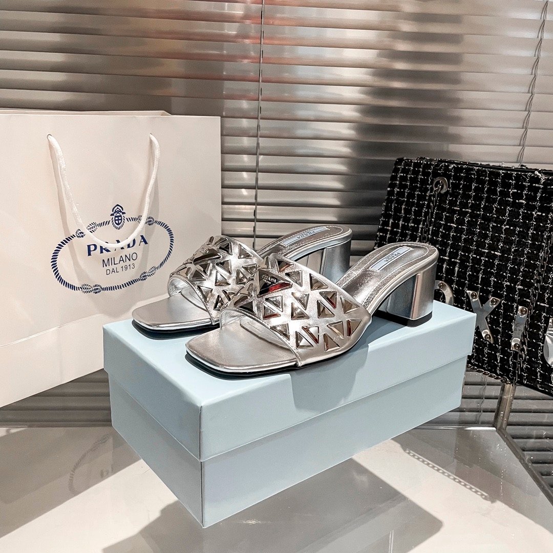 Prada Ciabatte Spazzolato Borchie Sandals Silver