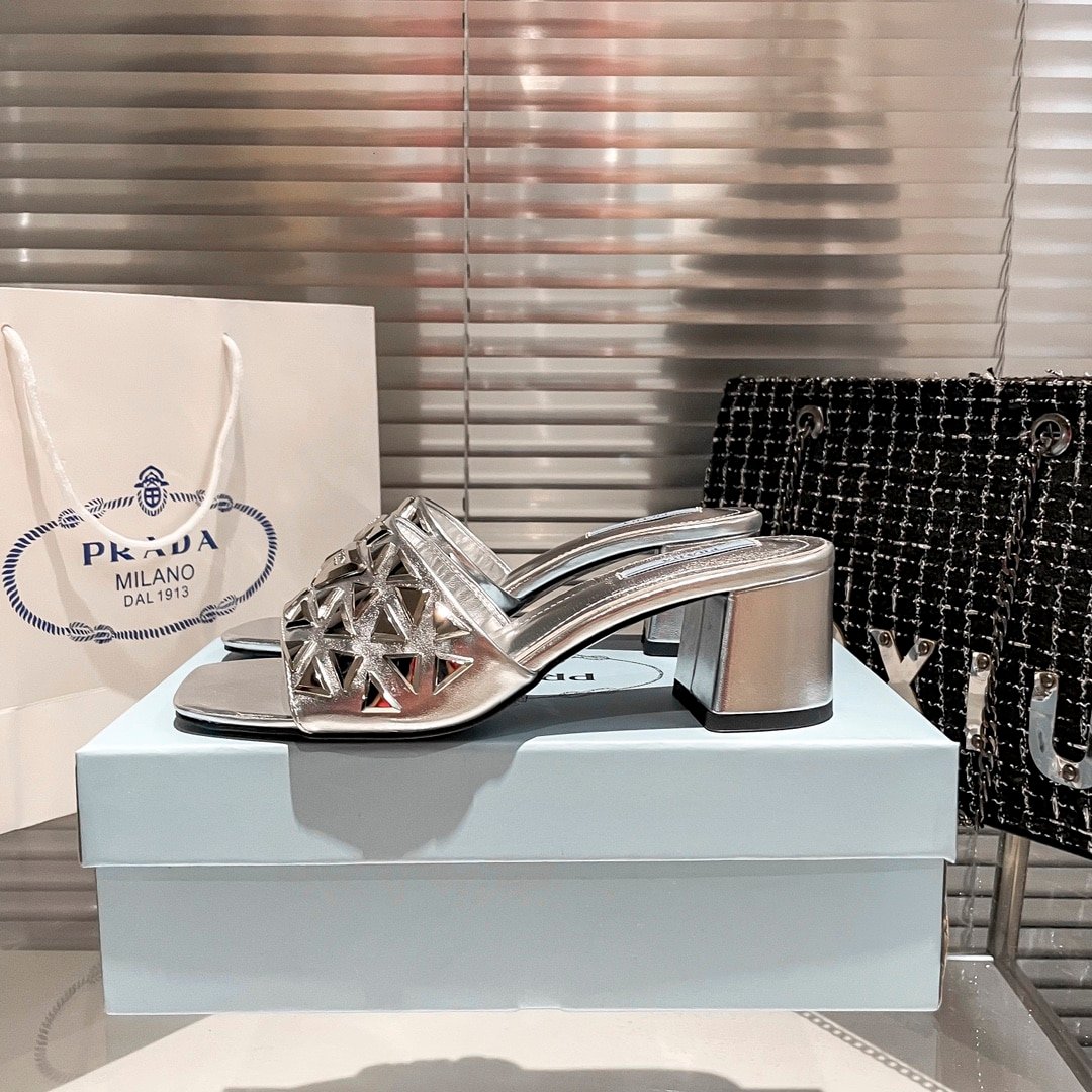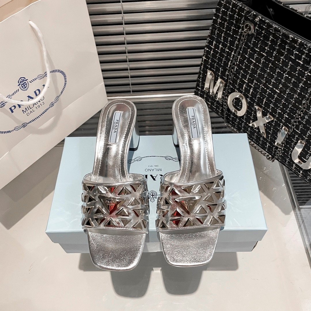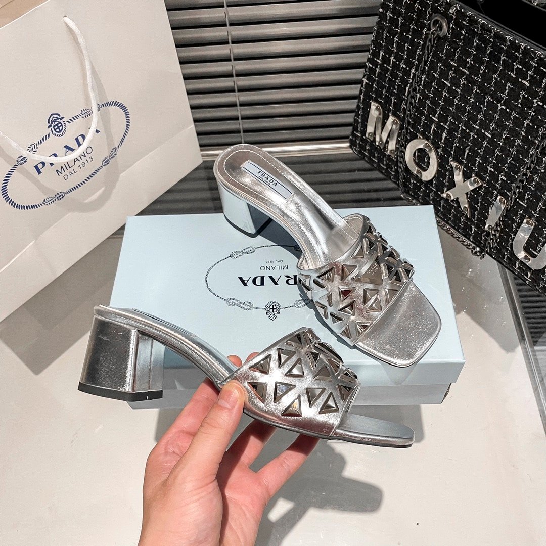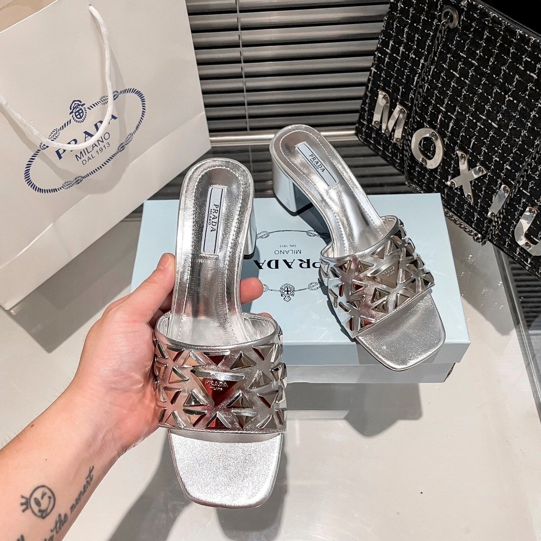 Prada Ciabatte Spazzolato Borchie Sandals Silver