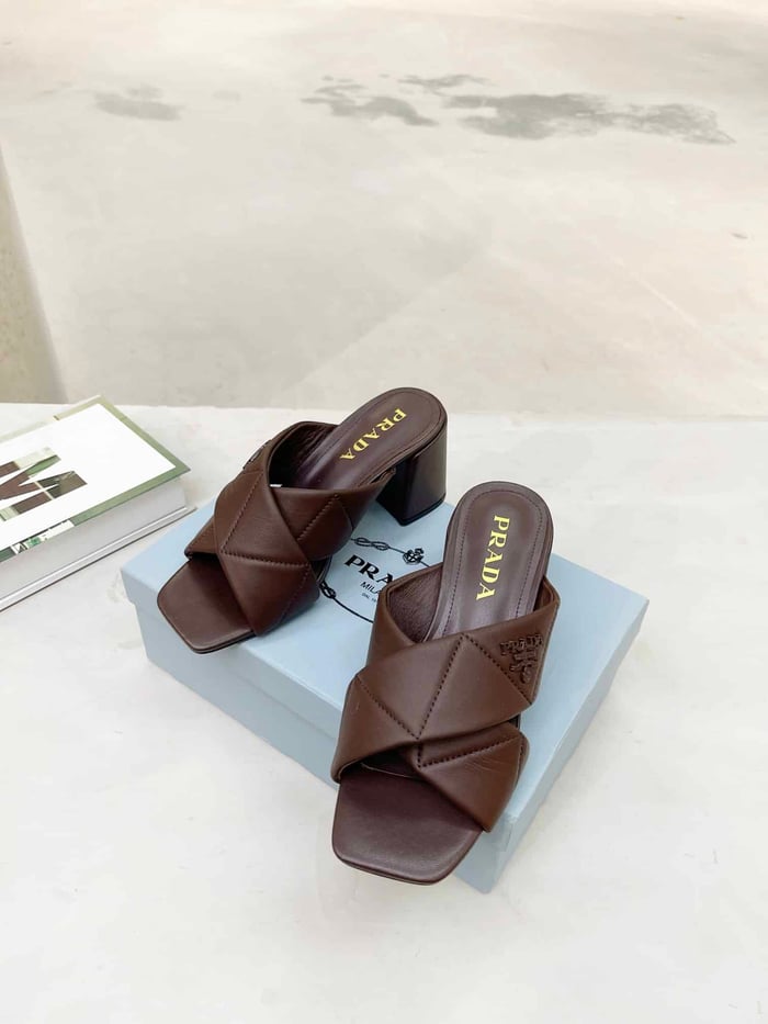 Prada Crossover Nappa Leather Sandals In Dark Brown