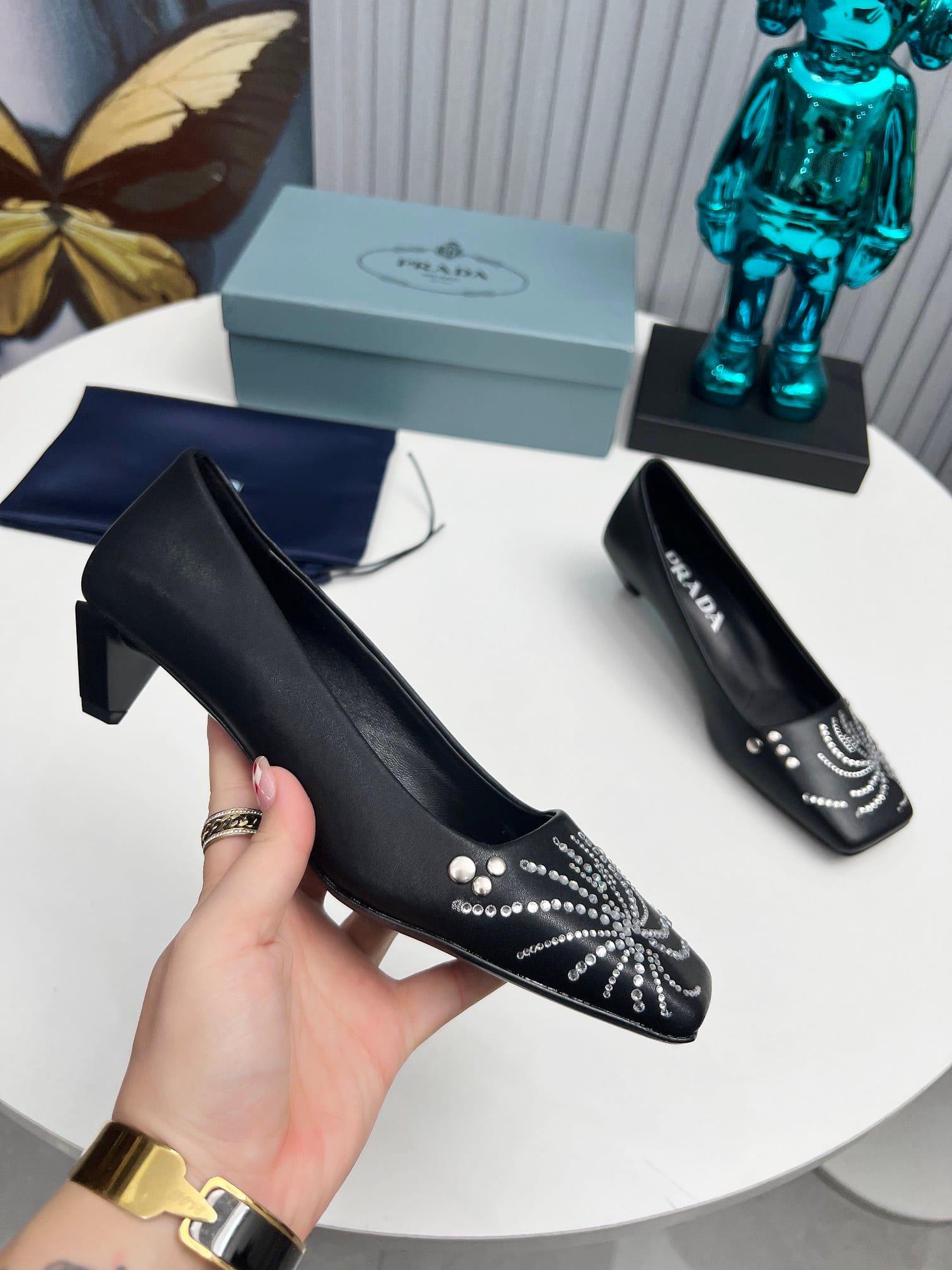 Prada Crystal Pumps Black