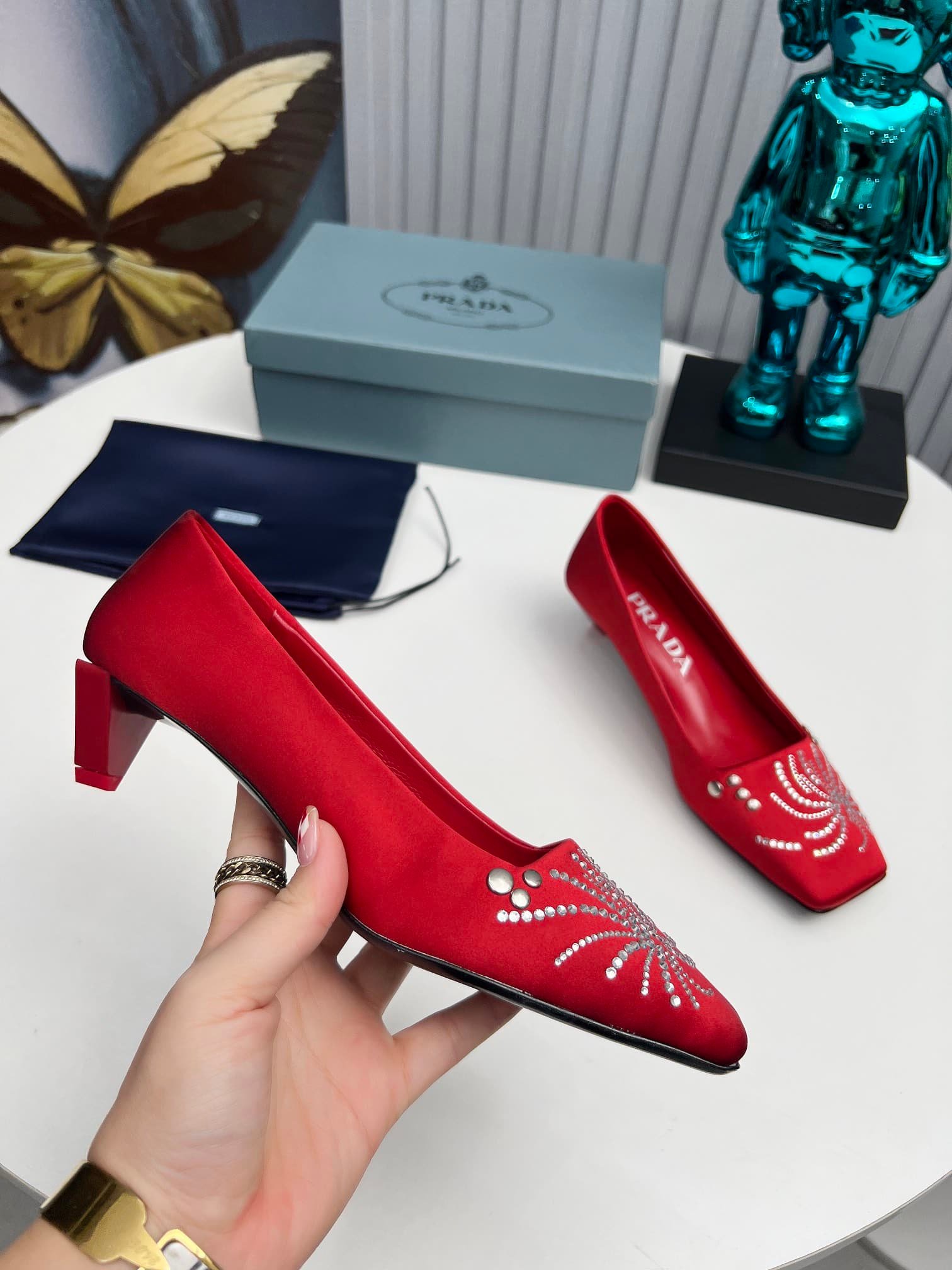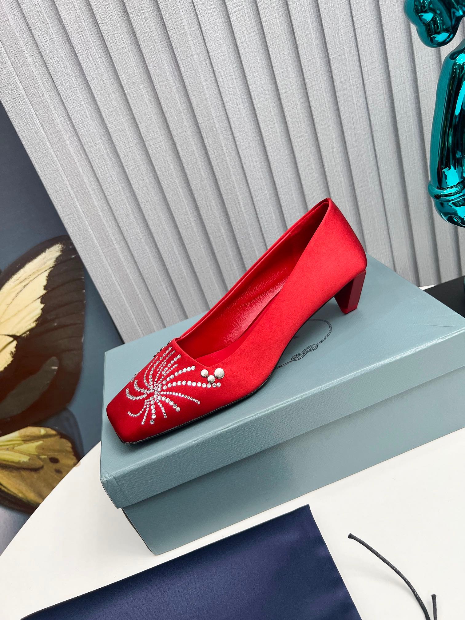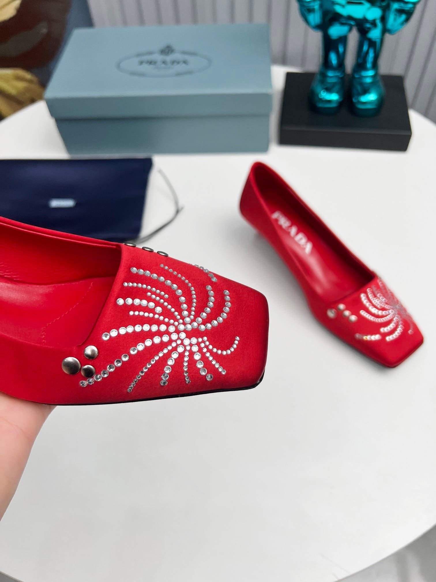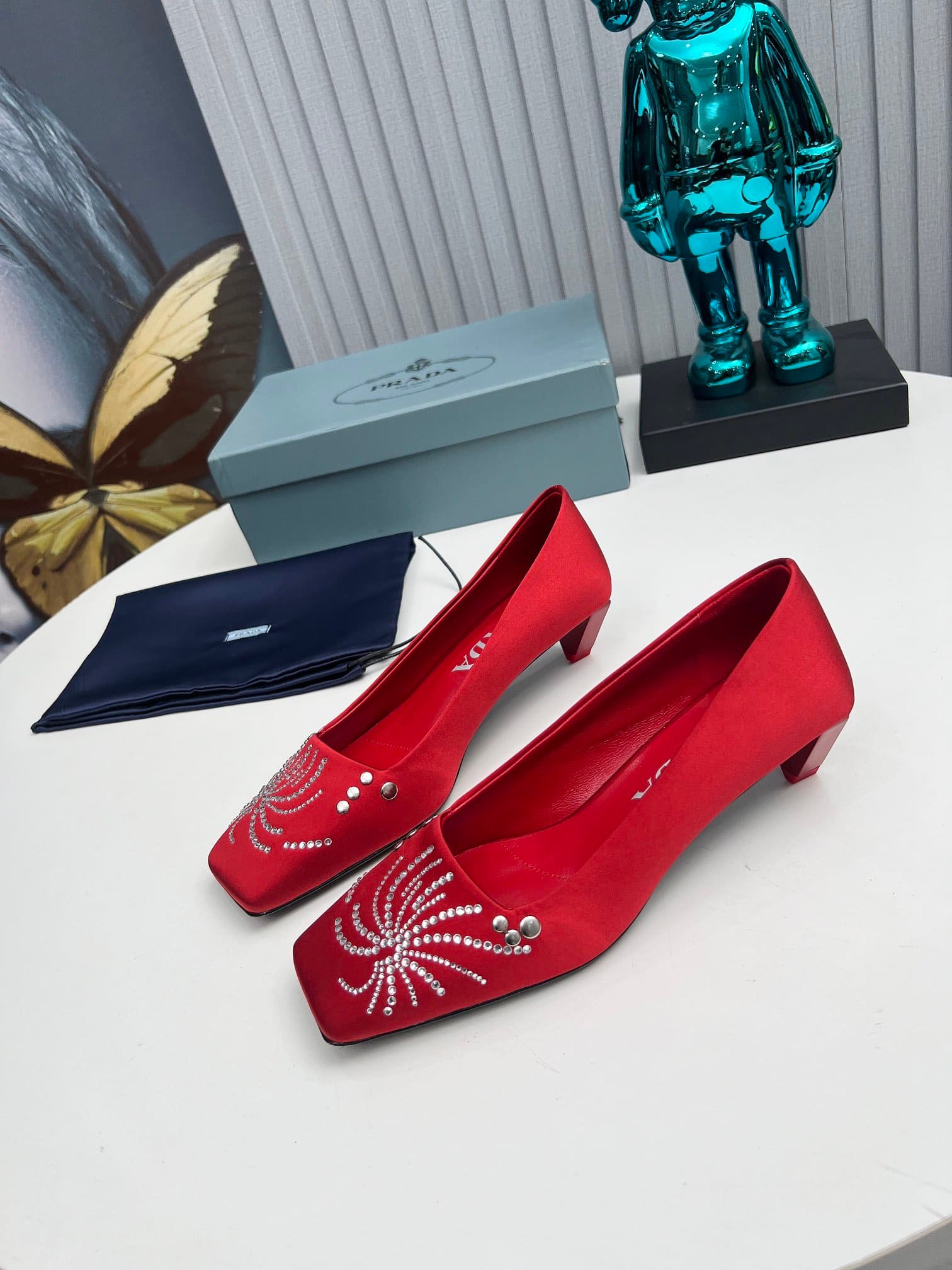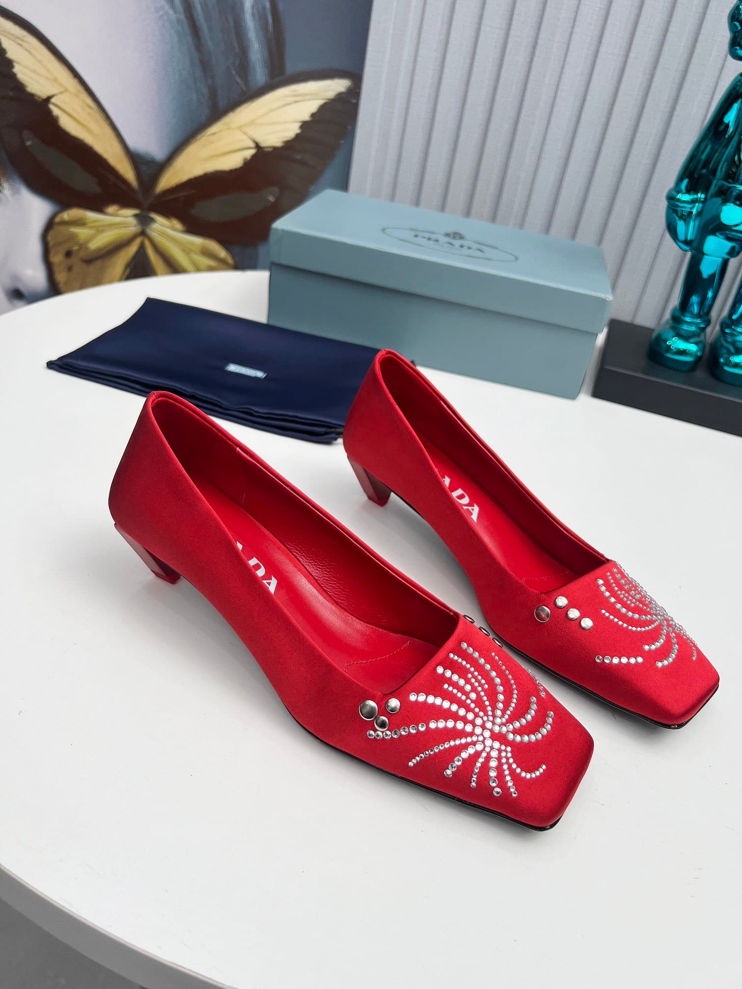 Prada Crystal Pumps Red