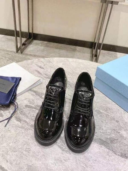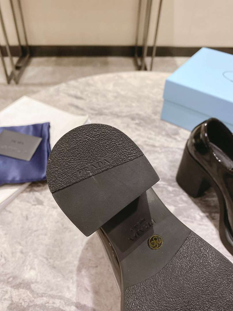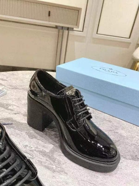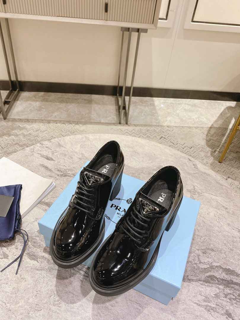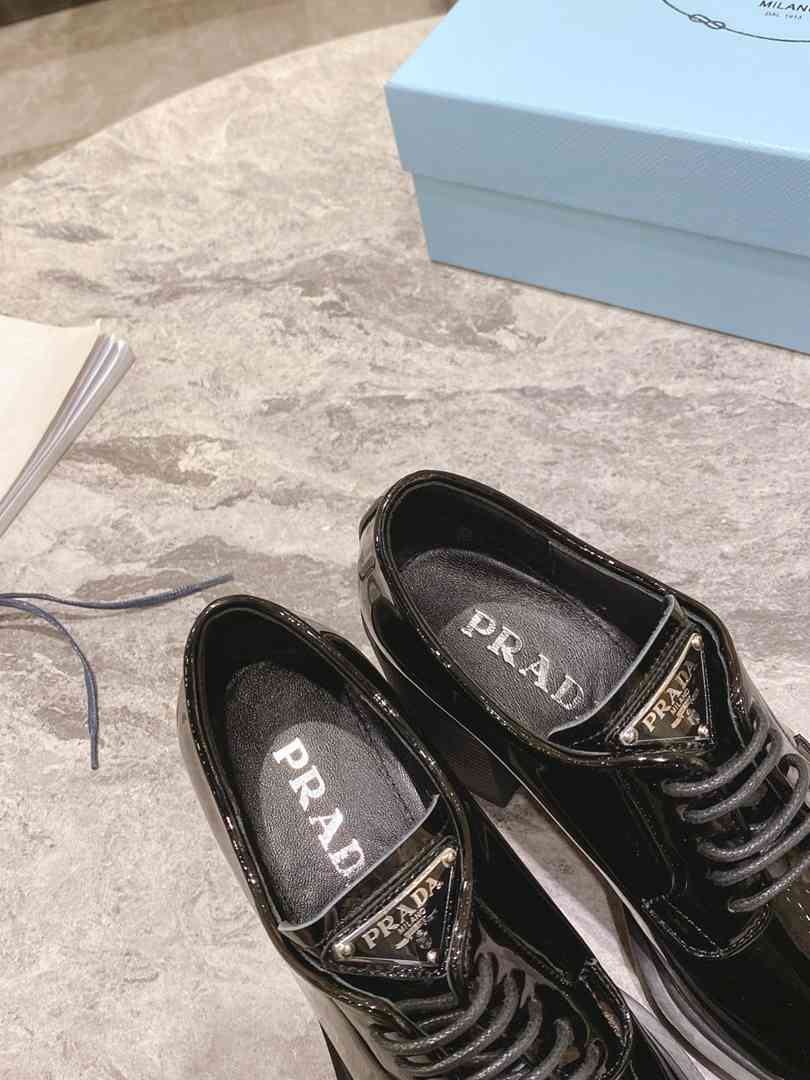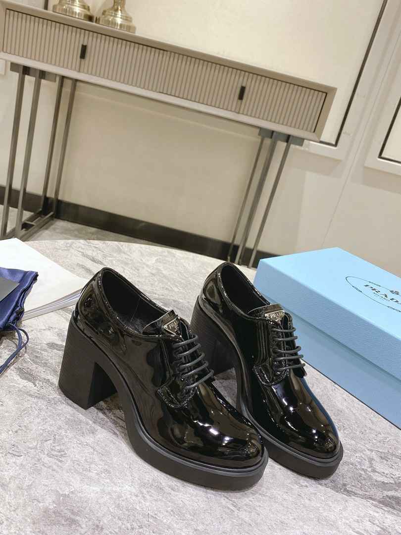 Prada Heeled Brushed Leather Lace-Ups Shiny Black