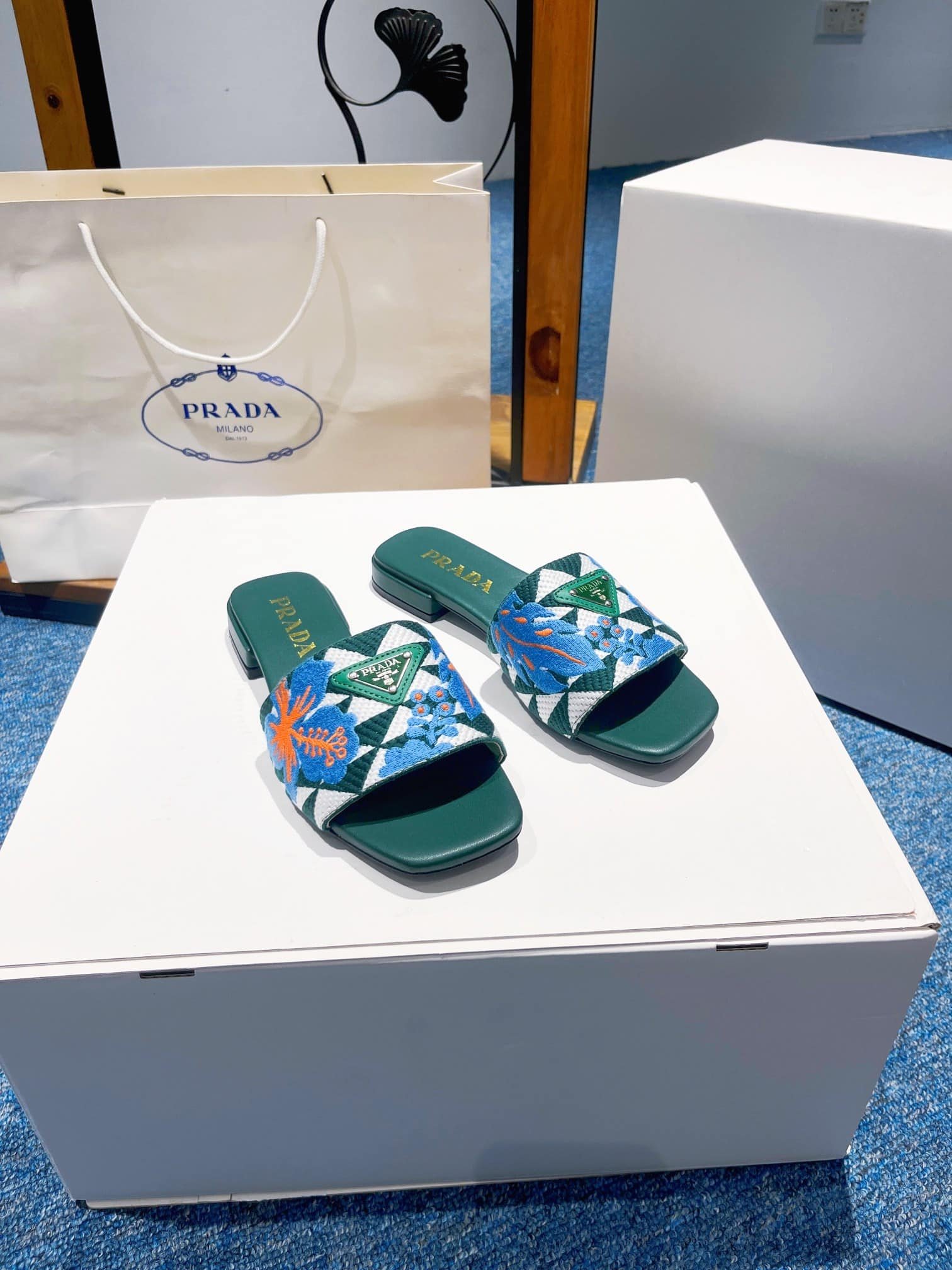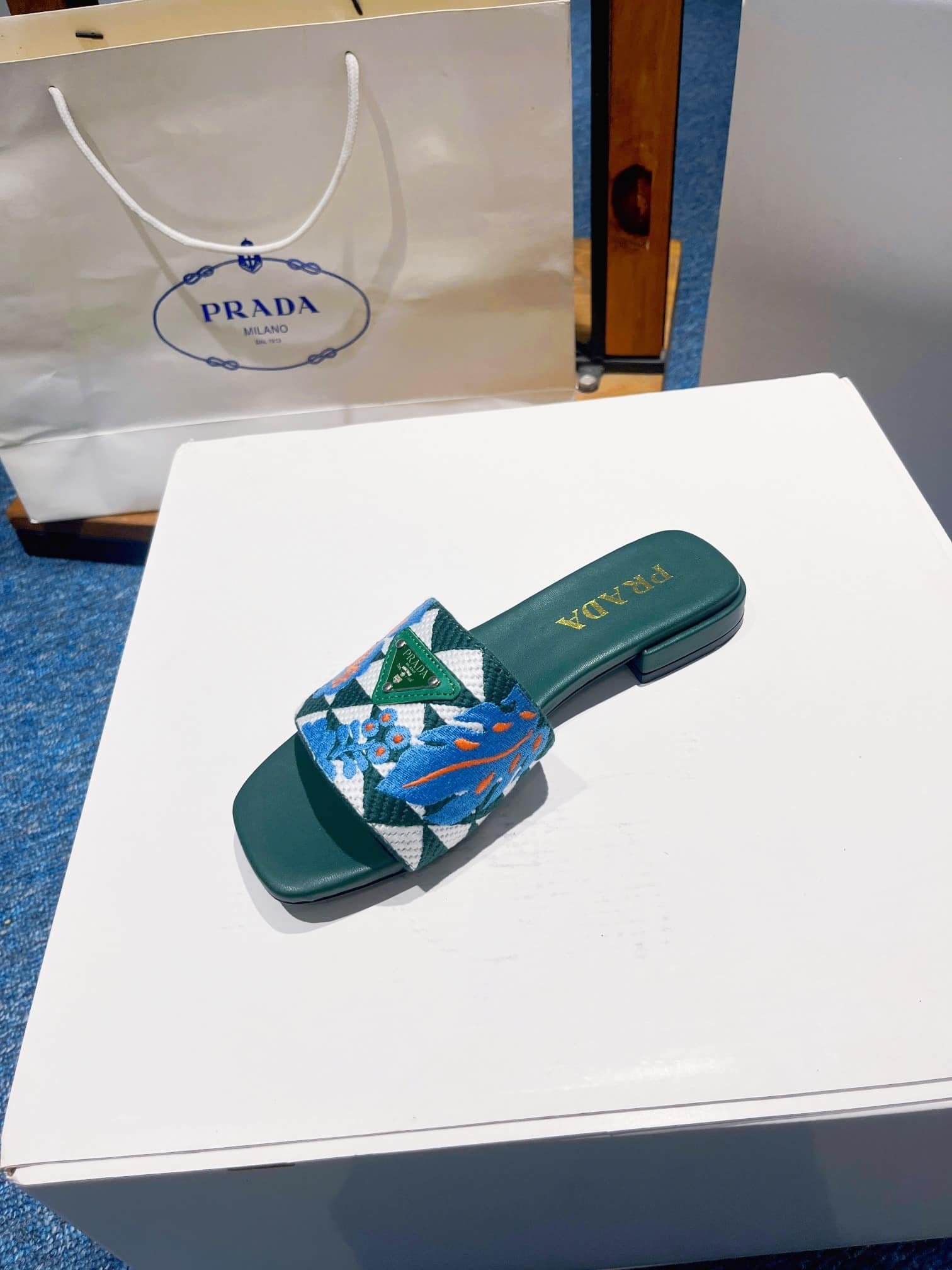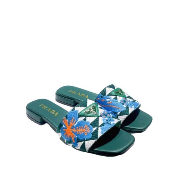 Prada Jacquard Logo Slides Green