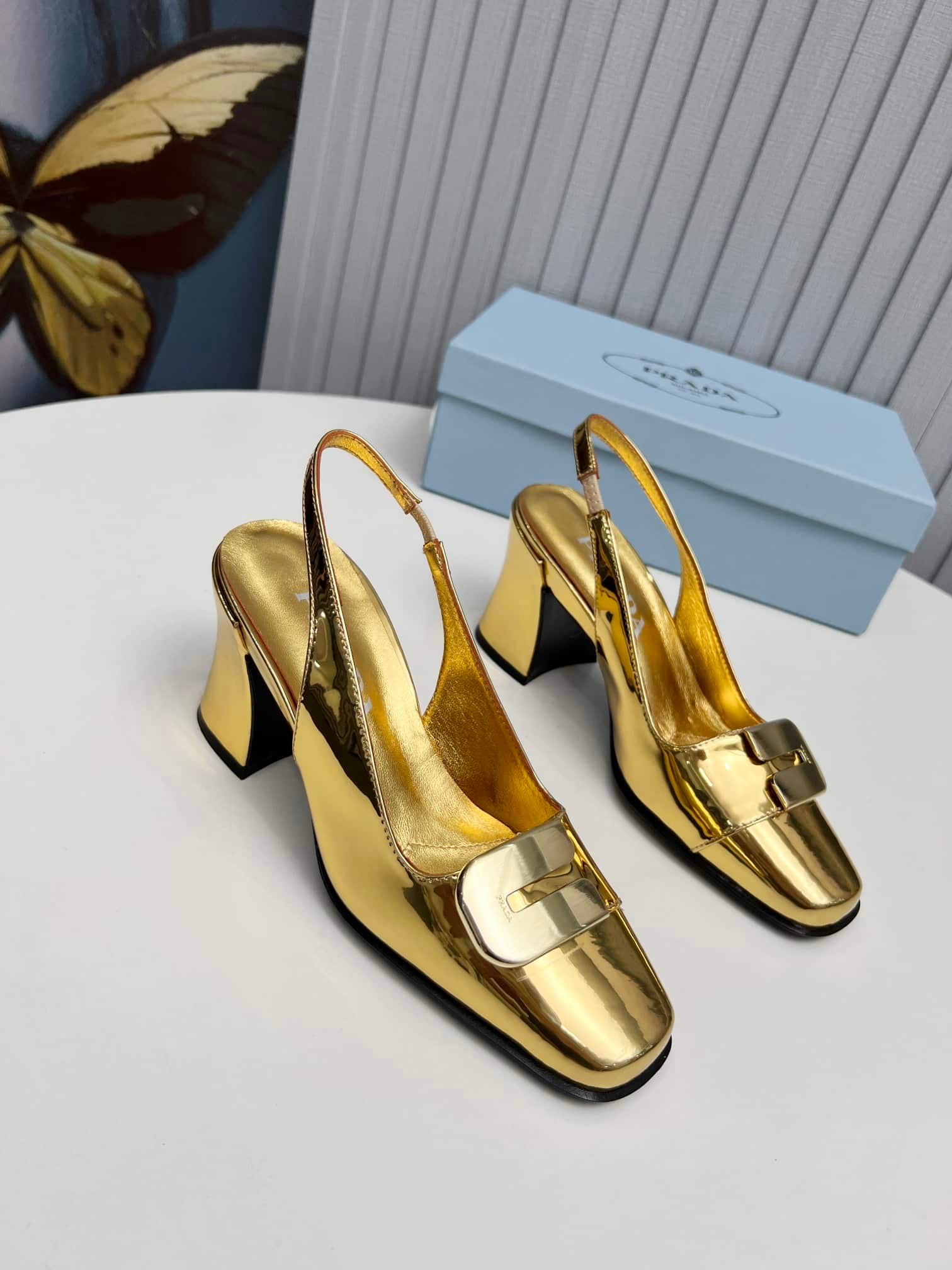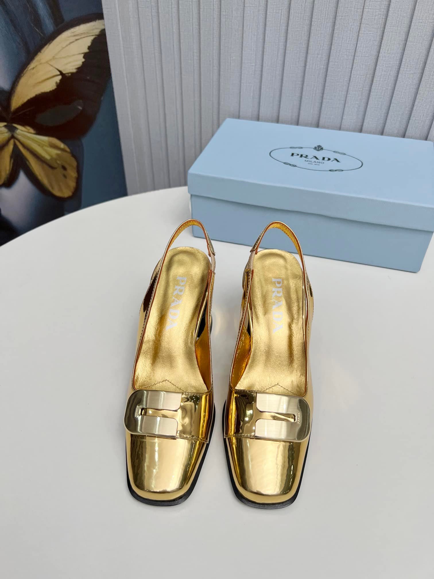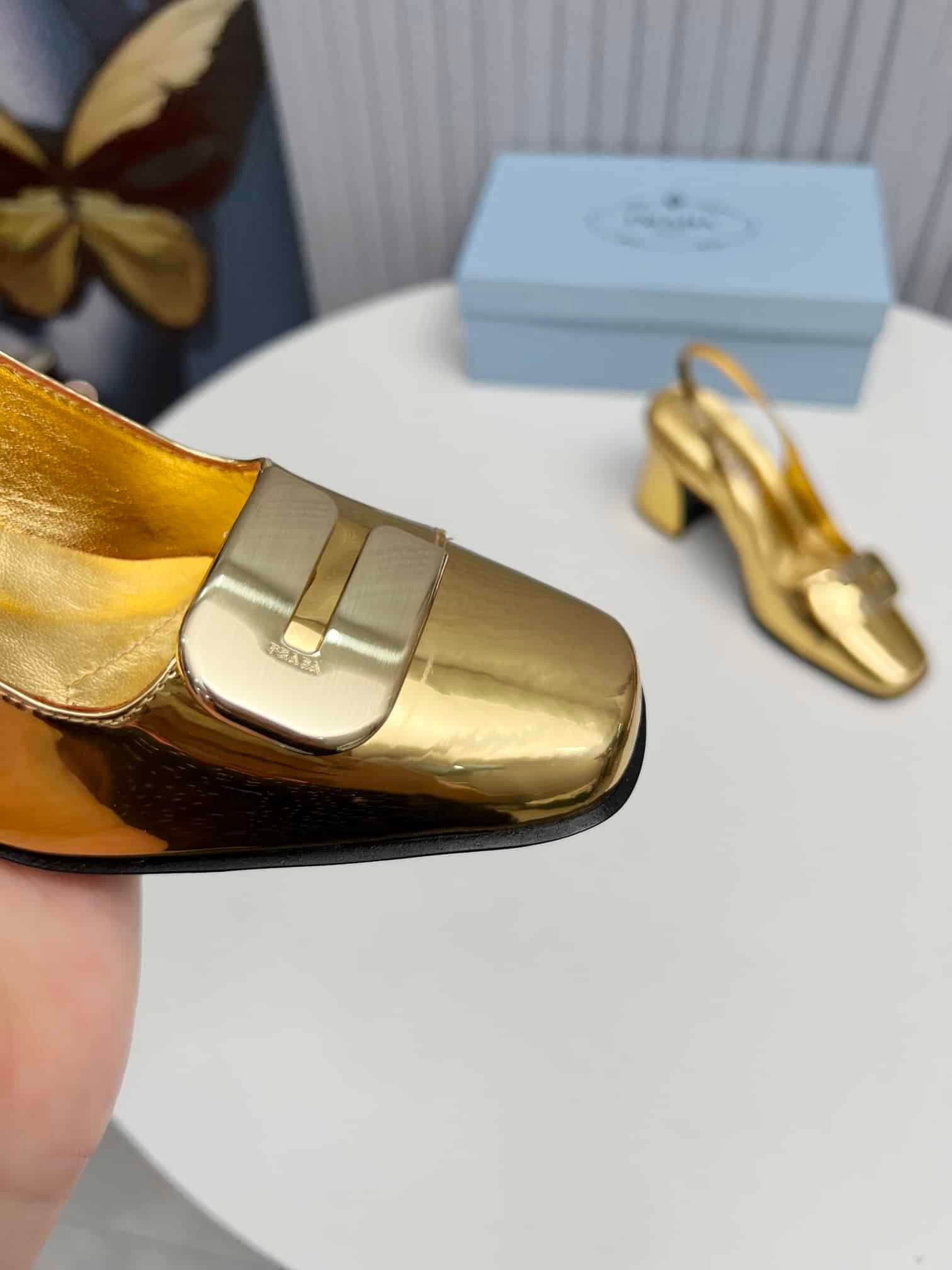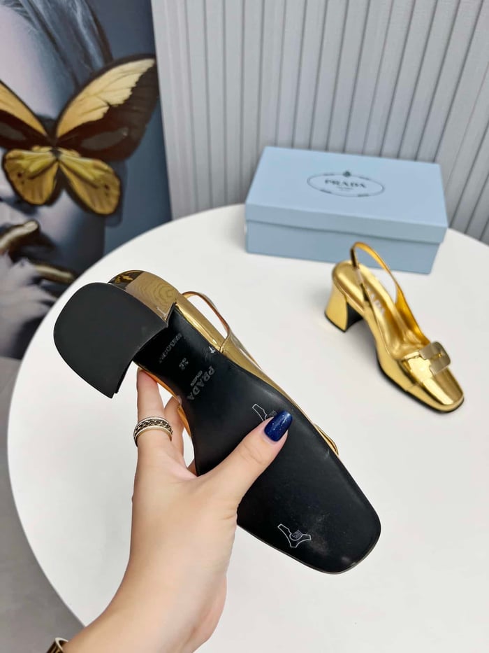 Prada Leather Slingback Pumps Gold