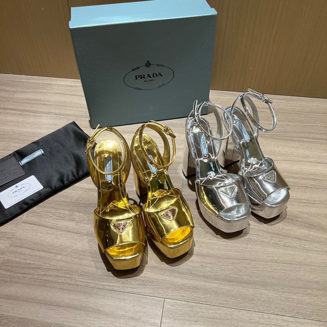 Prada Metallic Leather Platform Sandals In Gold 1Xp48B 3Au1 F0522 F 135