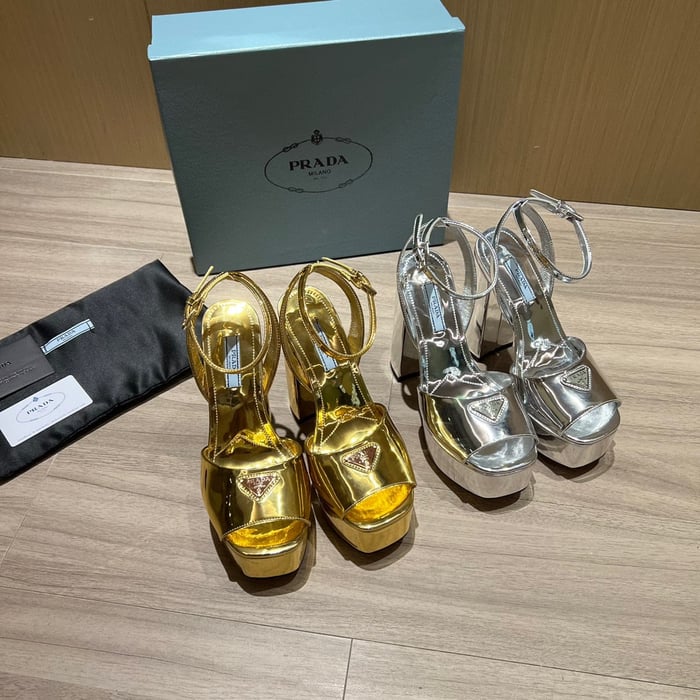 Prada Metallic Leather Platform Sandals In Silver 1Xp48B 3Au1 F0118 F 135