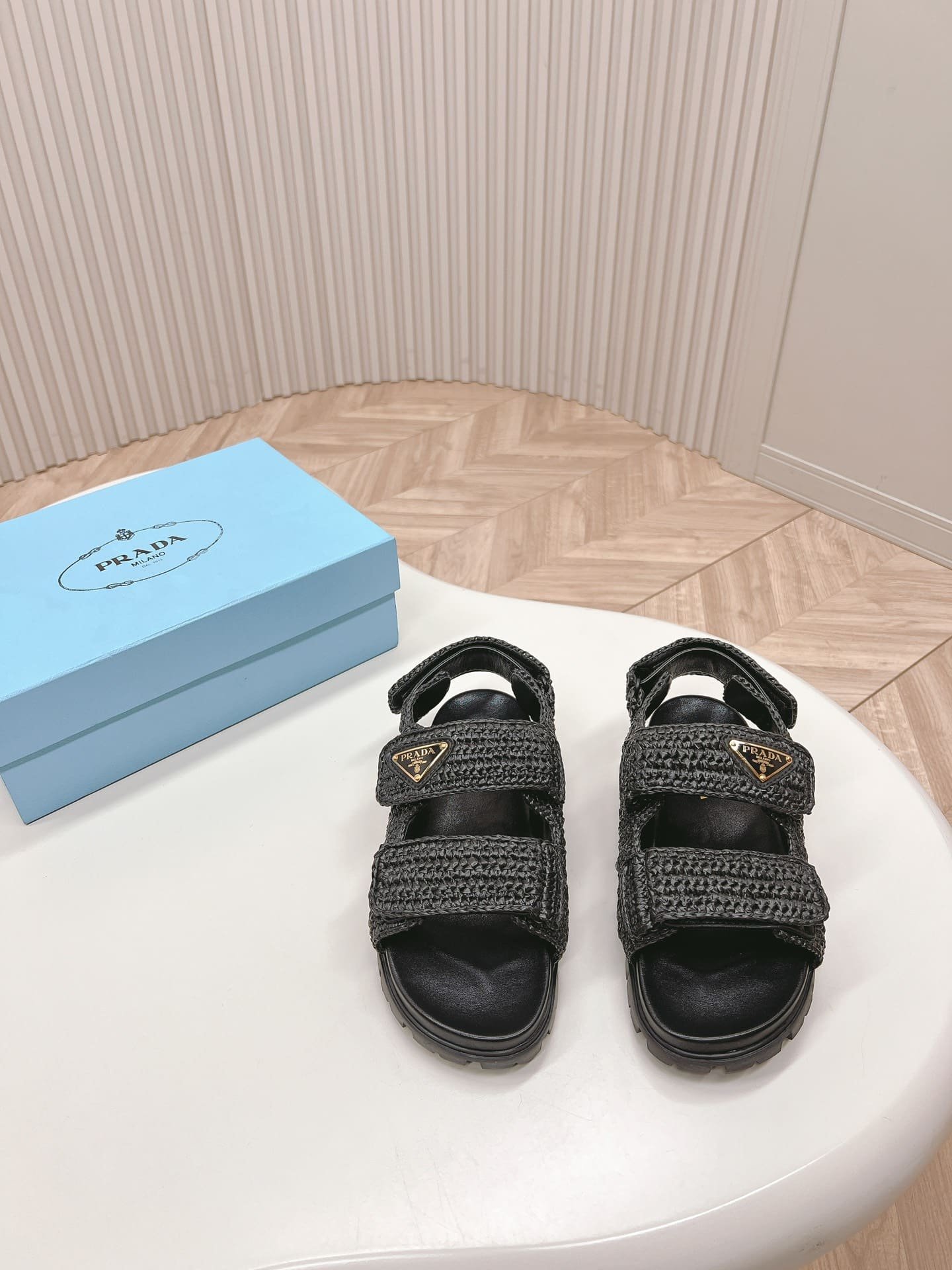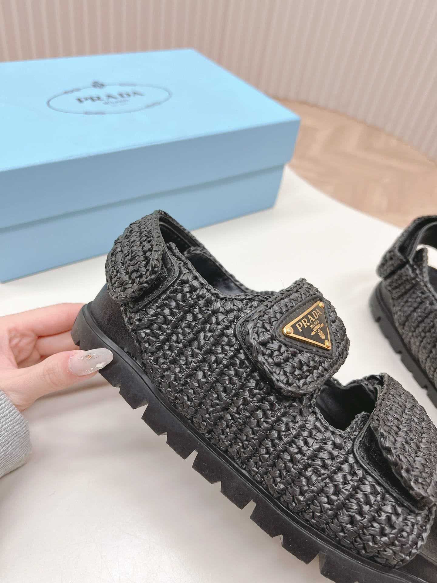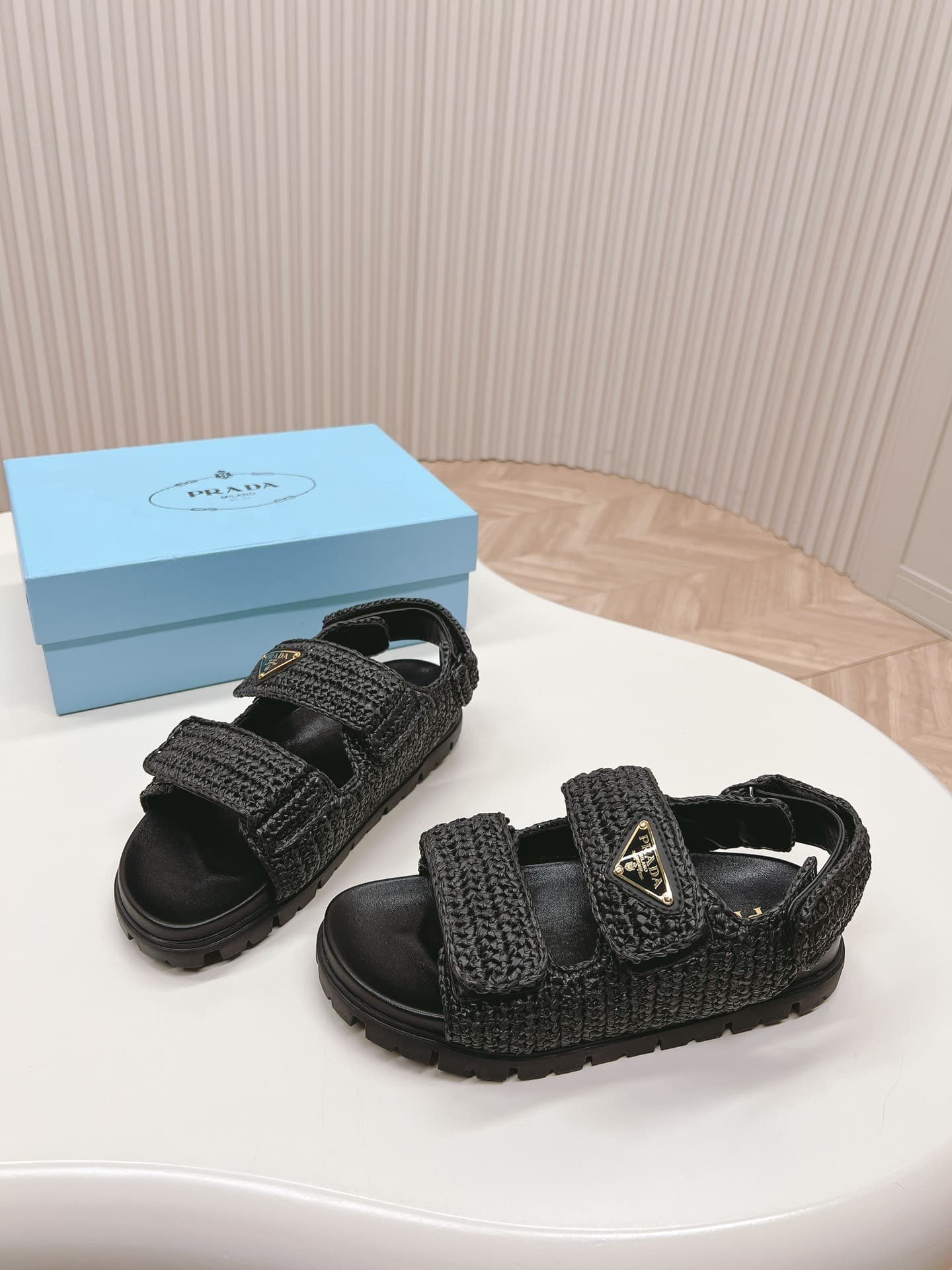 Prada Monolith Crochet Raffia Effect Sandals In Black