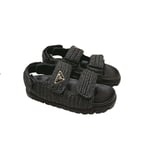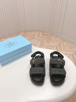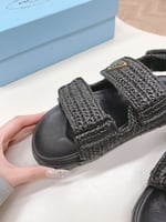 Prada Natural Crochet Platform Slides Black