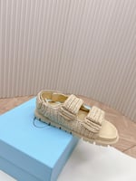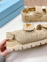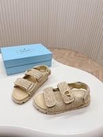 Prada Fussbett Raffia Dual Buckle Slide Sandals Beige
