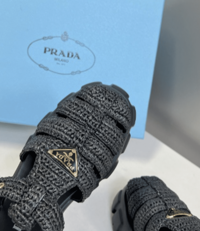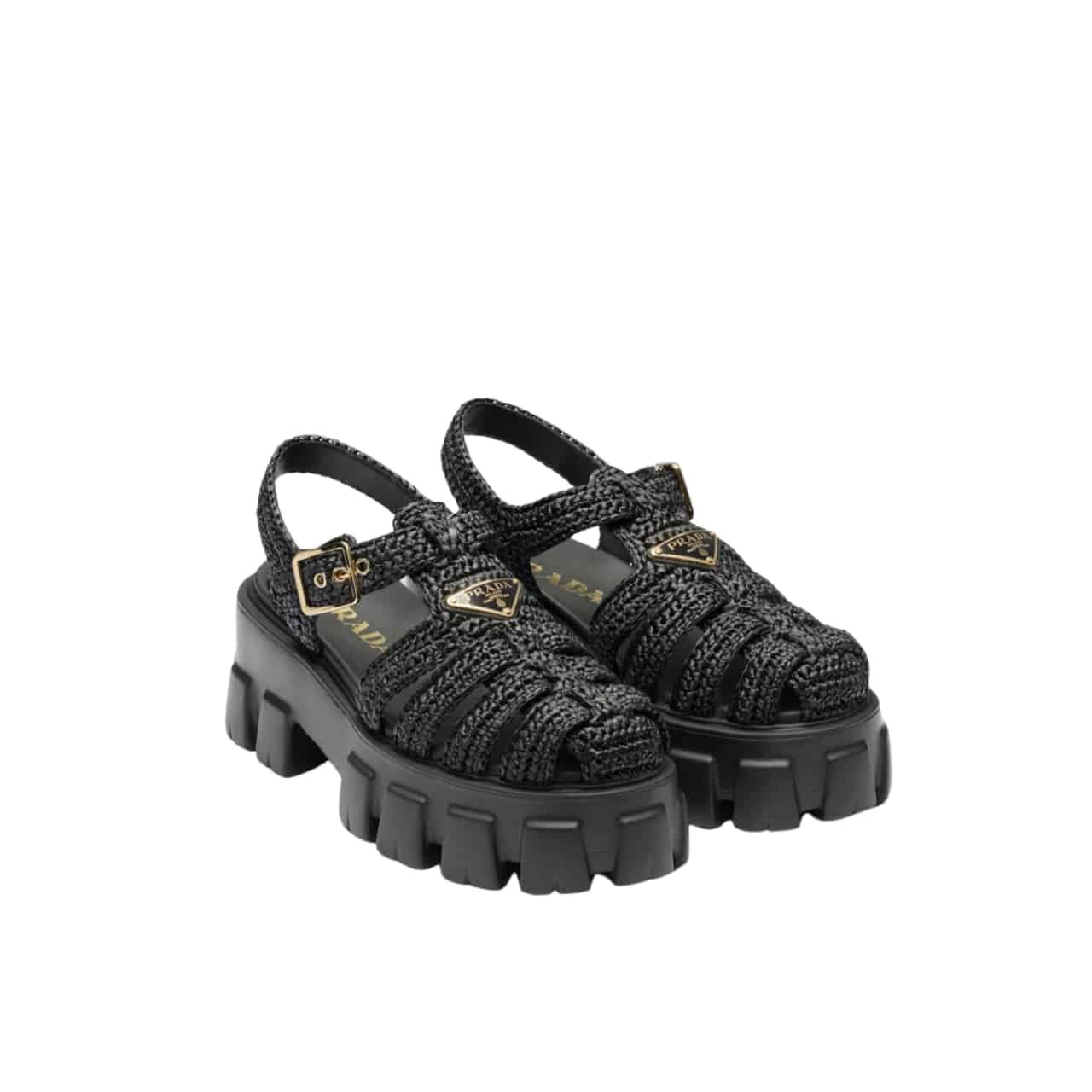 Prada Monolith Crochet Sandals Black