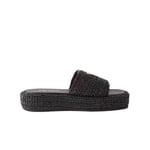 Prada Natural Crochet Platform Slides Black