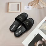 Prada Embroidered Fabric Slides Black Yellow