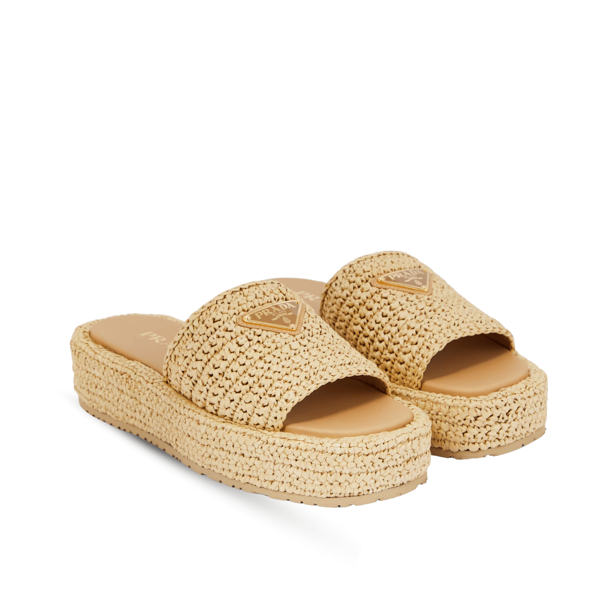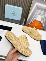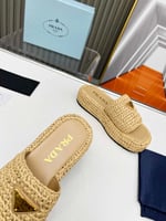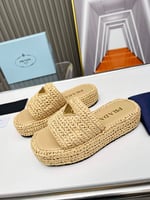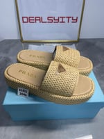 Prada Natural Crochet Platform Slides