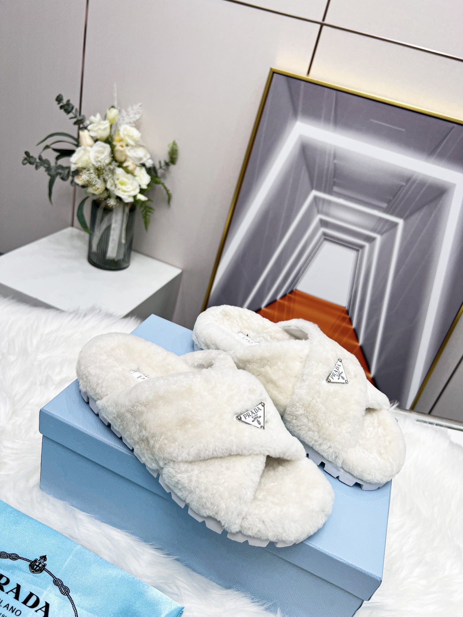 Prada Petal White Terrycloth Sippers
