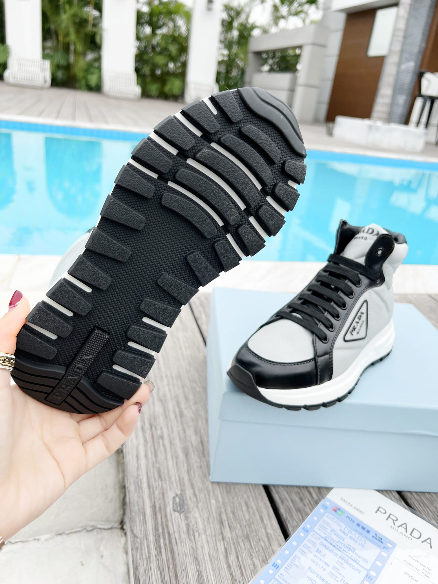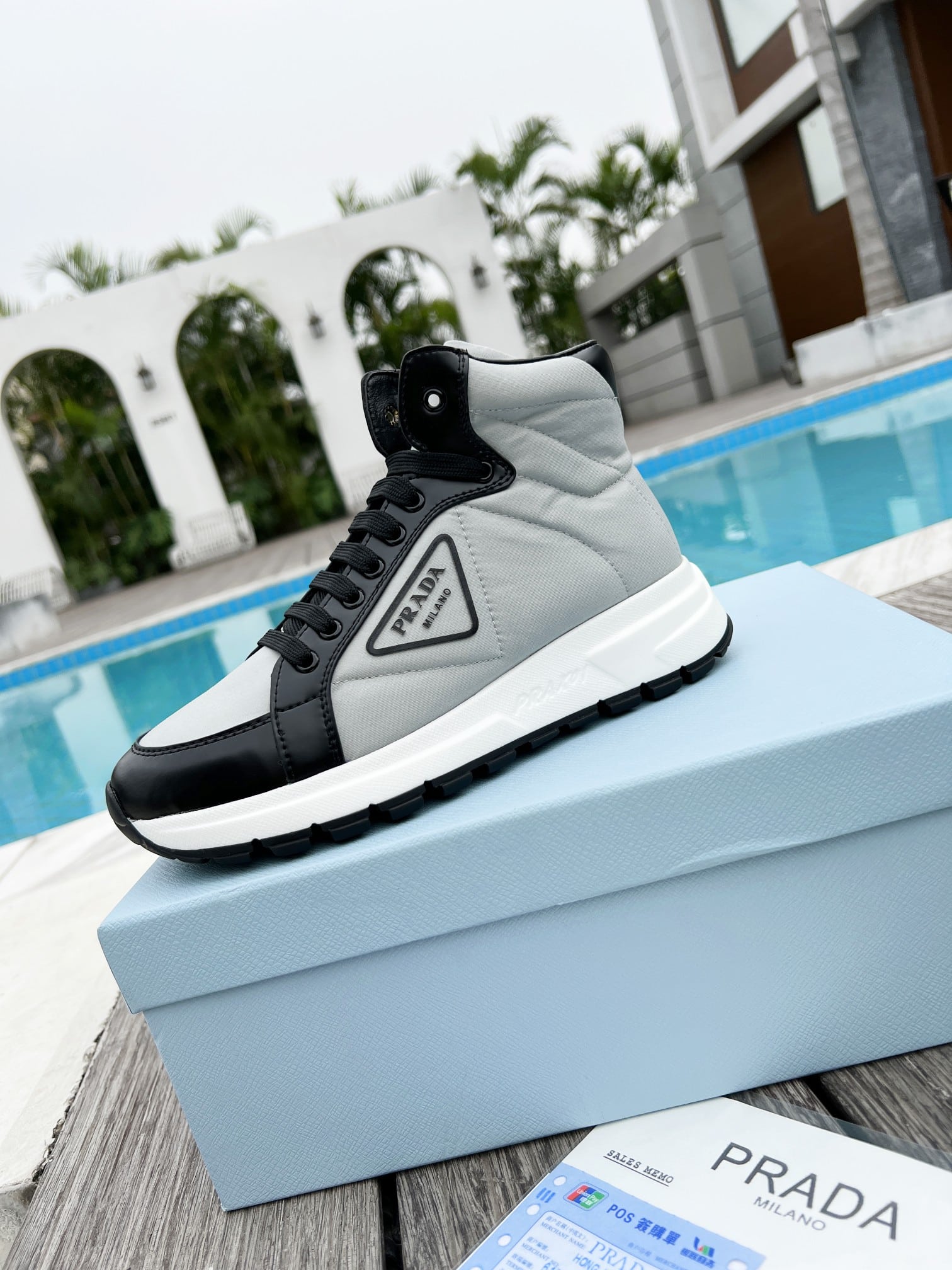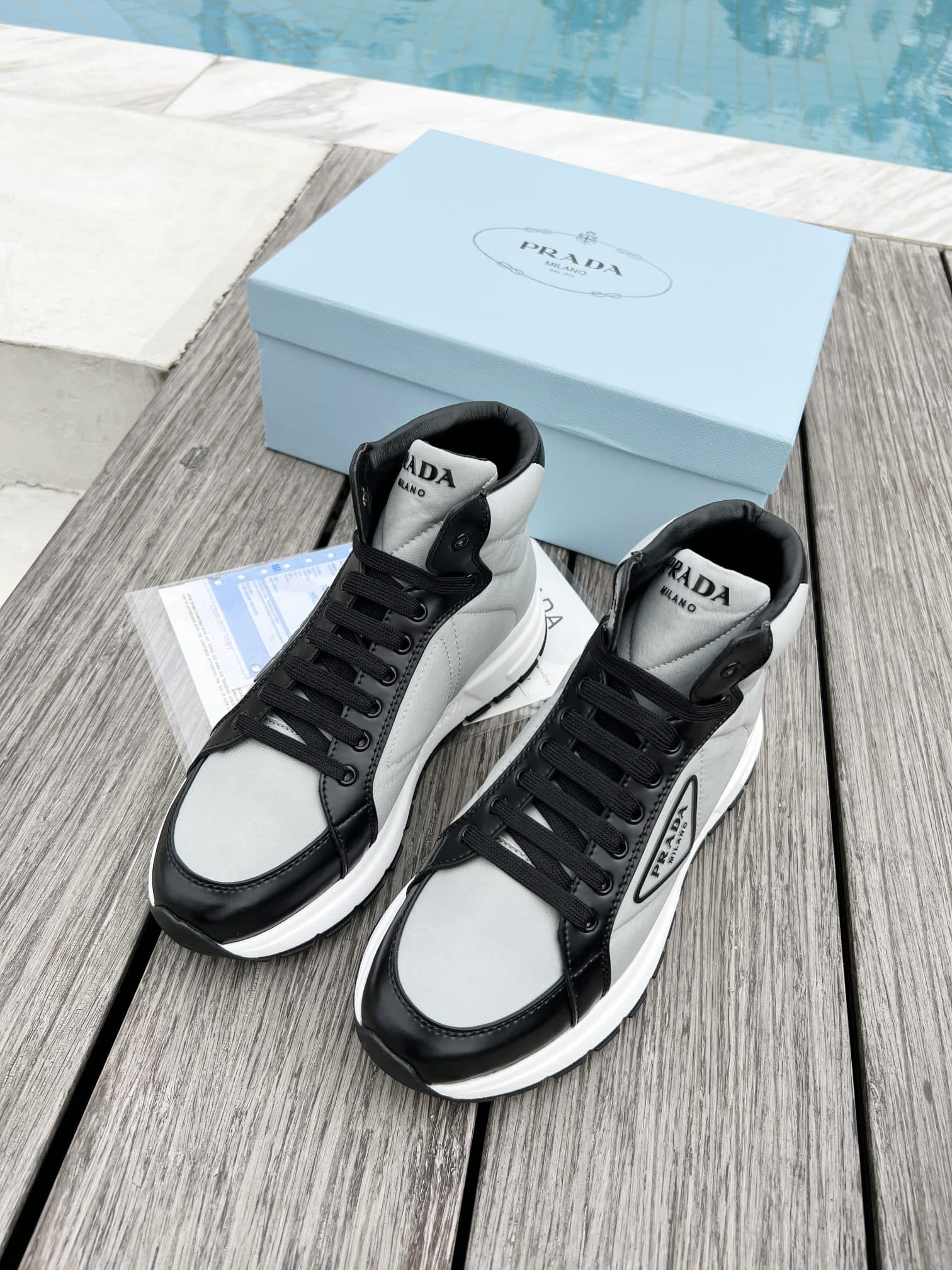 Prada Prax 01 Re Nylon And Brushed Leather Sneakers Grey