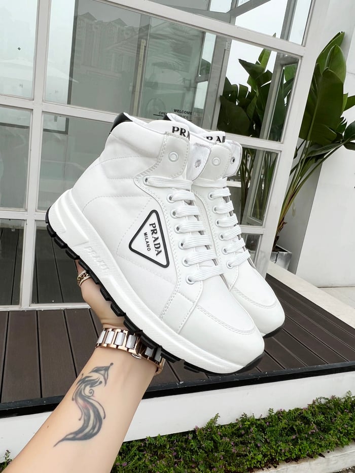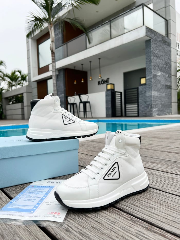 Prada Prax 01 Re Nylon And Brushed Leather Sneakers White