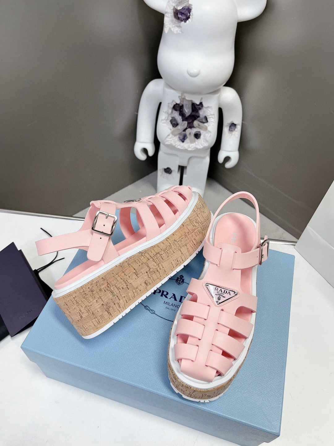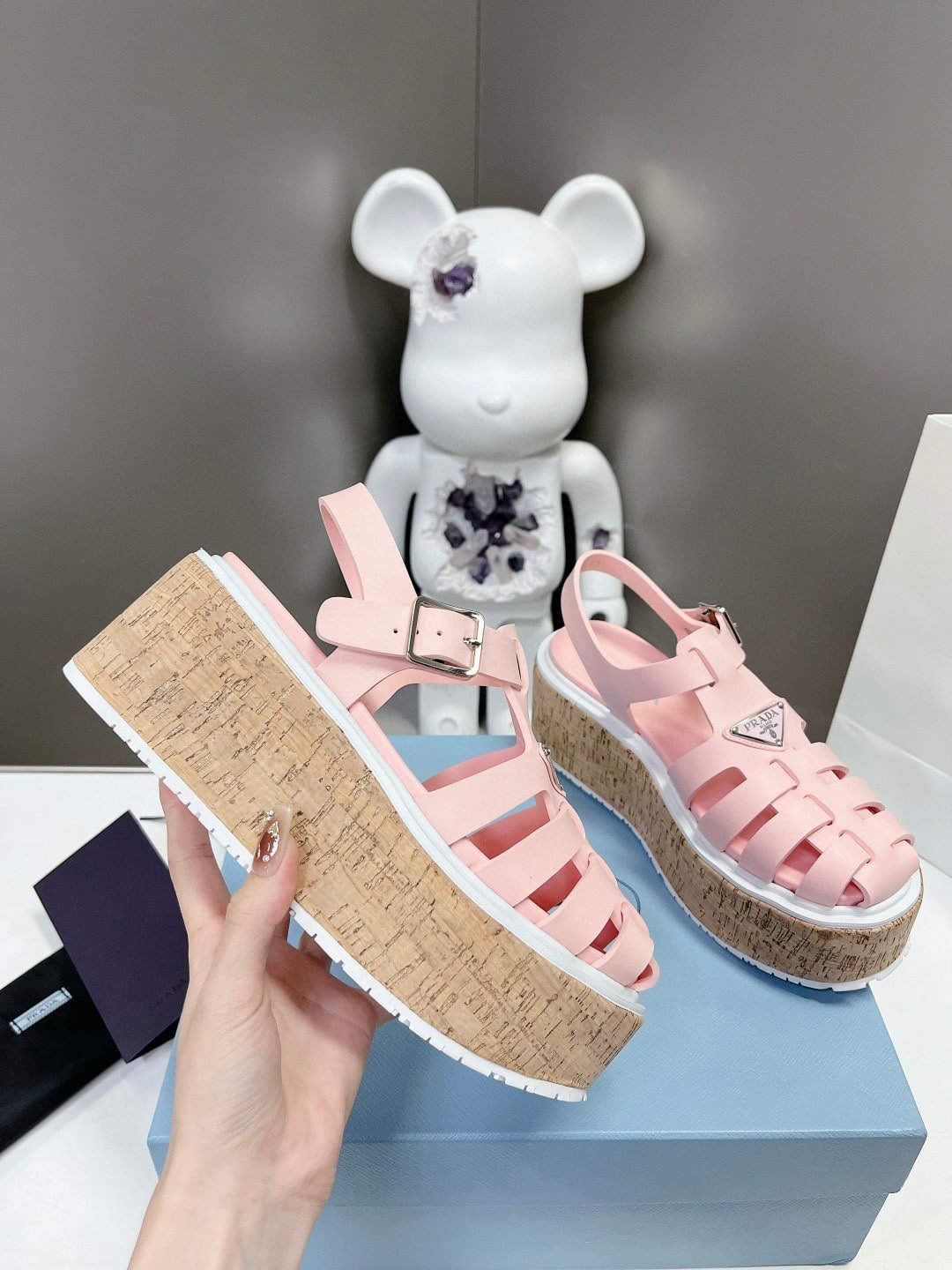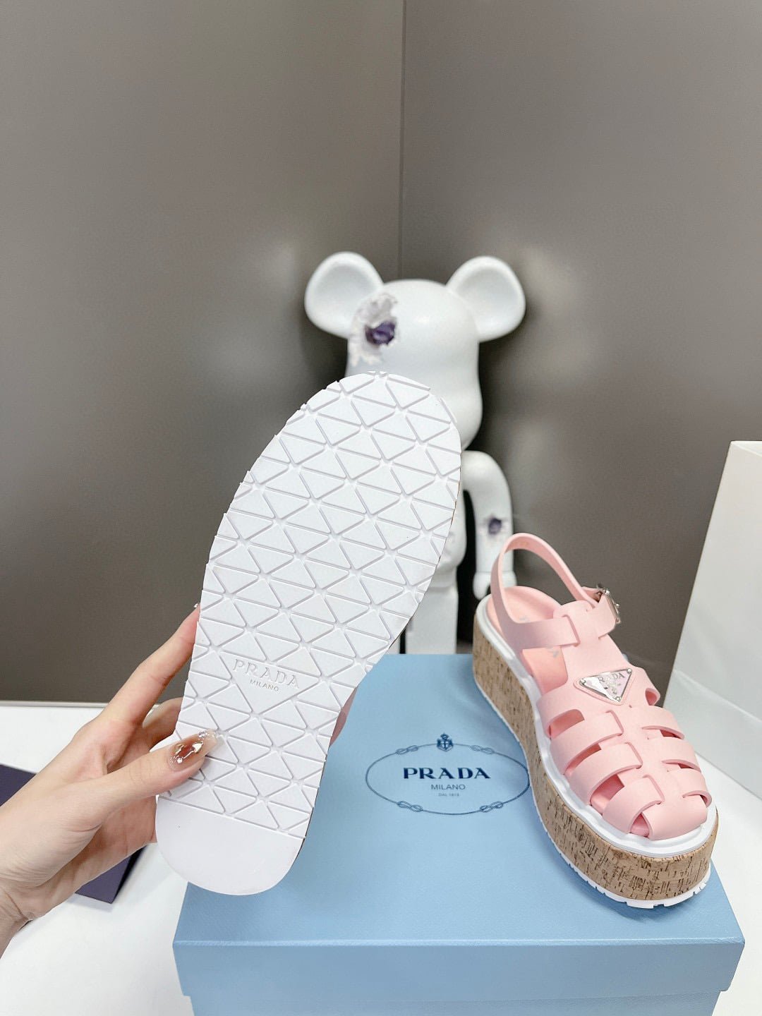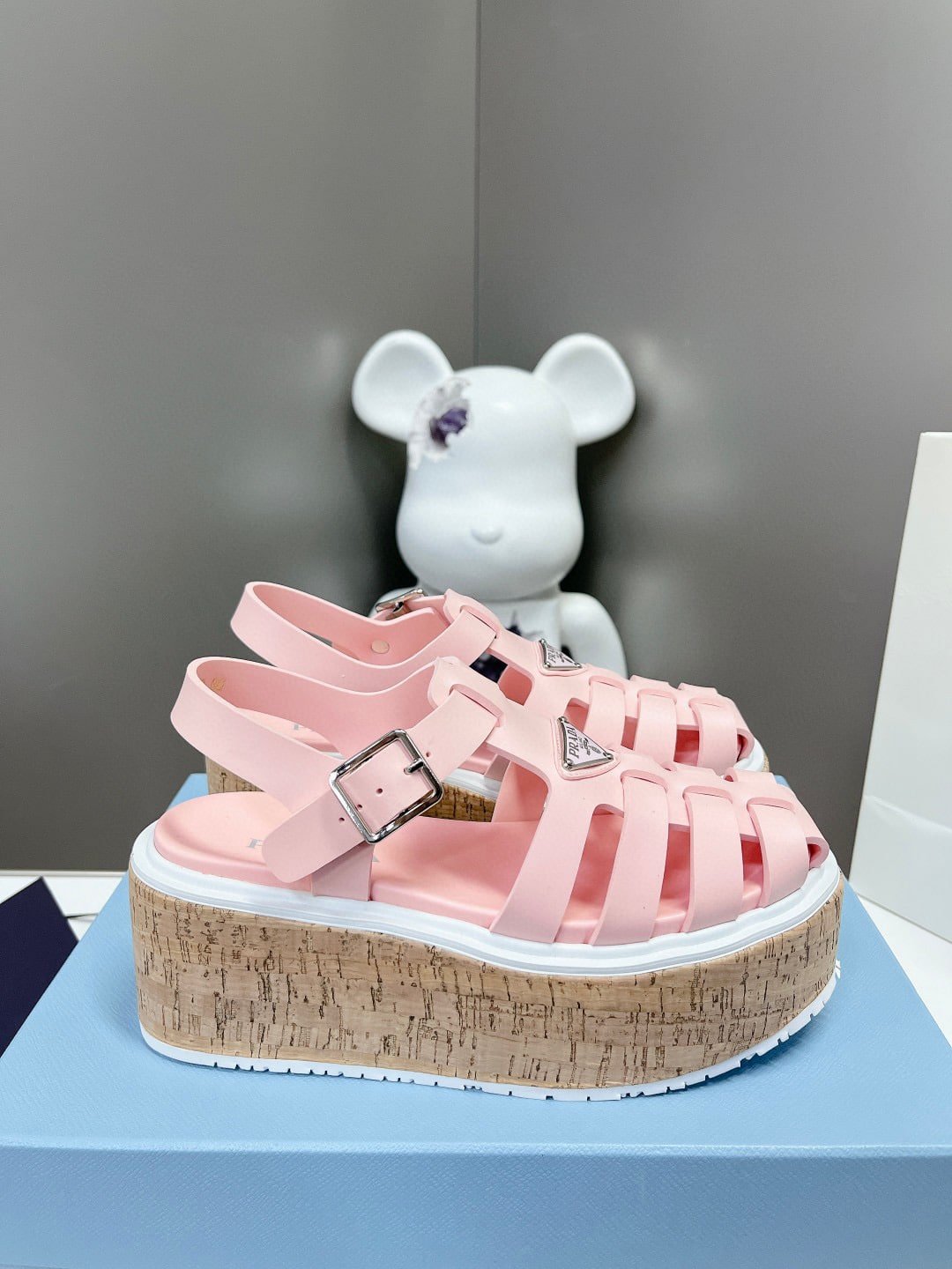 Prada Rubber Wedge Platform Sandals Light Pink
