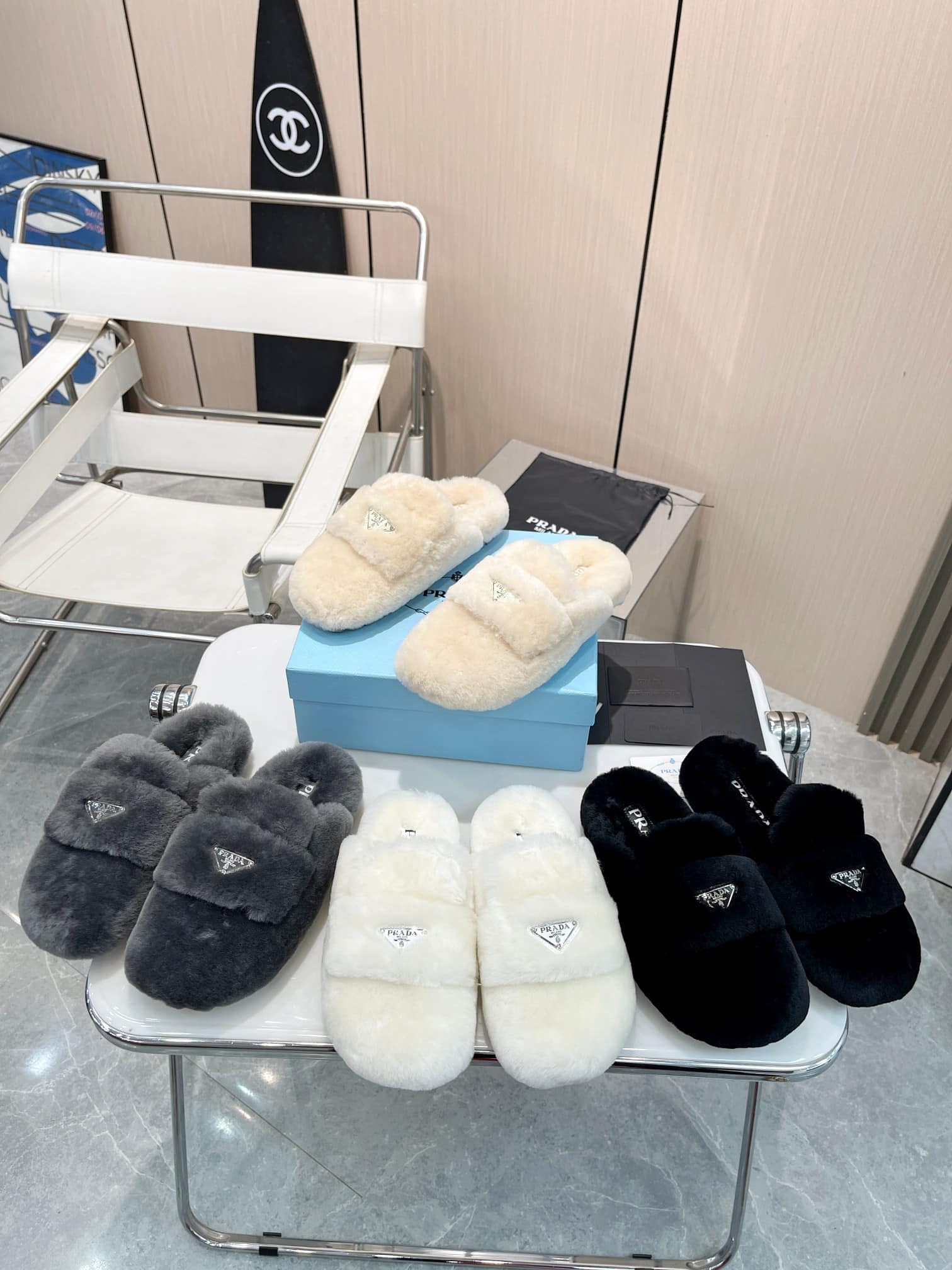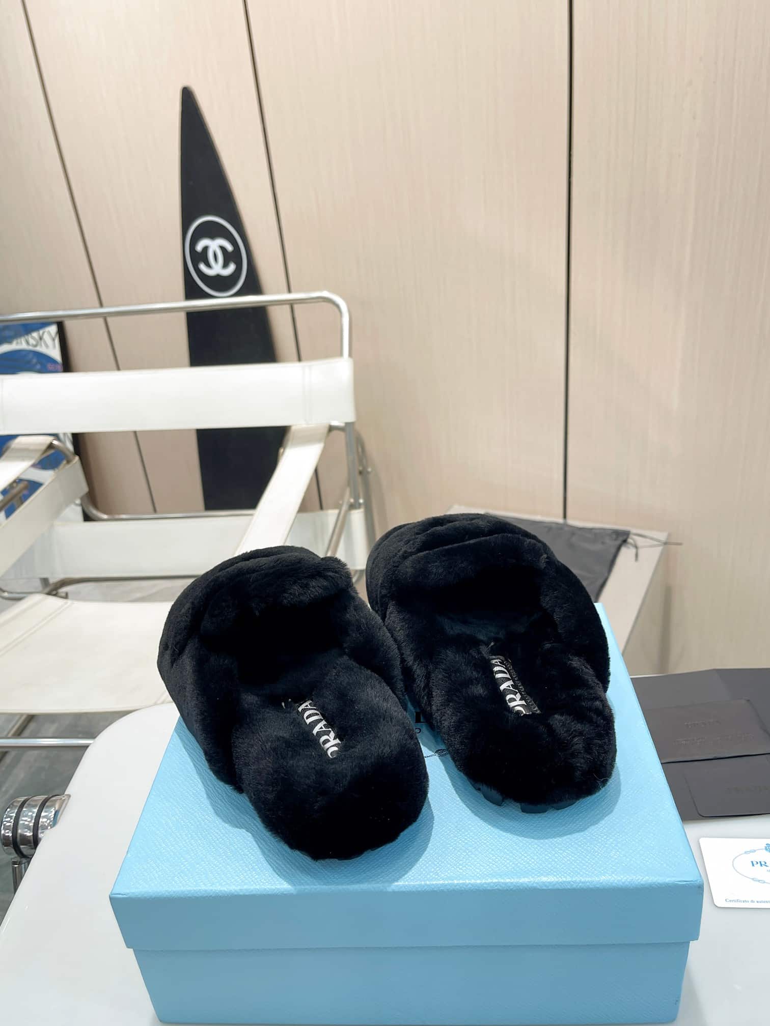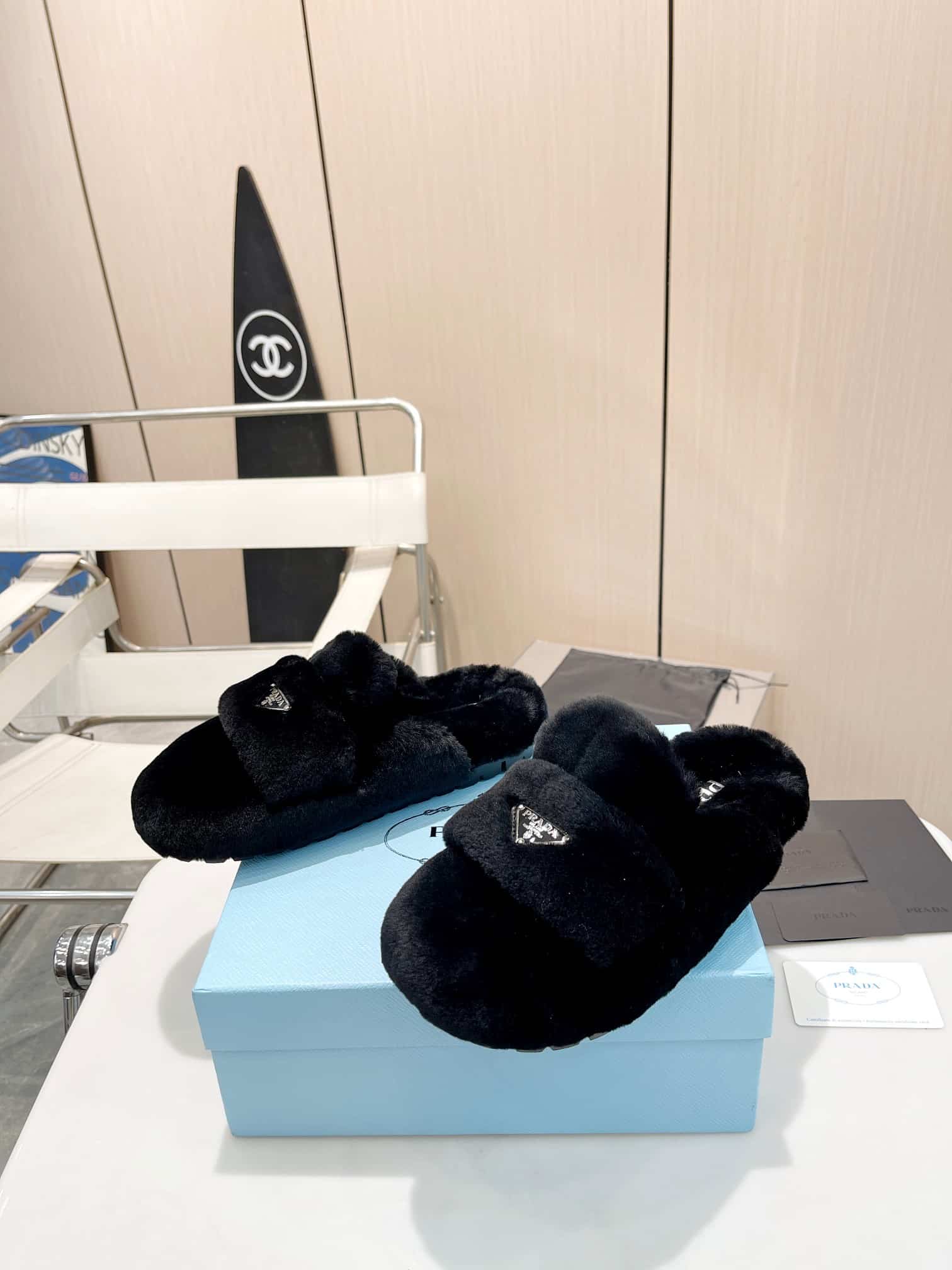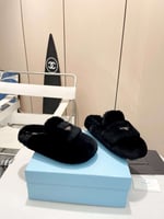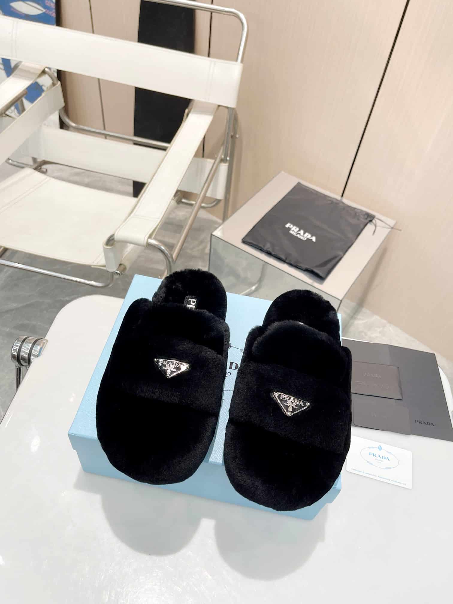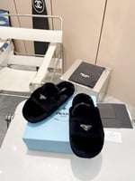 Prada Shearling Sabots Black