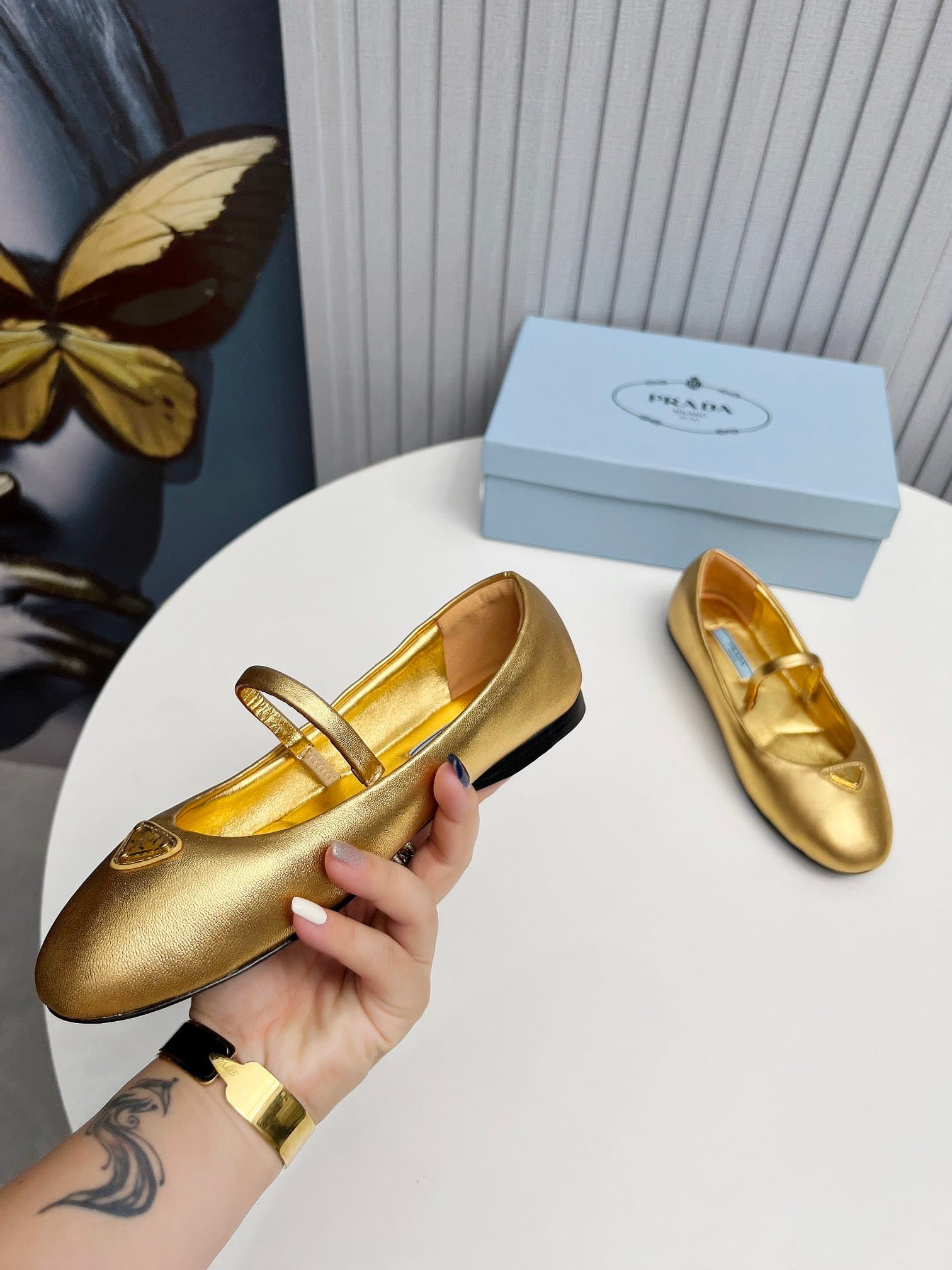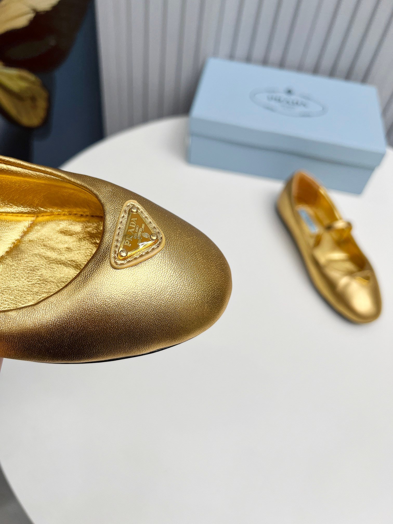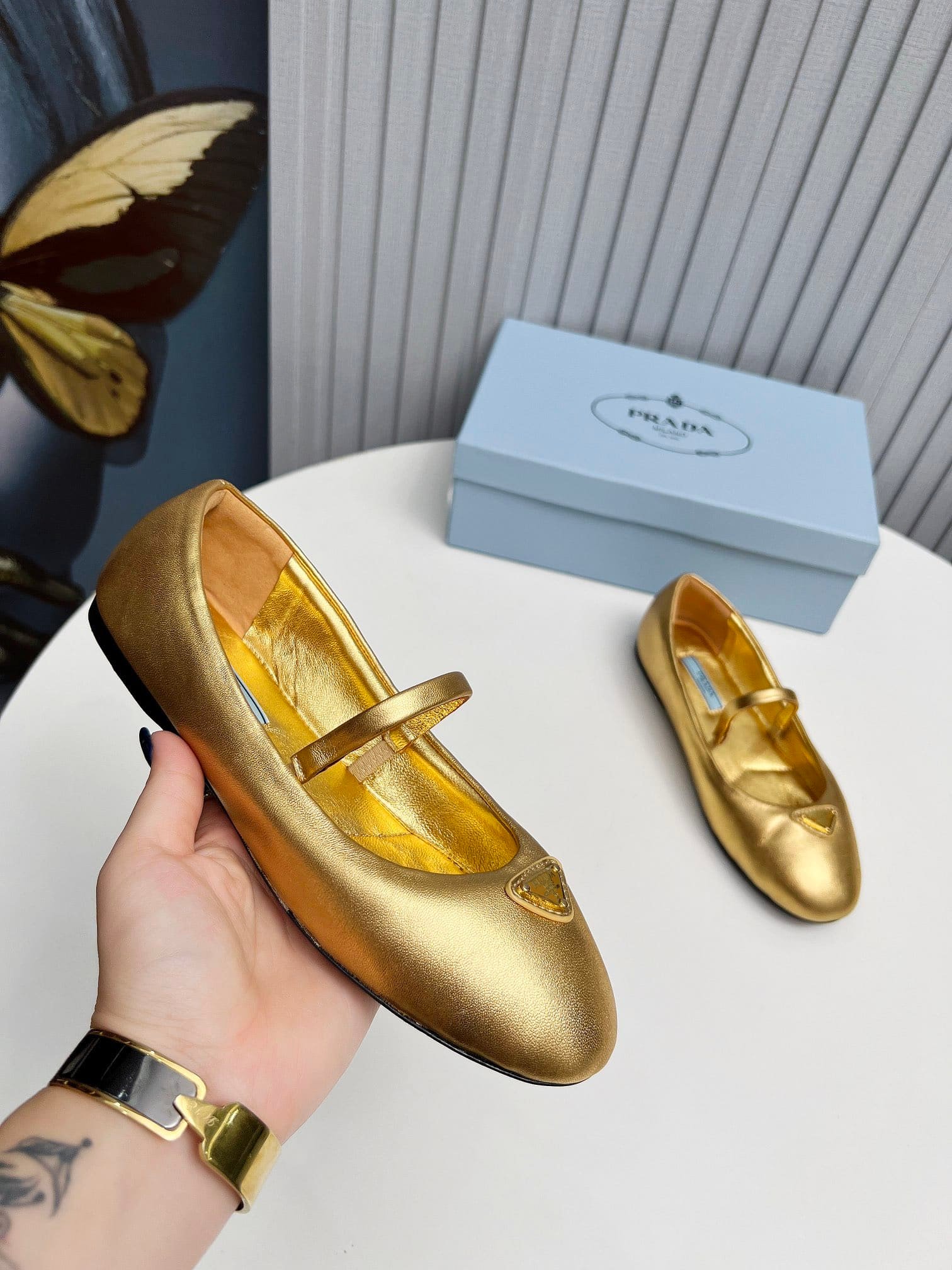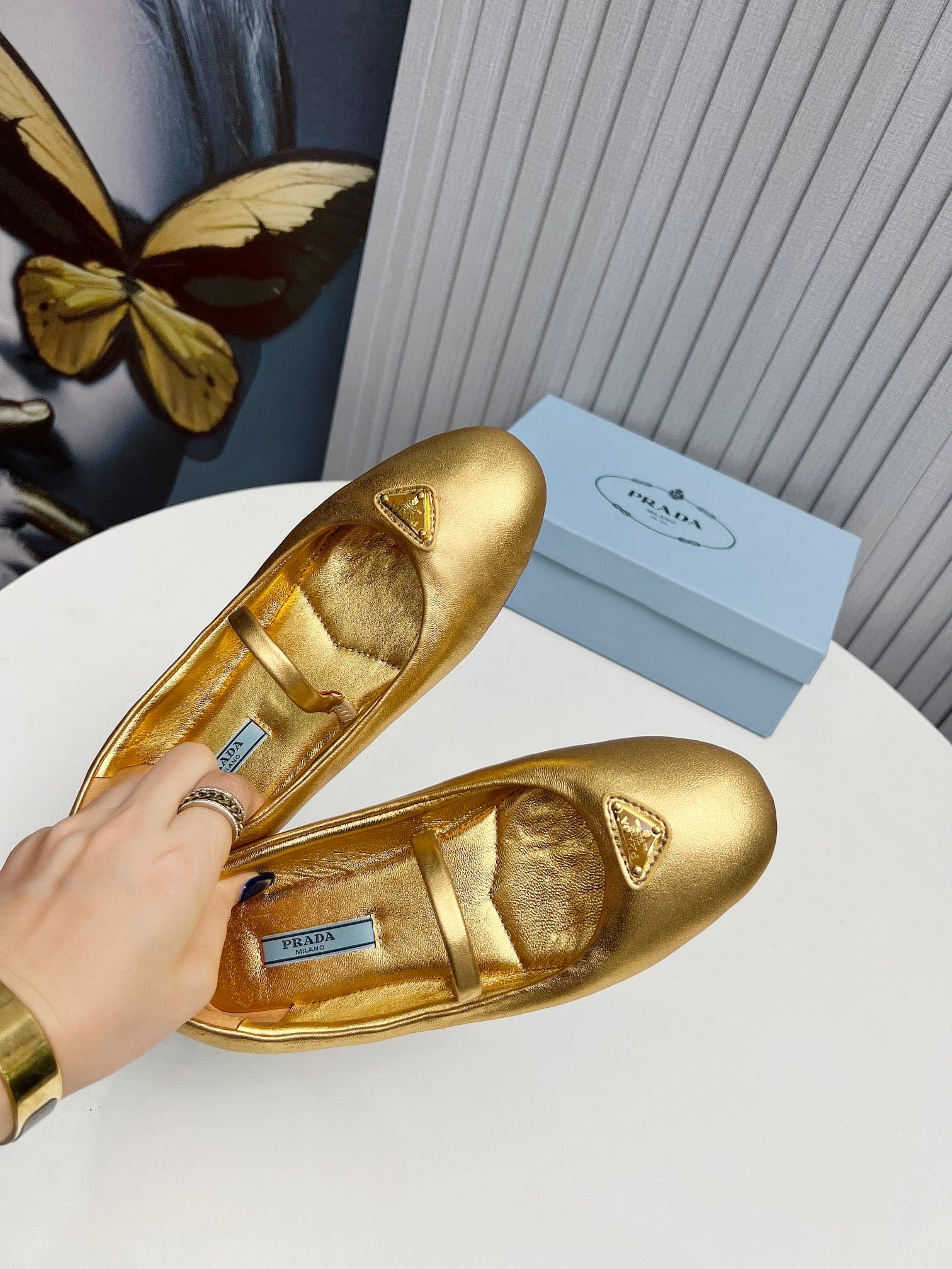 Prada Soft Padded Nappa Leather Ballerinas Gold