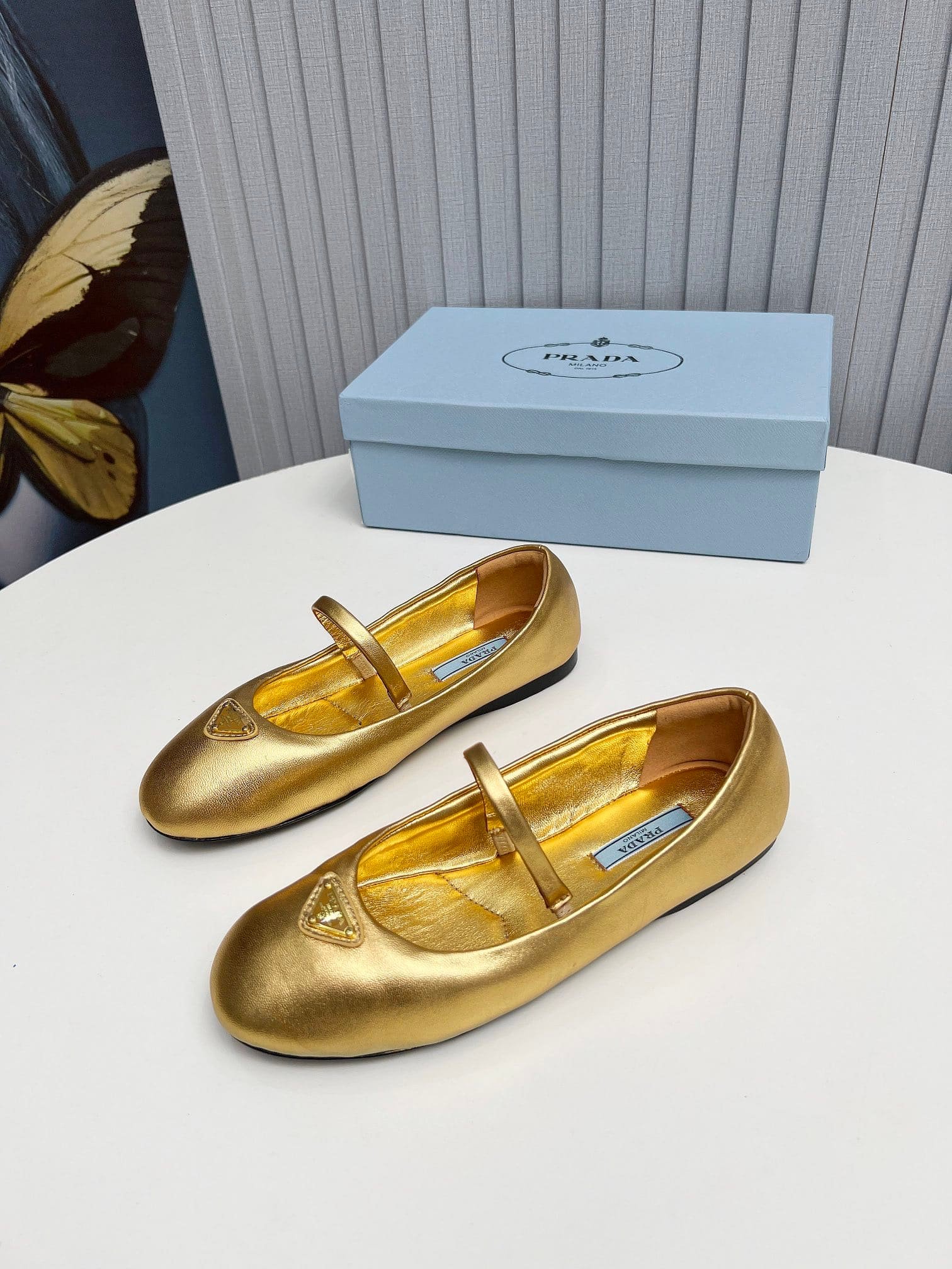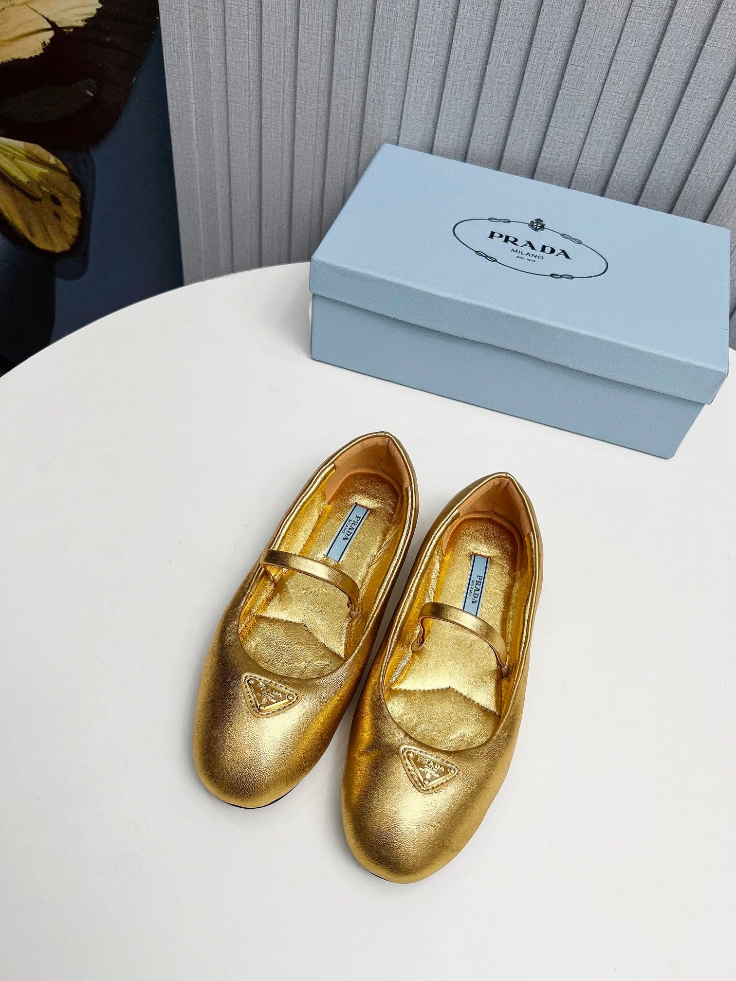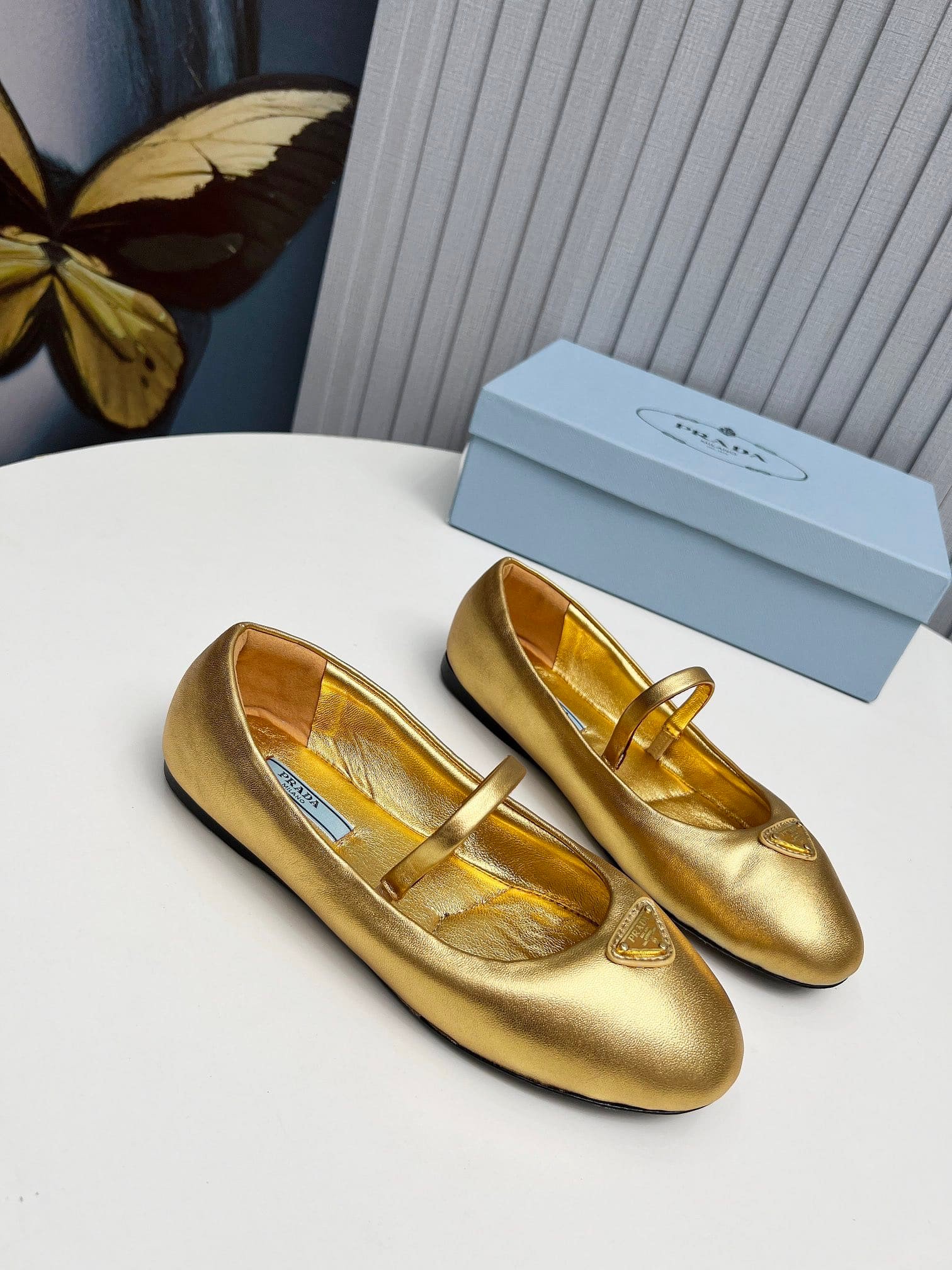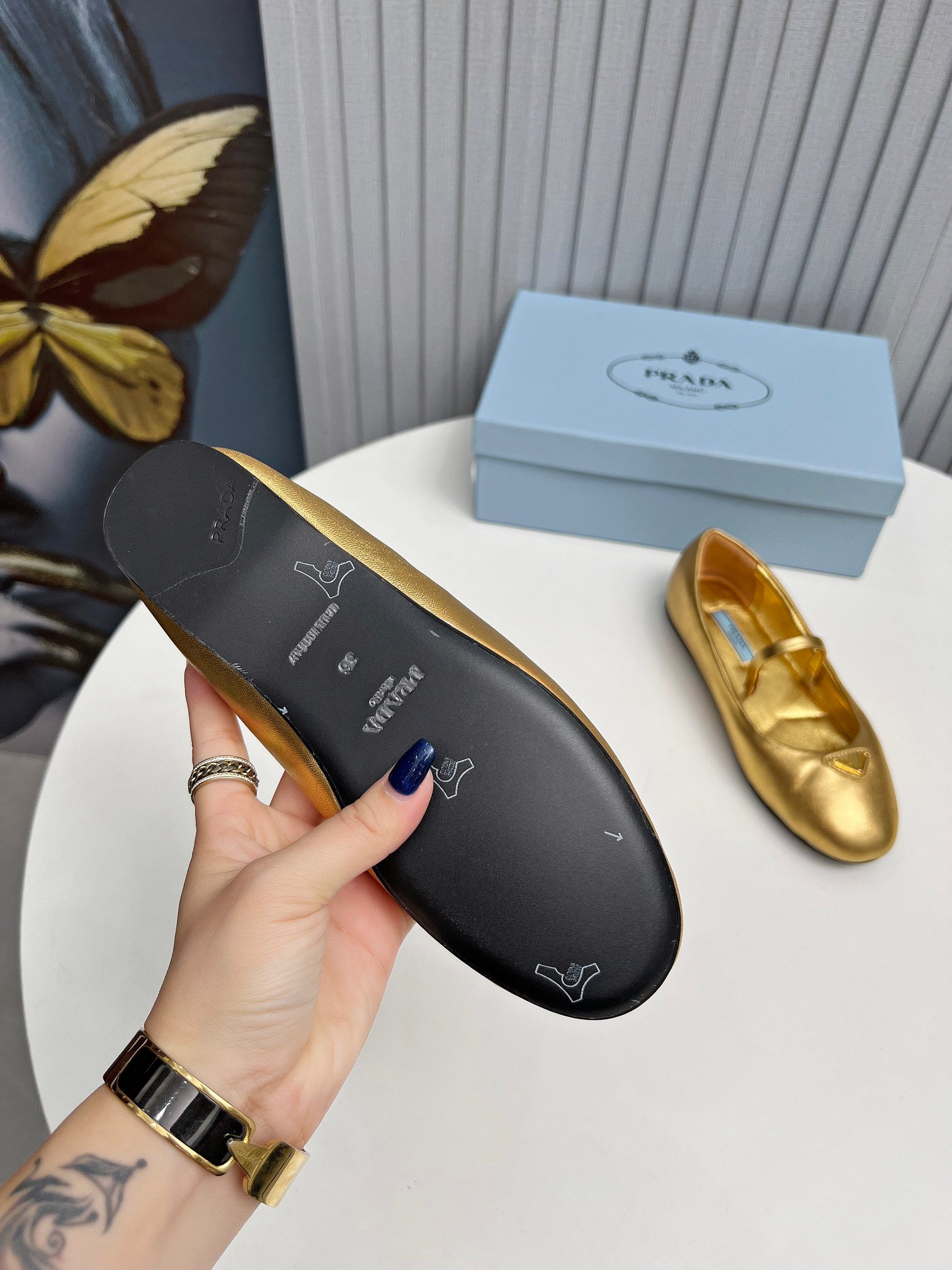 Prada Soft Padded Nappa Leather Ballerinas Gold