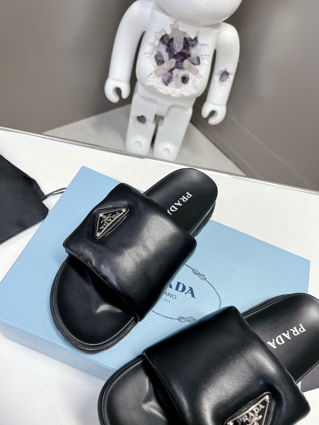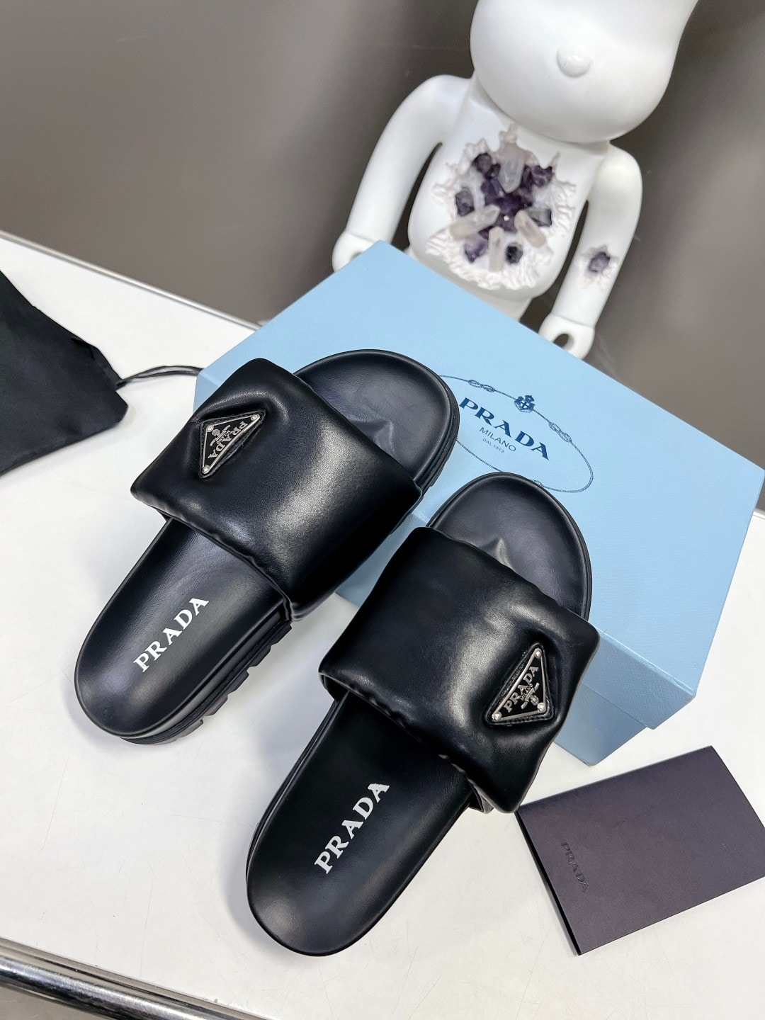 Prada Soft Padded Nappa Leather Slides Black 1Xx6482Dl8F0002F020