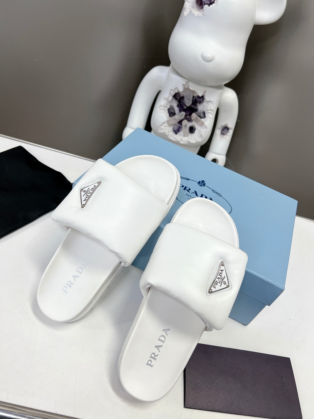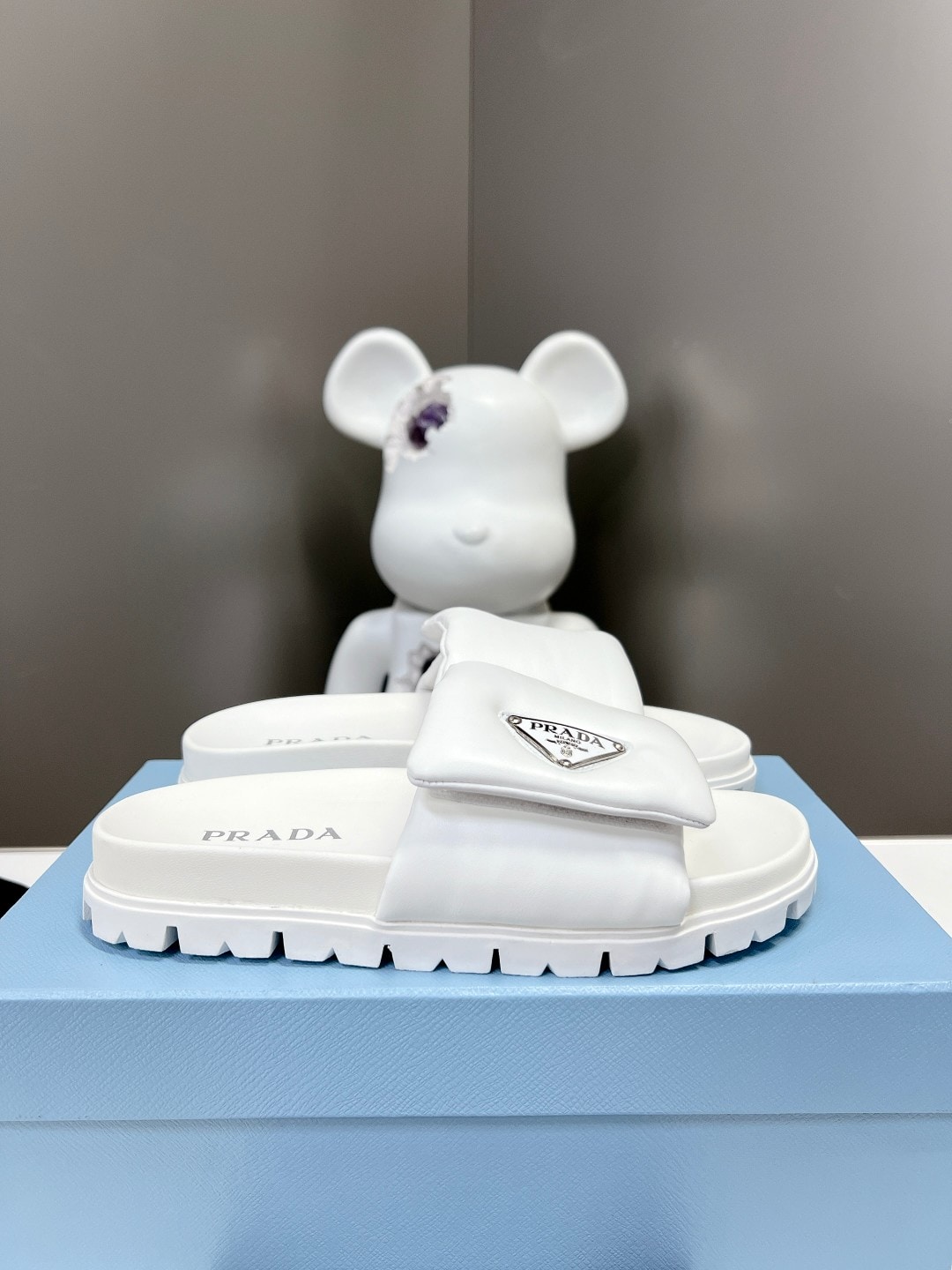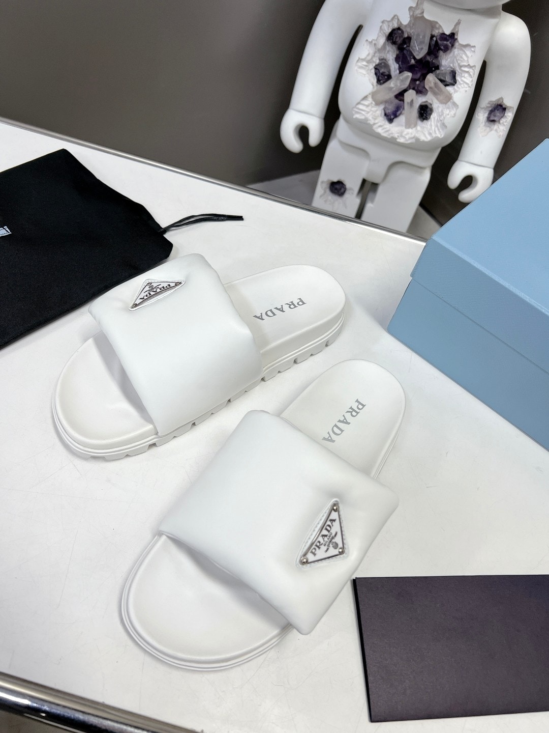 Prada Soft Padded Nappa Leather Slides White 1Xx6482Dl8F0009F020