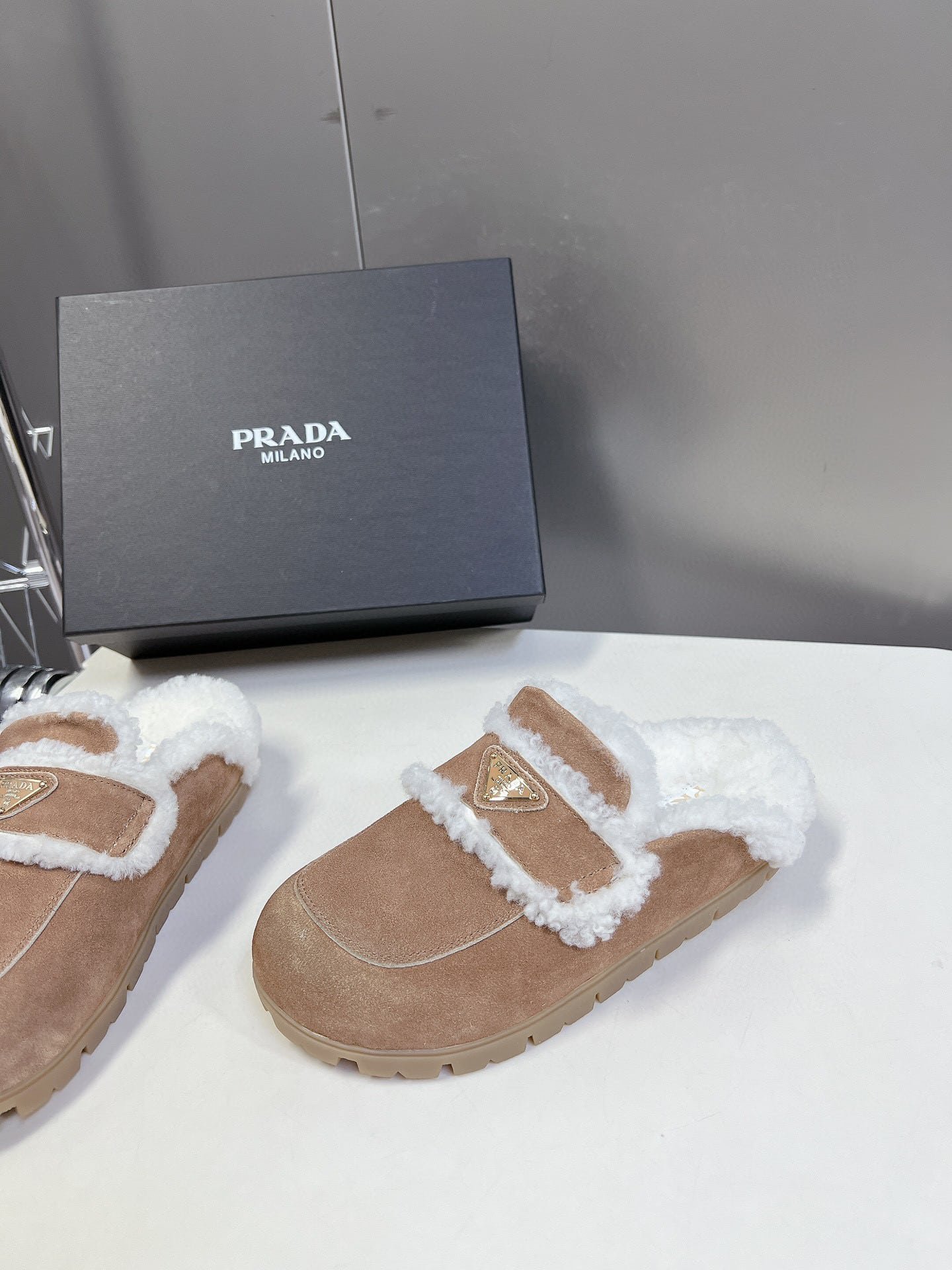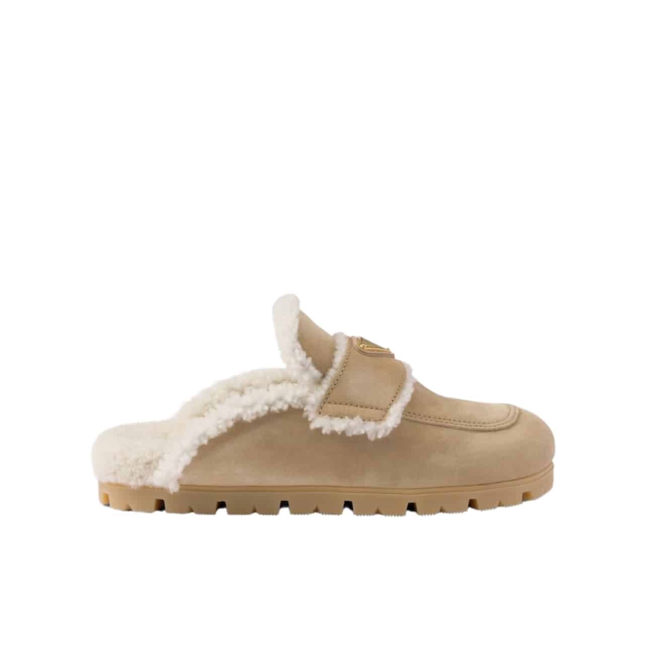 Prada Suede And Shearling Slippers Ecru 1S711M X0O F0379 F Zg20