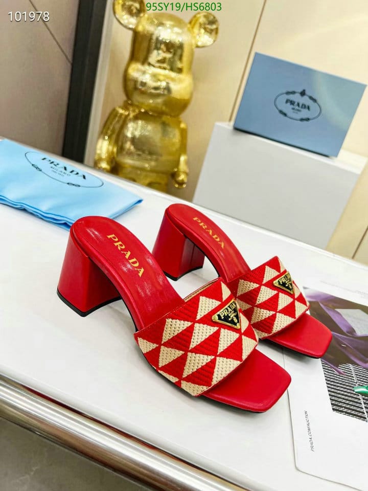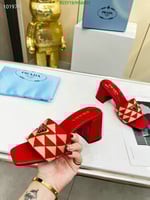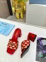 Prada Triangolo Jacquard Mules Red