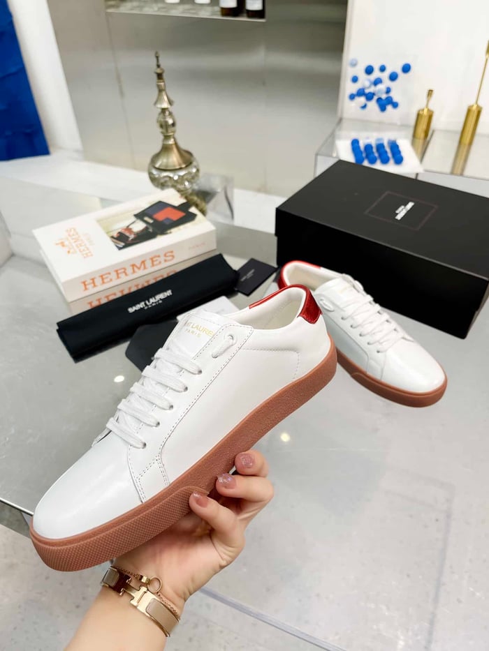 Saint Laurent Court Classic Embroidered Sneakers White And Red