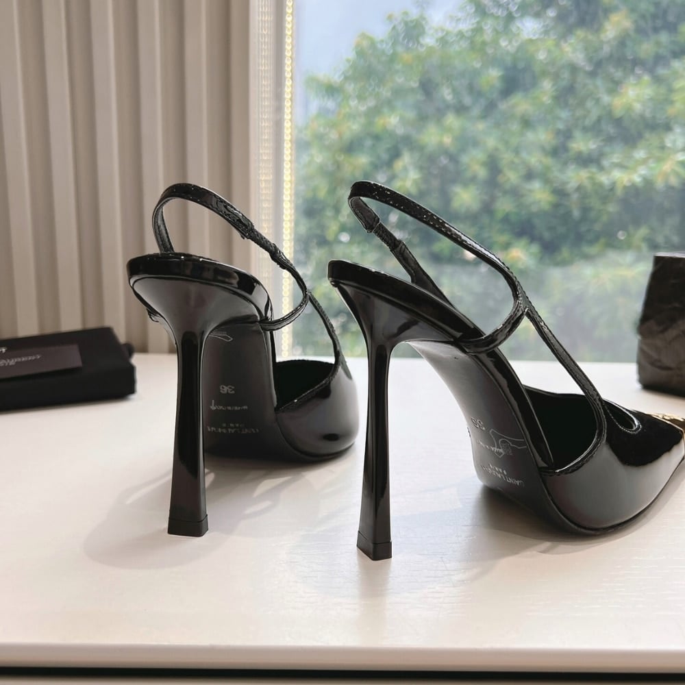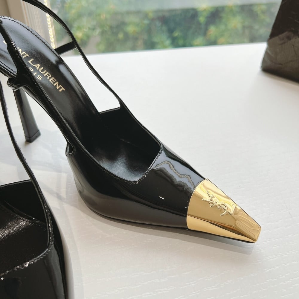 Saint Laurent Jeanne Slingback Pumps Black And Gold 800164Aadx21000