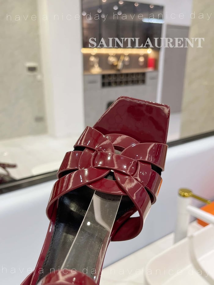 Saint Laurent Tribute Platform Sandals In Patent Leather Black