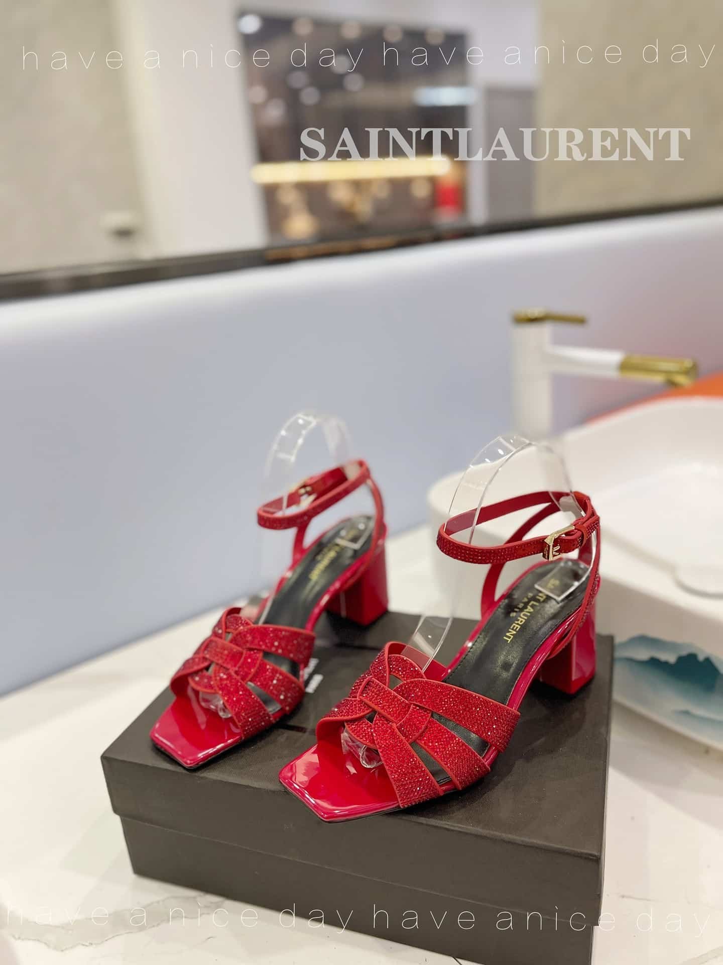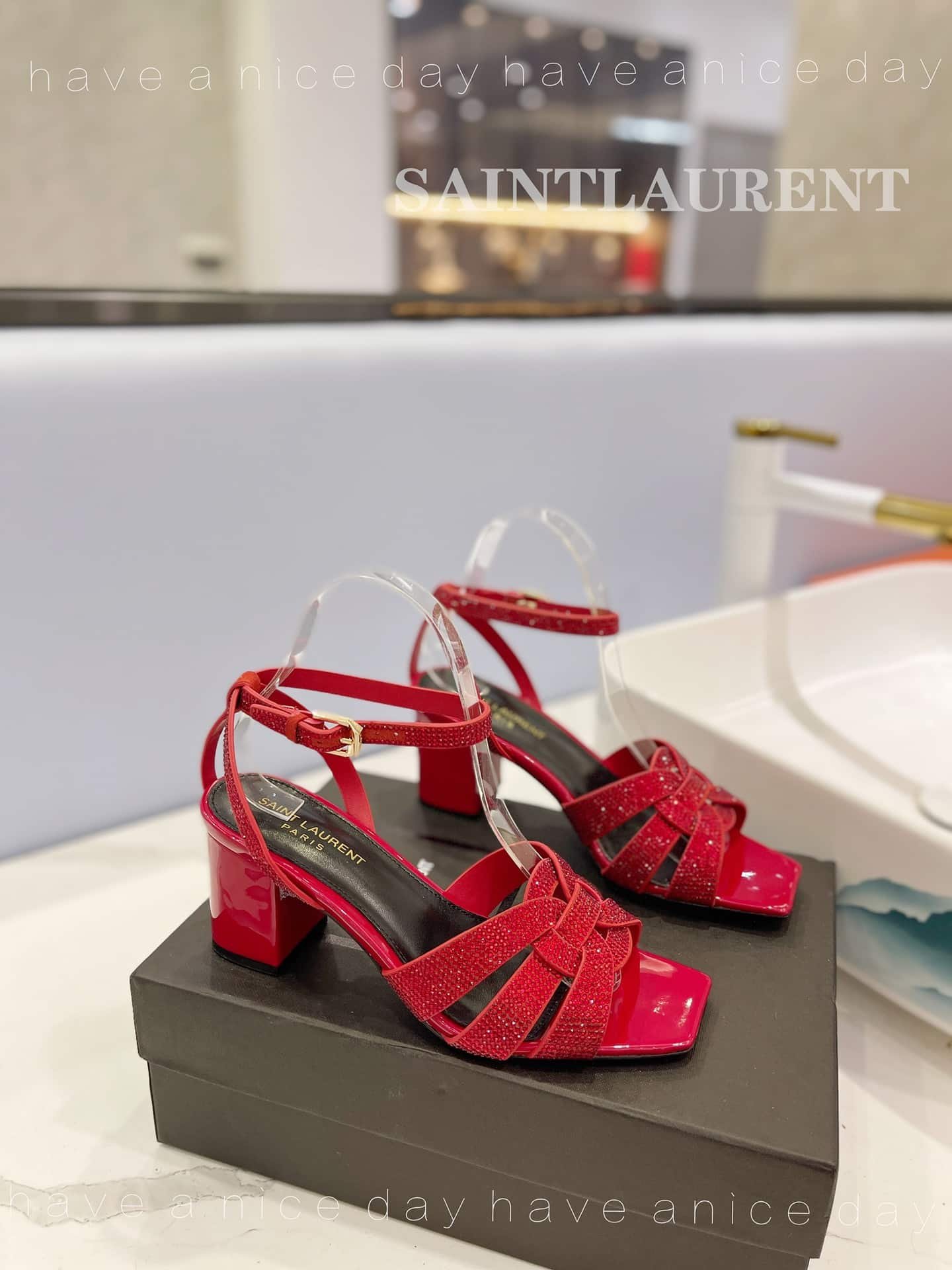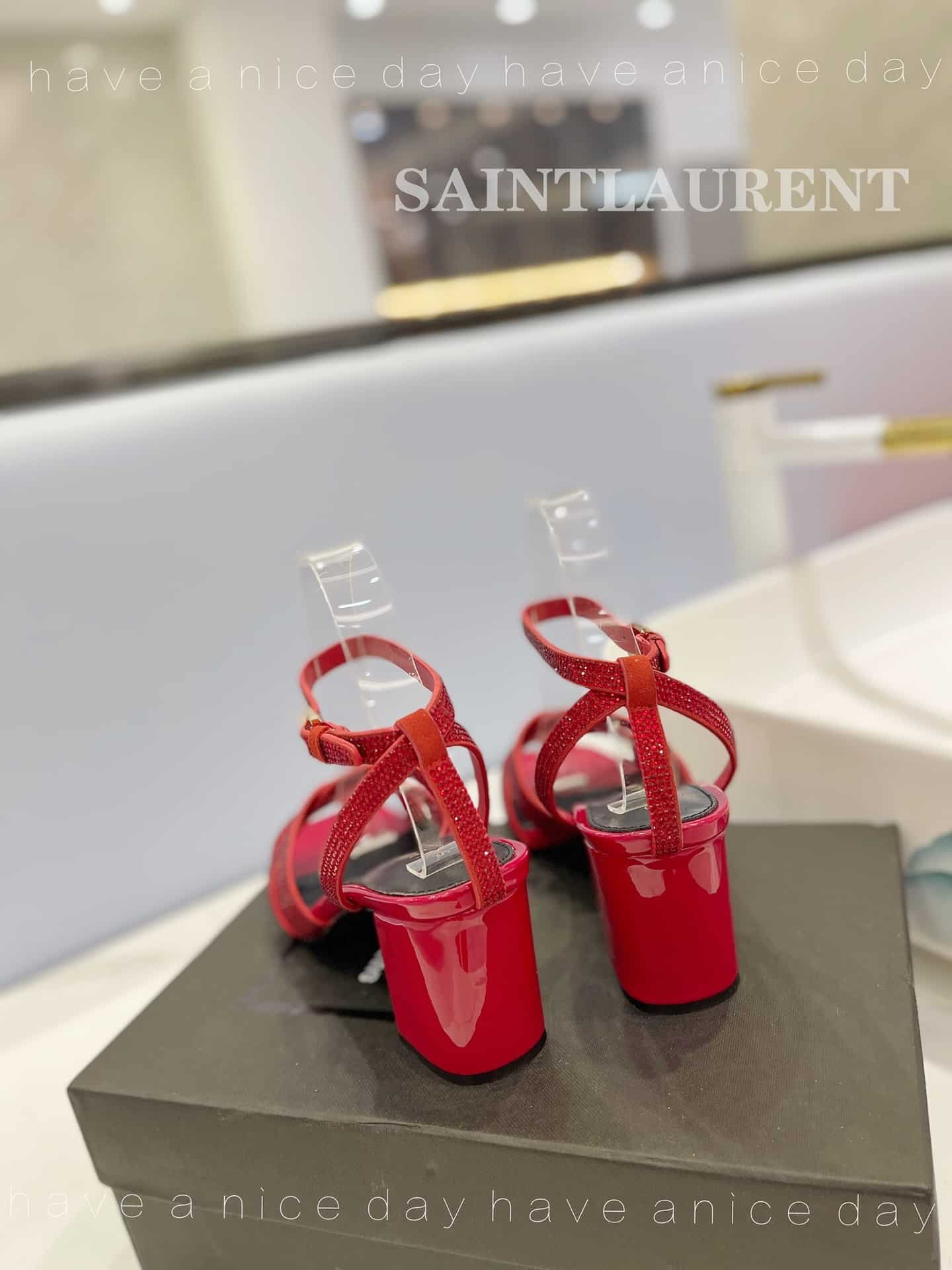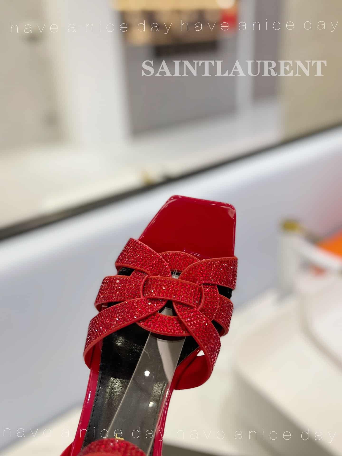 Saint Laurent Tribute Leather Sandals Metallic Red