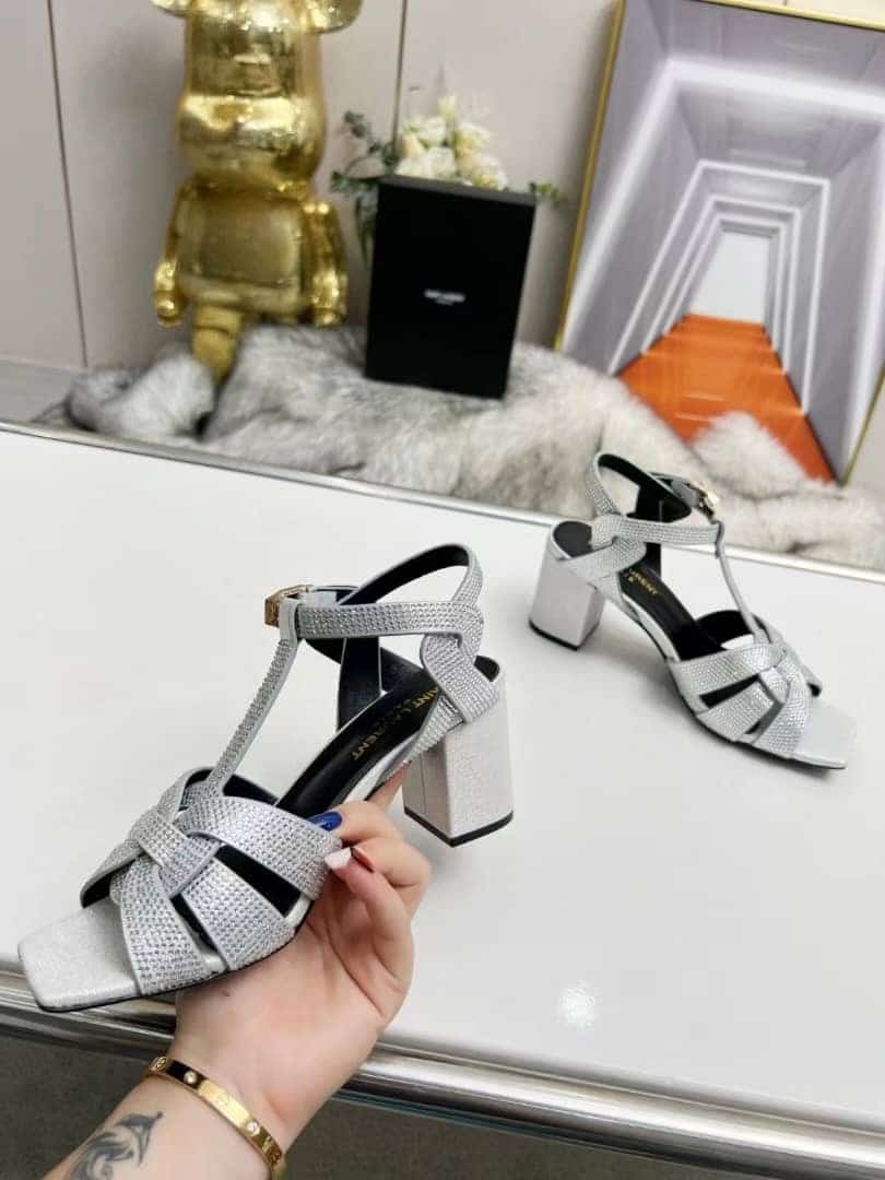 Saint Laurent Tribute Leather Sandals Metallic Silver