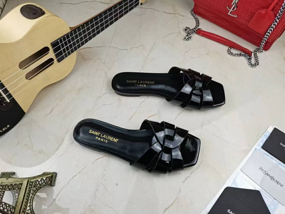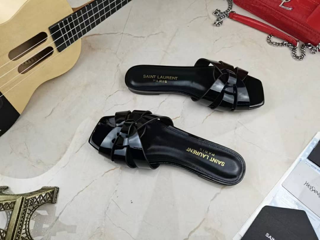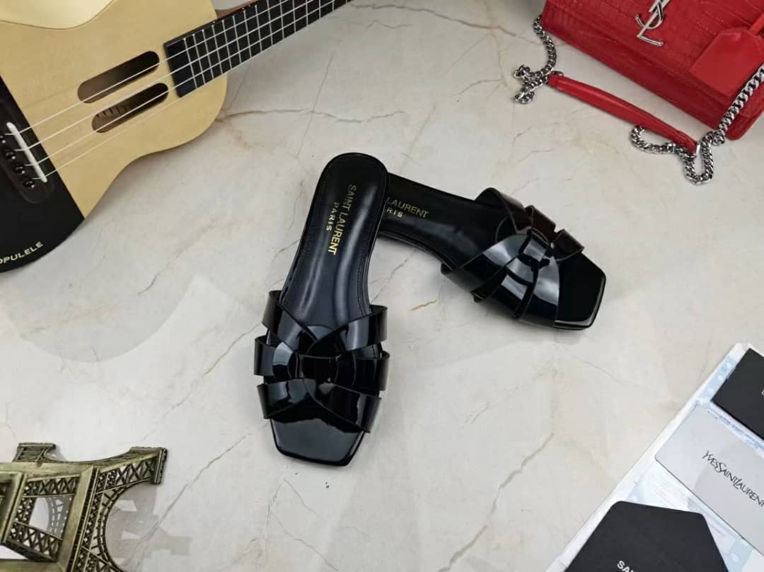 Saint Laurent Tribute Mules In Patent Leather Black 571952B8I001000