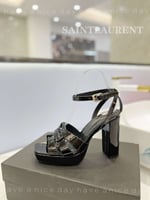 Saint Laurent Tribute Platform Sandals In Patent Leather Black