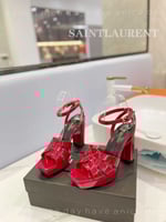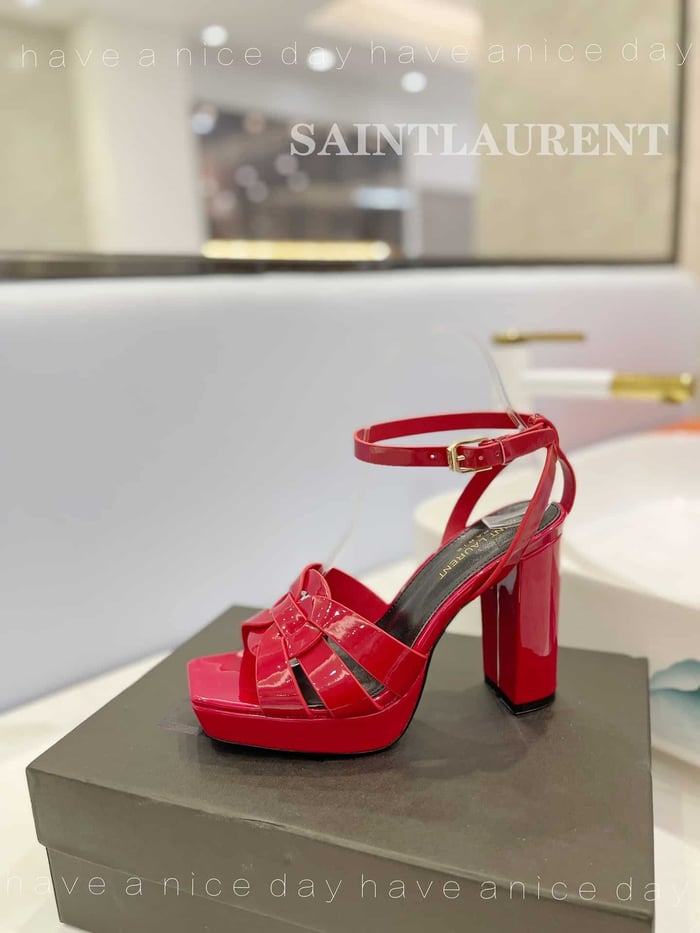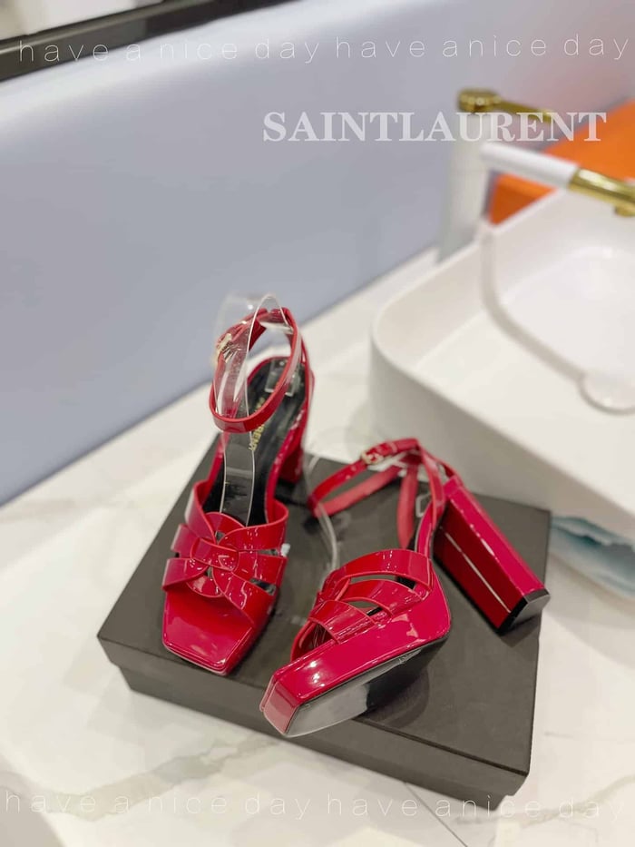 Saint Laurent Tribute Platform Sandals In Patent Leather Red