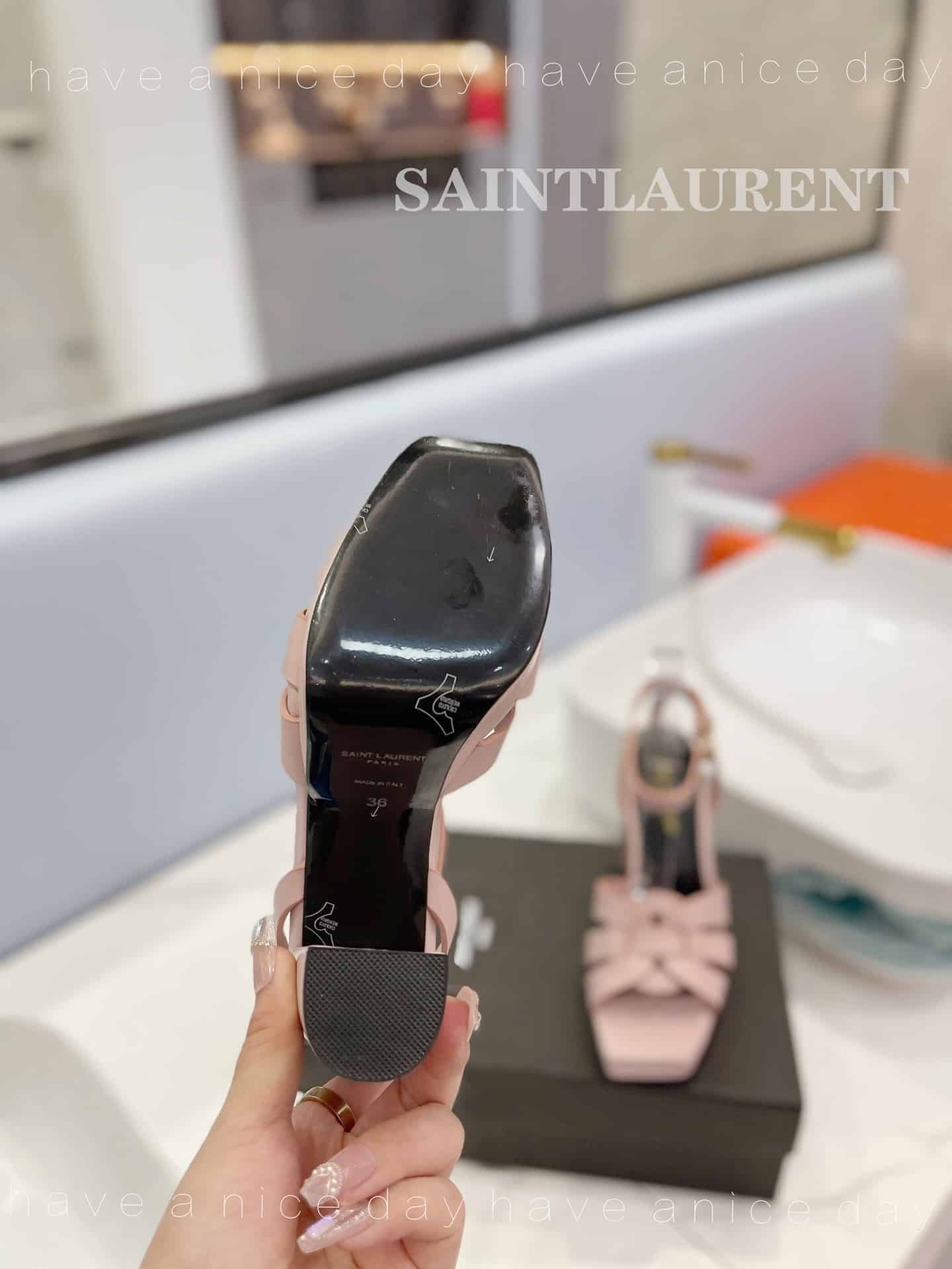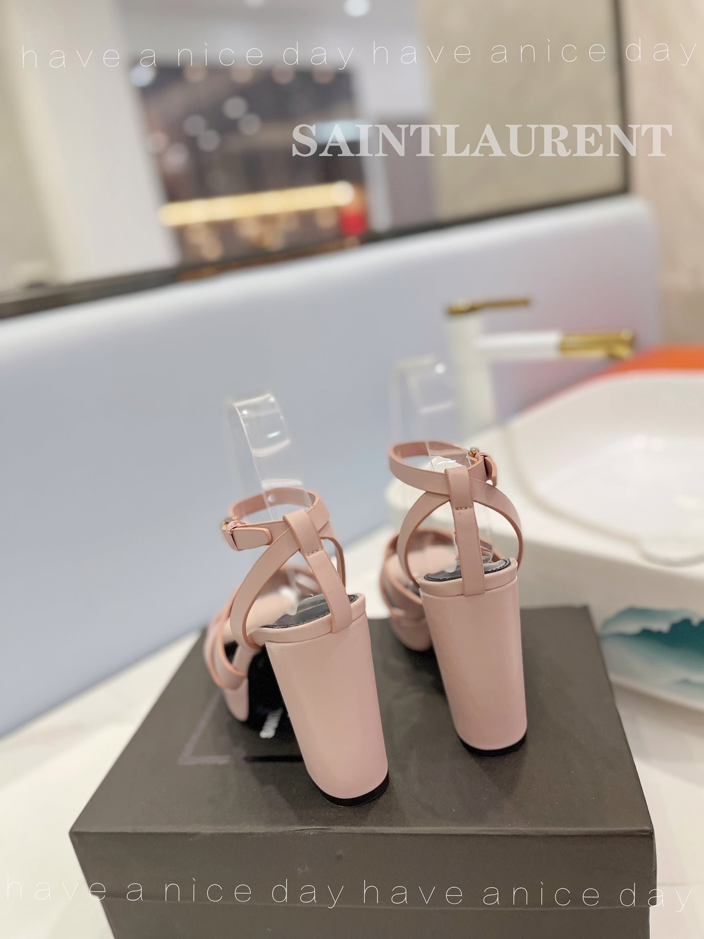 Saint Laurent Tribute Platform Sandals In Smooth Leather Pink