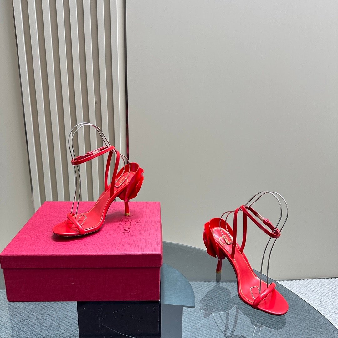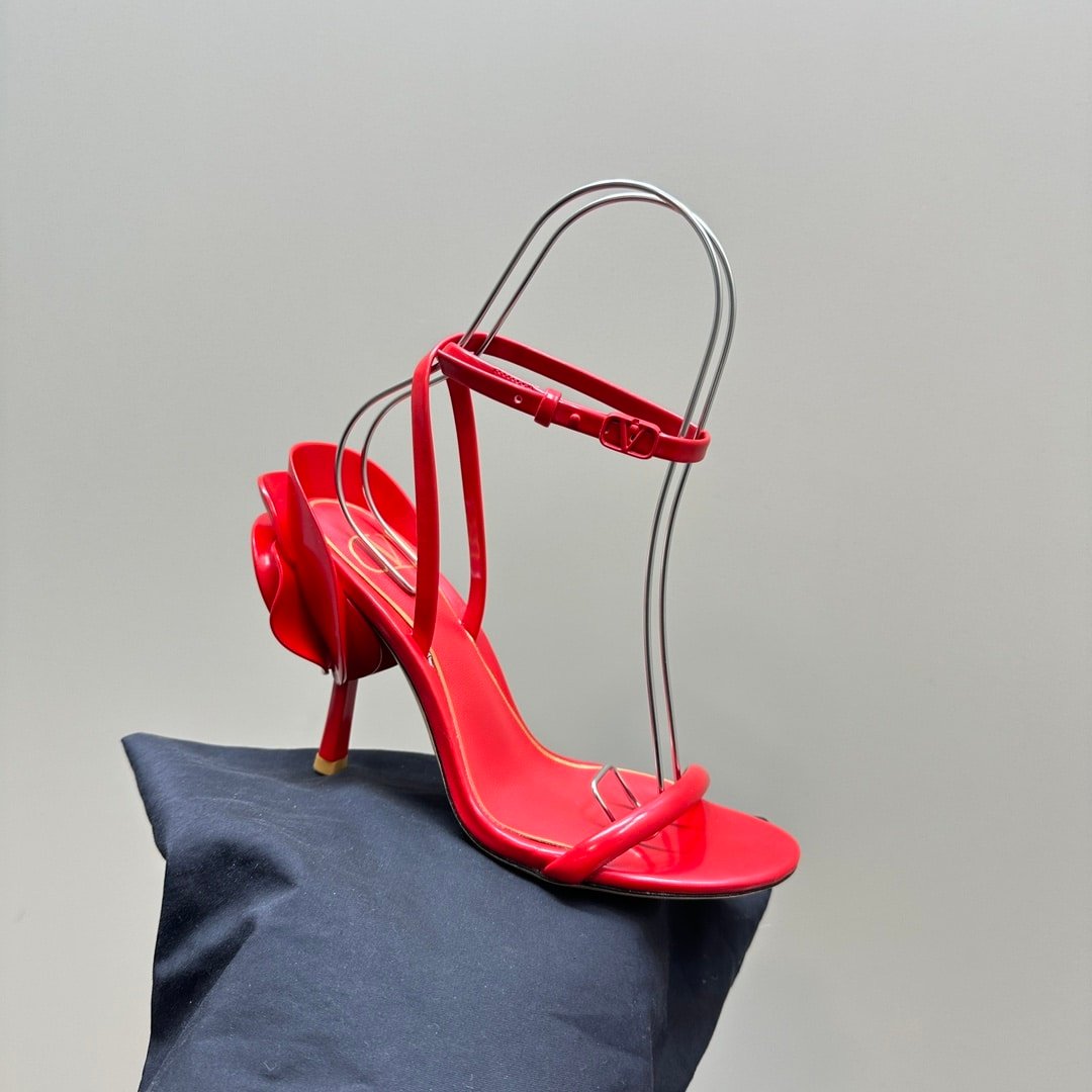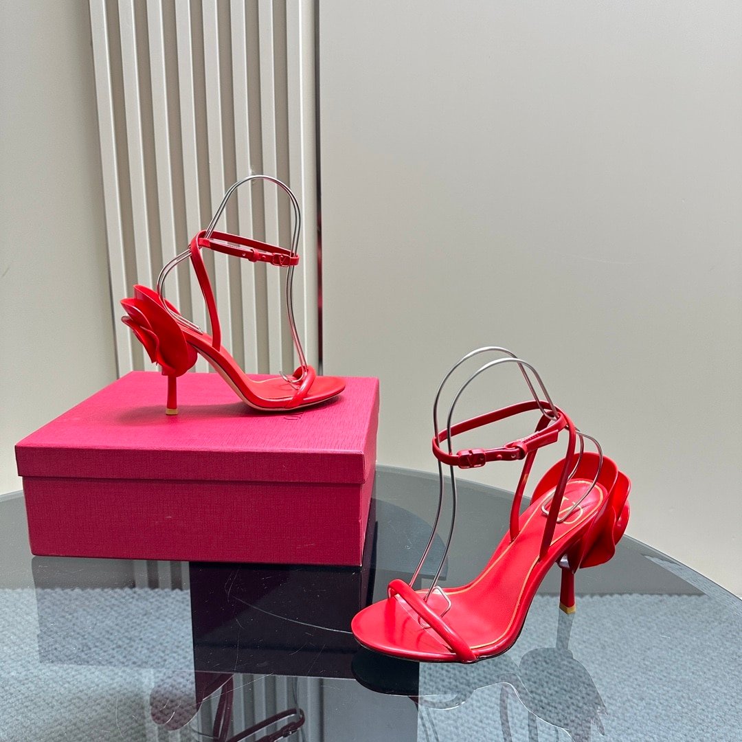Valentino Garavani Archive Roserouche Leather High Heel In Red