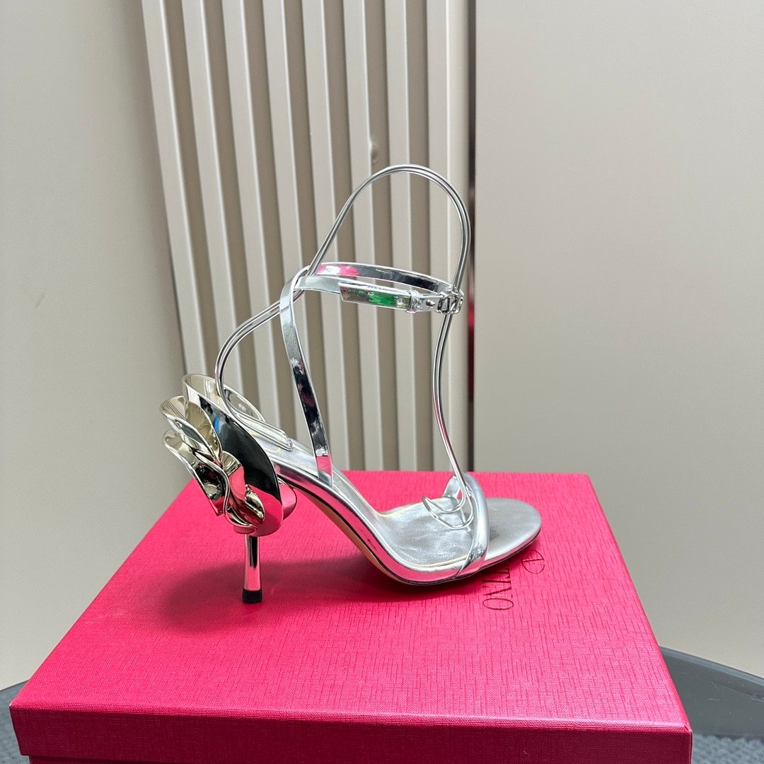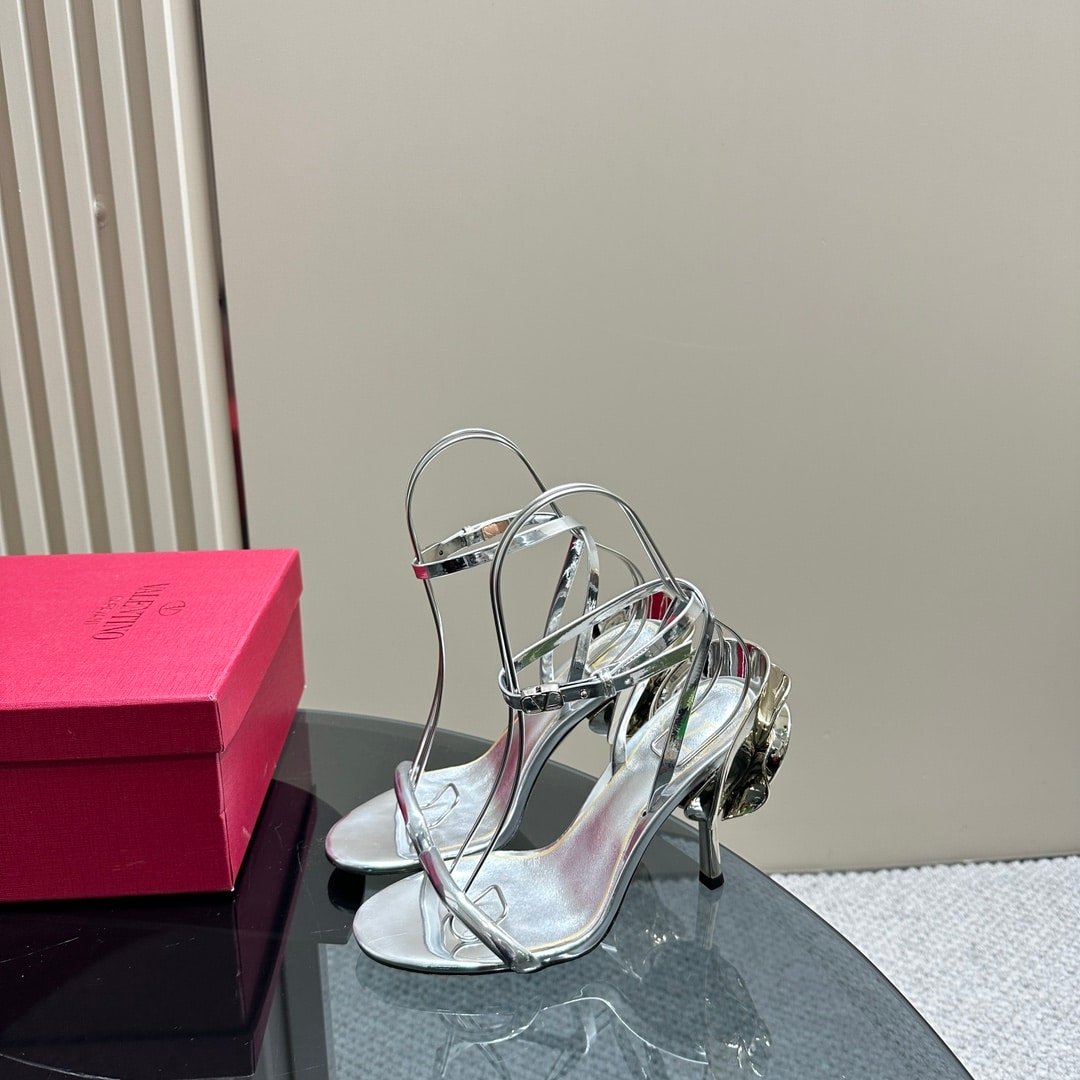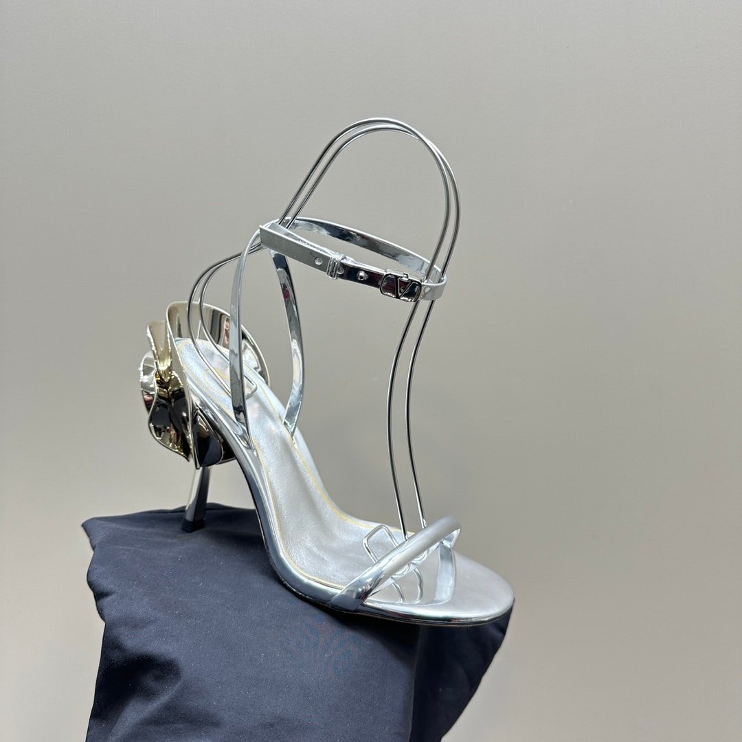 Valentino Garavani Archive Roserouche Metallic Leather High Heel Silver