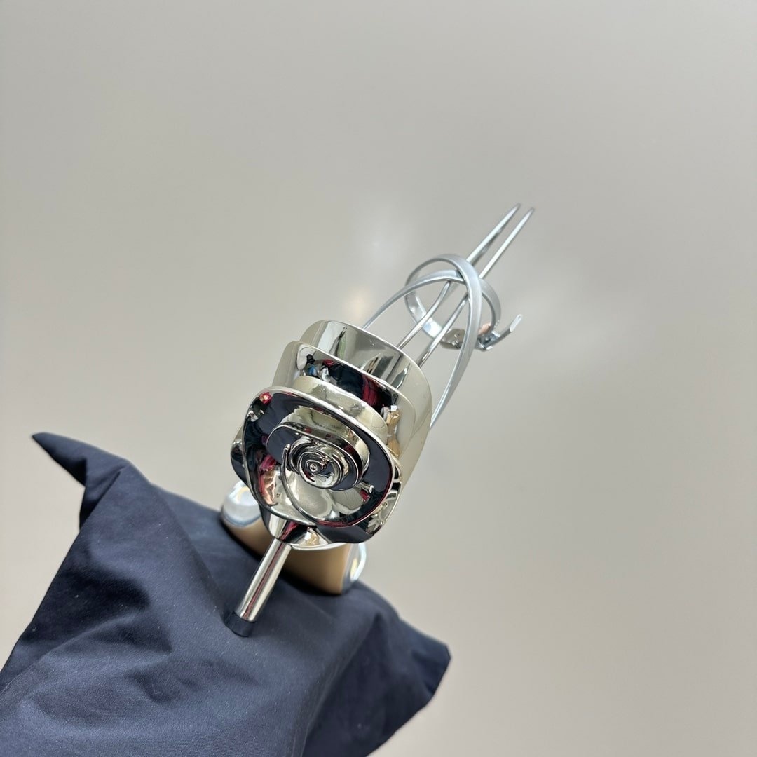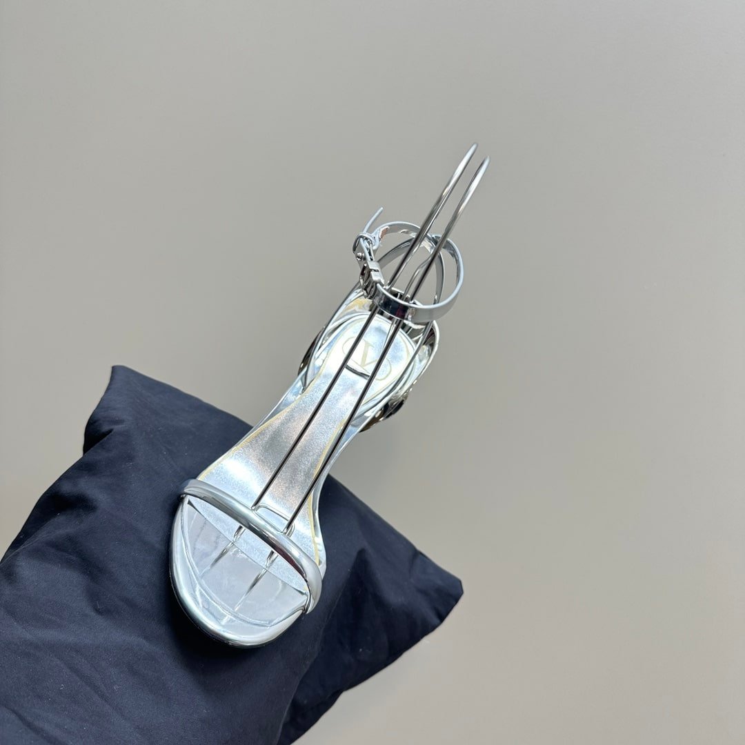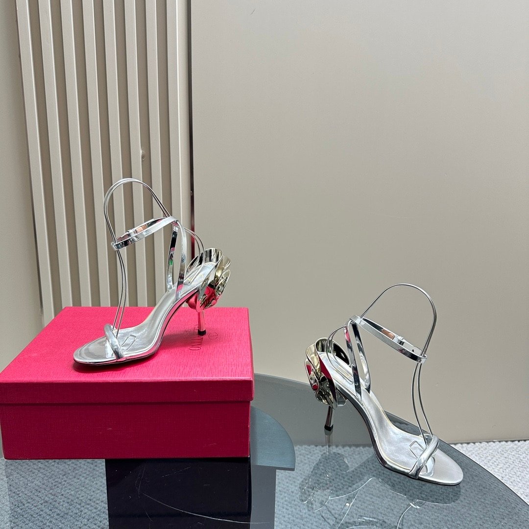 Valentino Garavani Archive Roserouche Metallic Leather High Heel Silver
