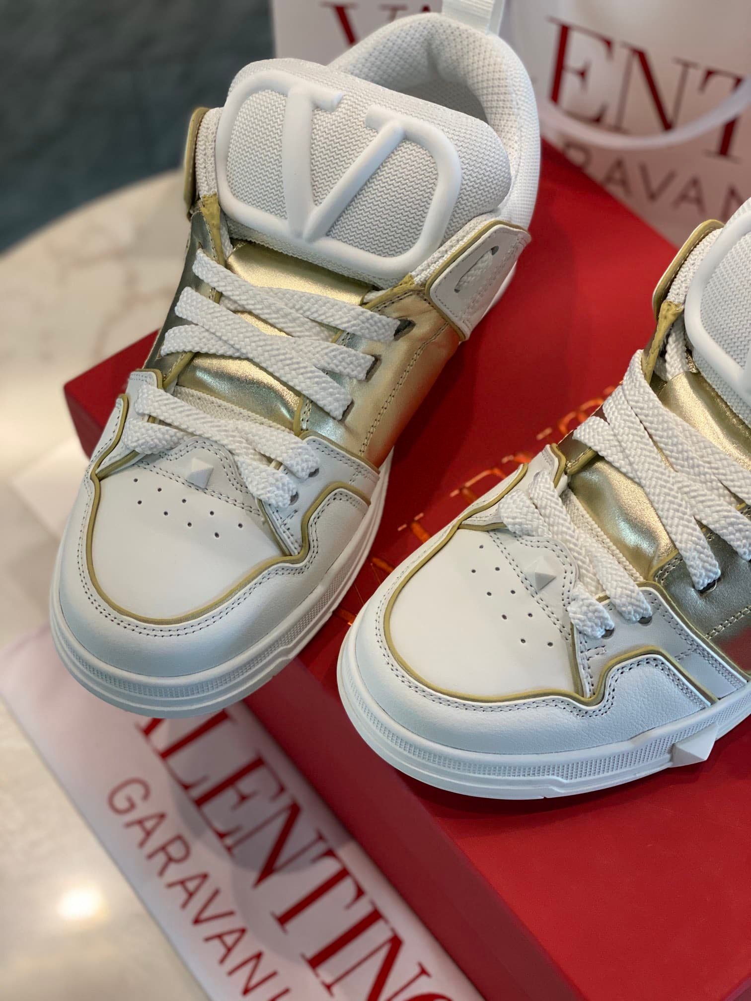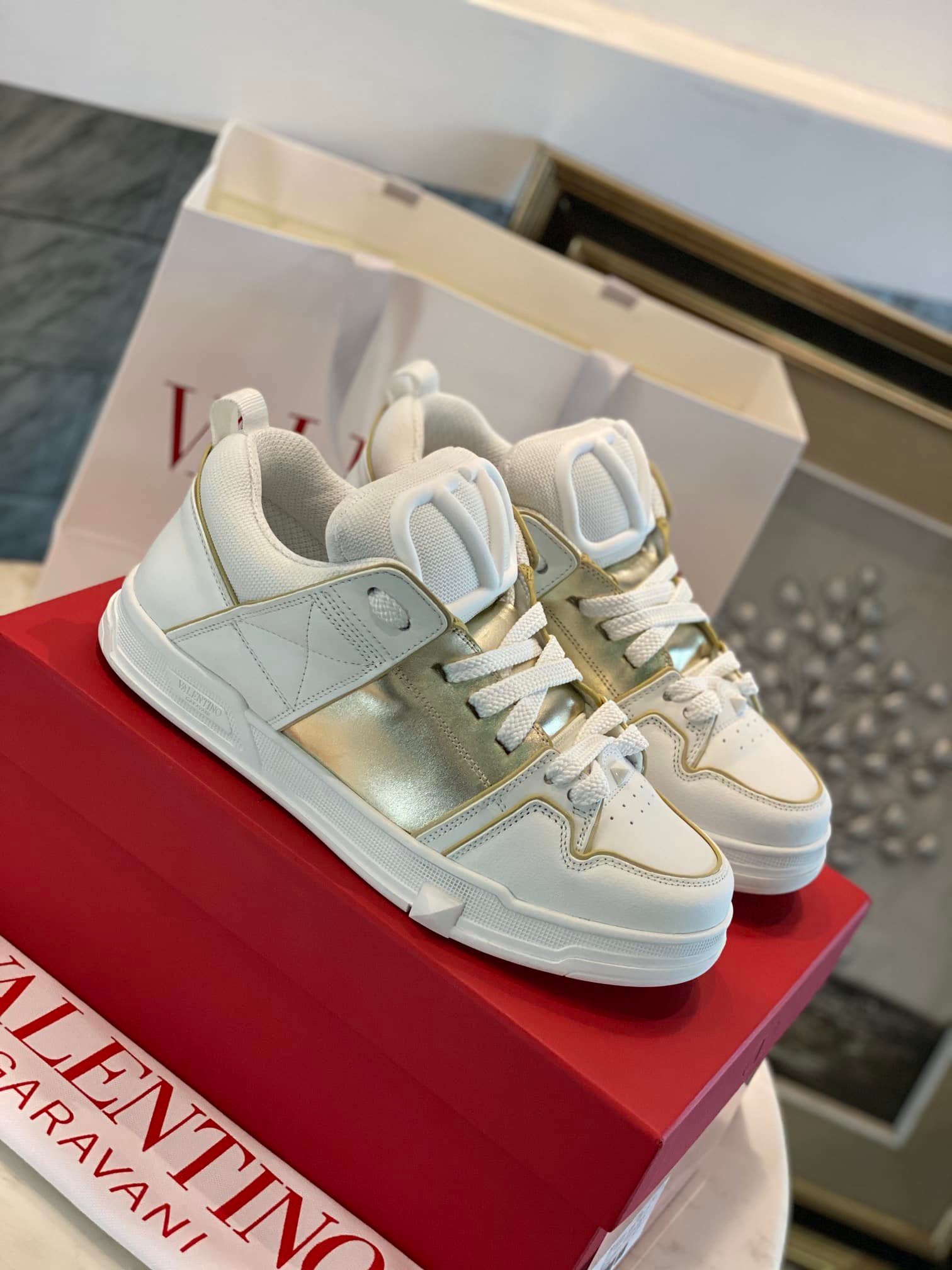Valentino Garavani Open Skate Sneakers White And Gold