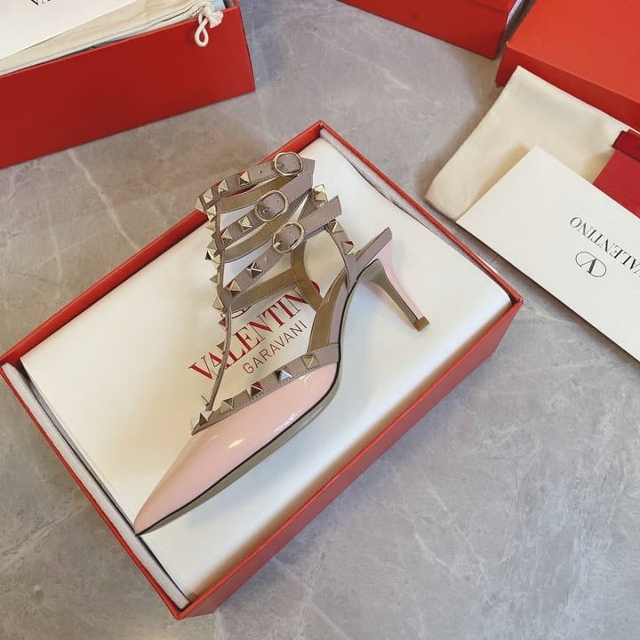 Valentino Garavani Patent Rockstud Caged Pump Pink