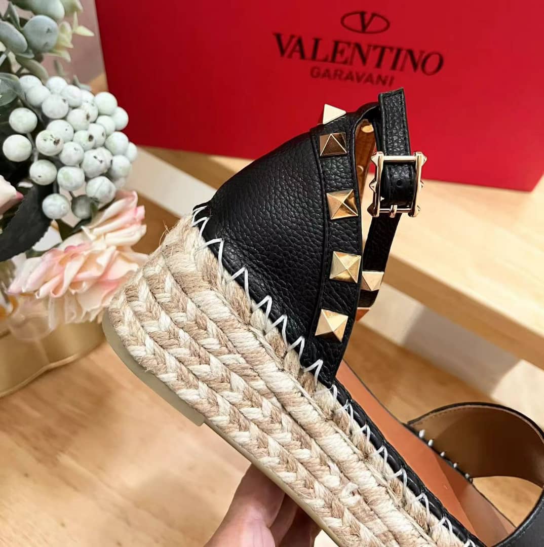 Valentino Garavani Rockstud Calfskin Flatform Espadrille Sandals