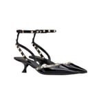 Valentino Garavani Rockstud Asymmetric Patent Leather Mules Black